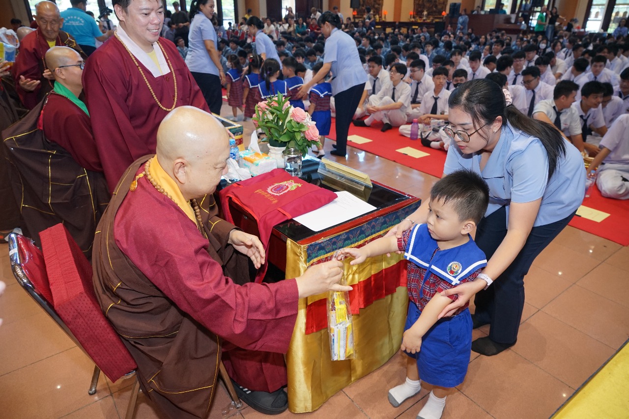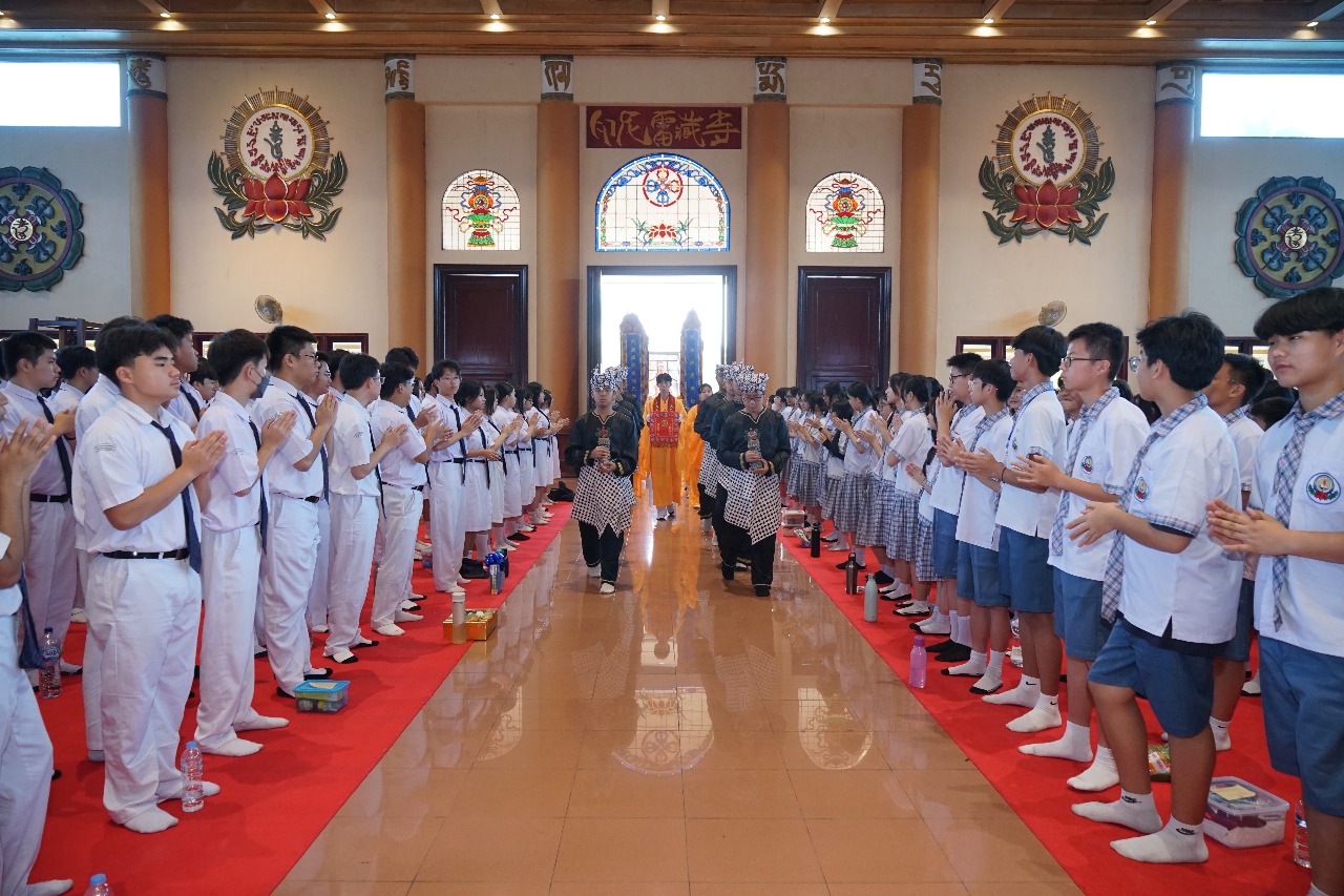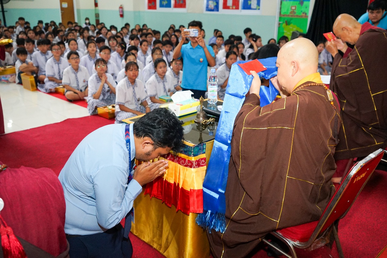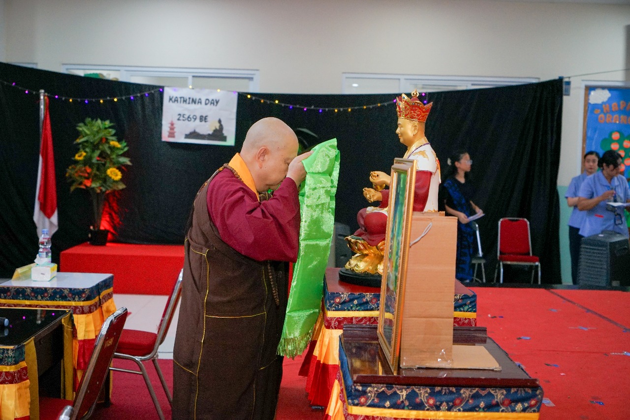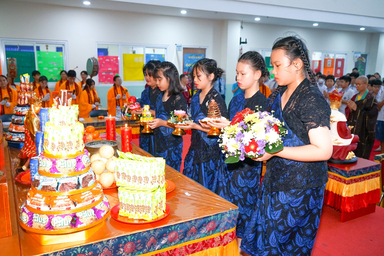 Prosesi dilanjutkan dengan penjemputan Sangha menuju Dharmasala, dilanjutkan dengan lantunan Hymne Zhenfozong yang mengiringi suasana sakral. Para Sangha bersama Ketua Yayasan Atisa Dipamkara, Winarni Harsono, kemudian mempersembahkan Khatta kepada Mahamulacarya Liansheng. Setelah rangkaian puja bakti selesai, siswa TK ikut bergabung untuk mempersembahkan dana, diikuti oleh siswa SD hingga SMK serta umat yang hadir. Perayaan ditutup dengan sesi foto bersama dan perekaman video ucapan selamat tahun baru untuk dipersembahkan kepada Mahaguru pada pergantian tahun 2026.