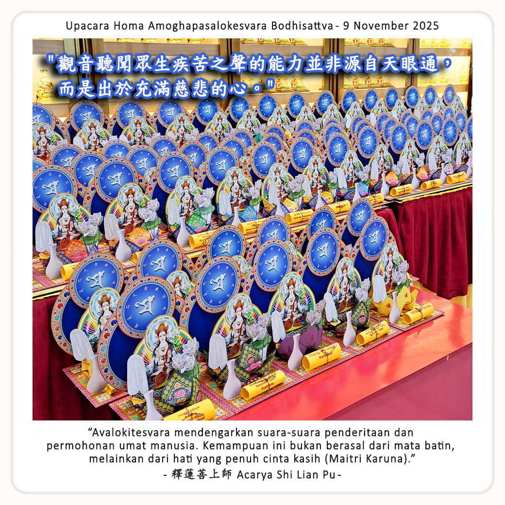 (Palembang) – Suasana khidmat menyelimuti Vihara Vajra Bumi Sriwijaya pada Minggu, 9 November 2025. Umat sedharma berkumpul dengan hati penuh sukacita dan hormat untuk mengikuti Upacara Puja Api Homa yang dipersembahkan bagi Bodhisatwa Amoghapasalokesvara.