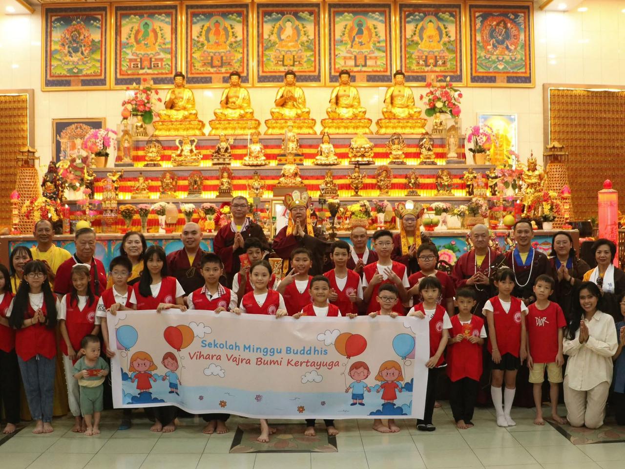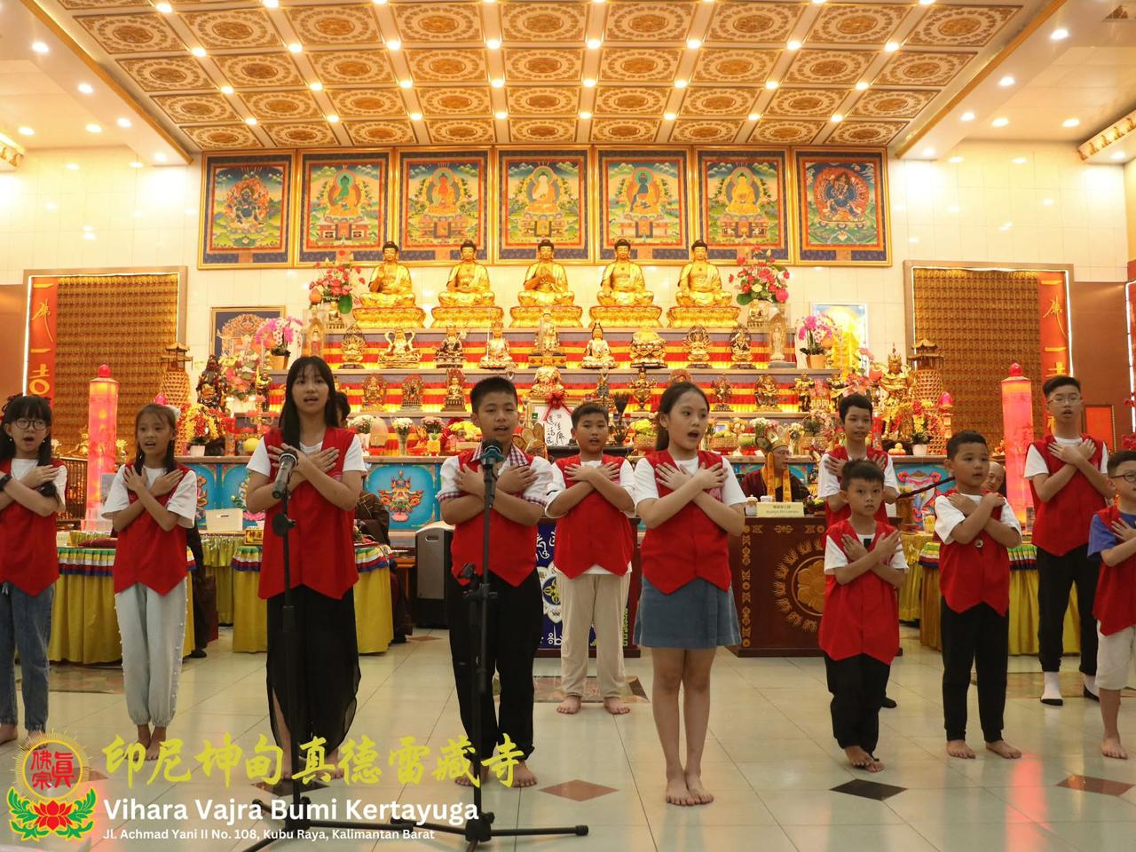 Menjelang akhir upacara, para murid dari Sekolah Minggu Buddha (SMB) VVBK mempersembahkan lagu Gan En Zhenfo 感恩真佛 — sebuah penampilan yang menyentuh hati seluruh umat yang hadir. Acarya menegaskan bahwa anak-anak inilah generasi penerus Zhenfo Zong, penerus Dharma, vihara, dan silsilah. Karena itu, para orang tua dan umat diimbau: