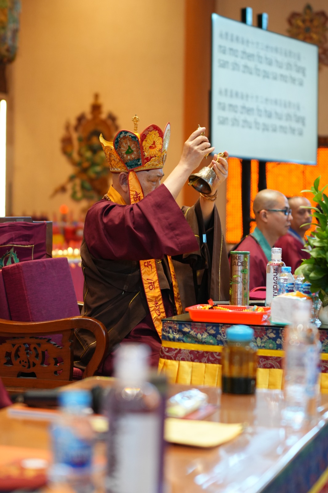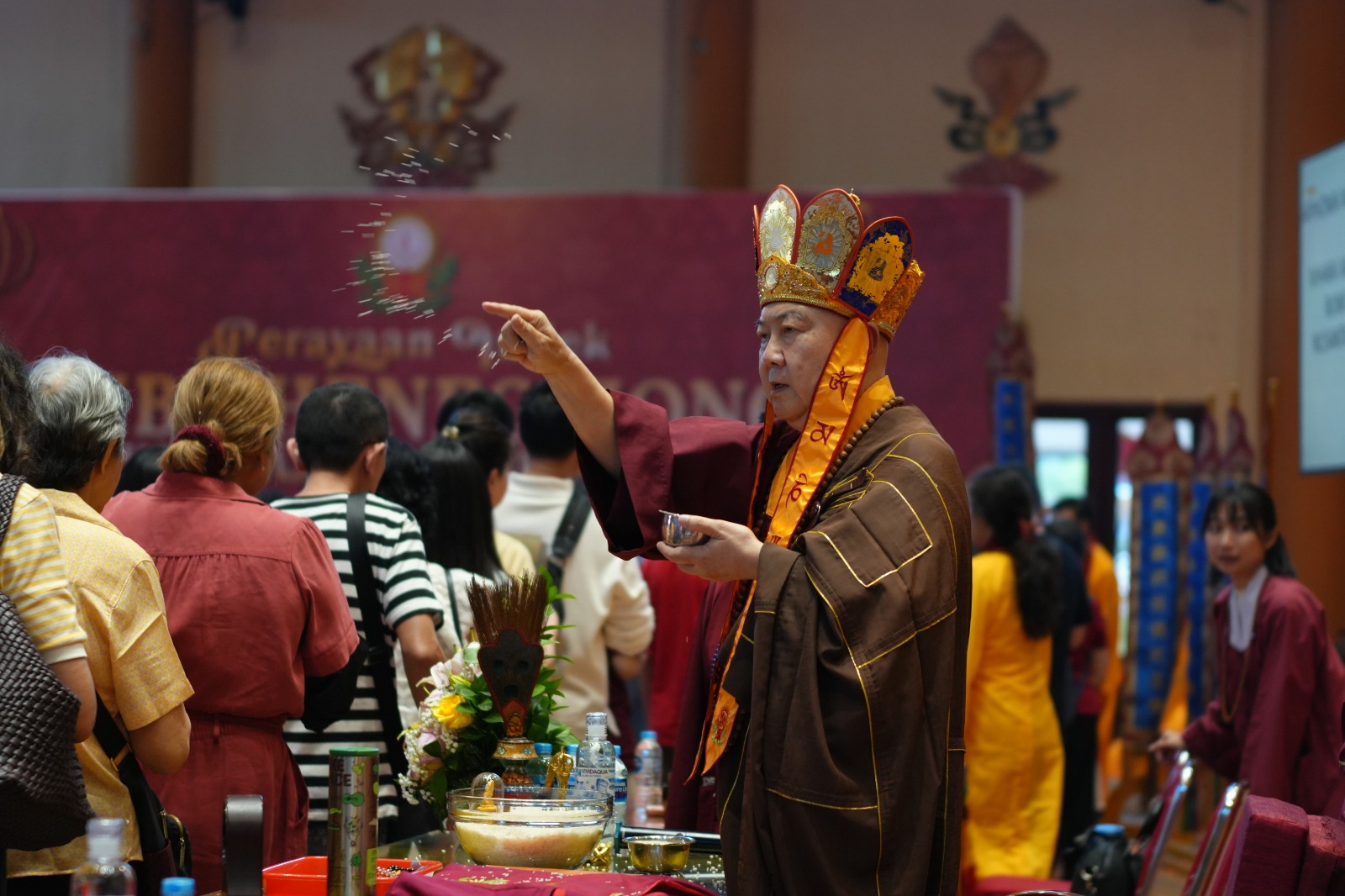 Upacara ditutup dengan pemberian abhiseka pemberkahan Bodhisattva Marici kepada seluruh umat yang hadir. Dengan khidmat, umat menerima percikan air suci sebagai simbol penyucian batin dan penguatan tekad untuk menjalani Tahun Baru 2577 Kongzili dengan semangat kebajikan, disiplin spiritual, serta komitmen memperdalam praktik Dharma.