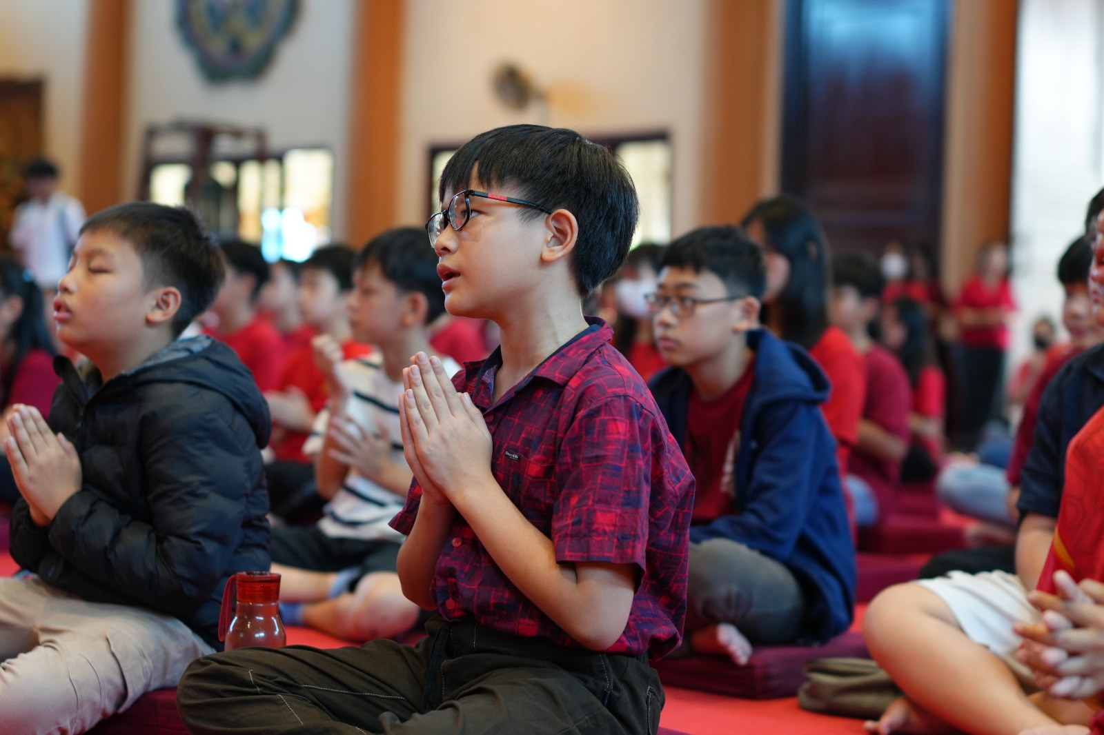 Perayaan diawali dengan Puja Bakti bersama yang dipimpin oleh Acarya Shi Lianfei. Dalam dharmadesananya, Acarya mengajak anak-anak untuk memahami makna terdalam Tahun Baru Imlek, yang dalam tradisi Tiongkok berkaitan dengan sistem penanggalan lunar yang secara legendaris dikaitkan dengan tokoh Huang Di sebagai pelopor perhitungan kalender kuno. Acarya menekankan bahwa pergantian tahun bukan sekadar tradisi budaya, melainkan momentum memperbarui tekad kebajikan, meningkatkan bakti kepada orang tua, serta menumbuhkan welas asih dalam kehidupan sehari-hari.