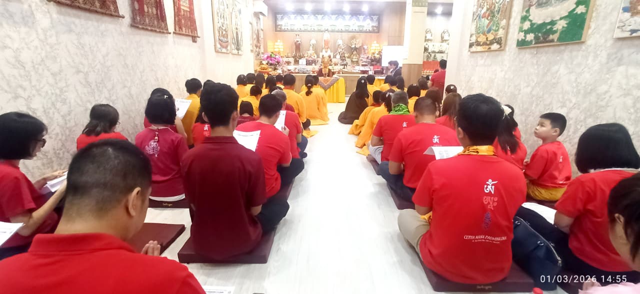 Medan, 1 Maret 2026 – Cetiya Maha Padminiloka, Medan, menggelar upacara perdana Apihoma Buddha Amitayus pada Minggu (1/3). Acara yang dipimpin oleh Acarya Shi Lian Jin ini menjadi tonggak sejarah karena merupakan upacara resmi pertama sejak cetiya menerima nama dari Mahaguru. Dalam kesempatan tersebut, Acarya Shi Lian Jin menyampaikan bahwa kesempurnaan upacara tidak lepas dari adhisthana Mahaguru, yang sekaligus menjadi simbol harapan agar sang guru senantiasa sehat dan panjang umur.