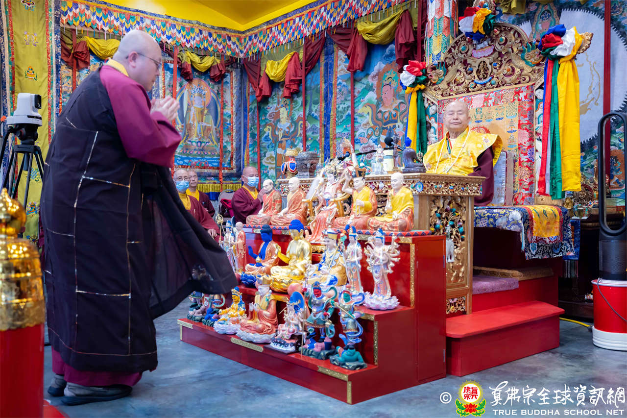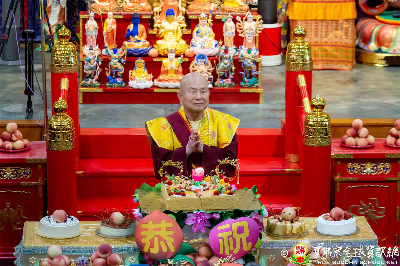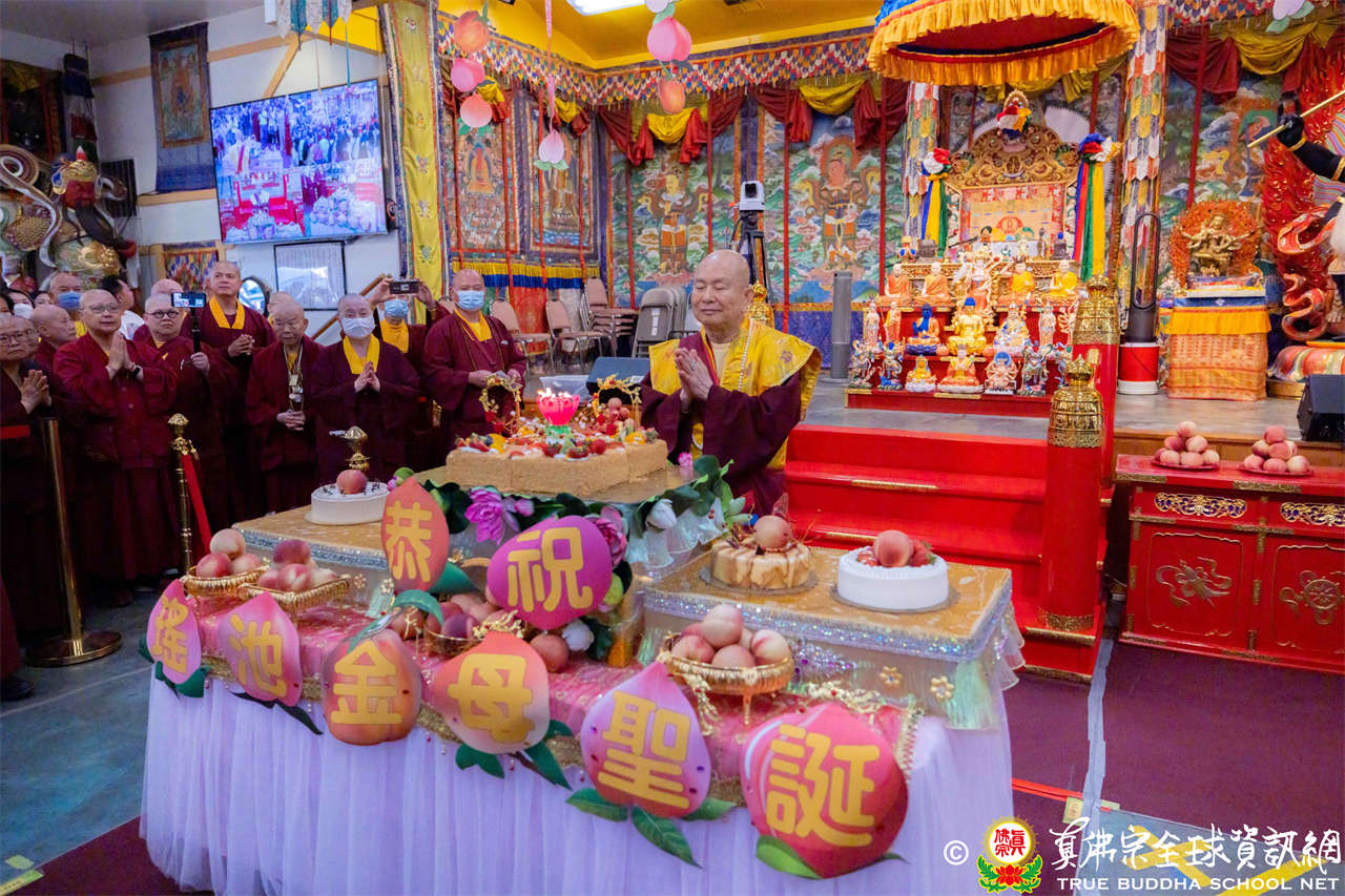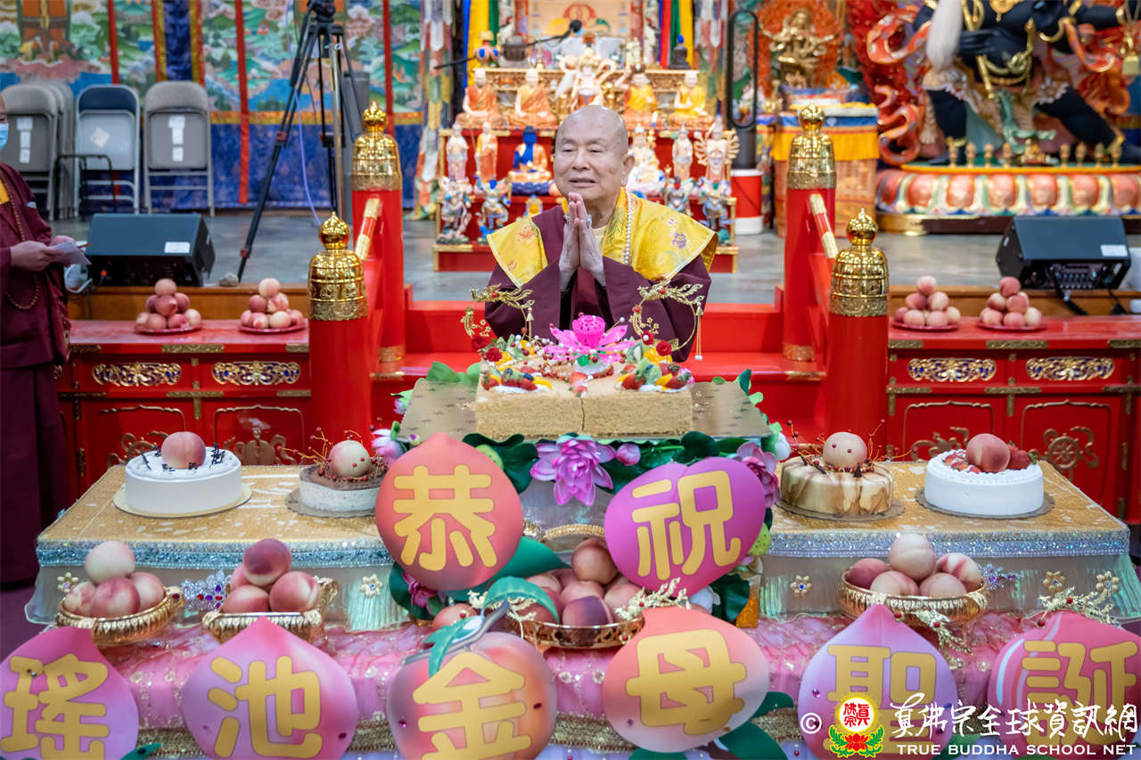 Mengenai Istadewata hari itu, Dharmaraja Lian Sheng menekankan, Zhenfo Zong memiliki nidana mendalam dengan Mahadewi Yaochi, Dharmaraja mengenang: “Tanpa Mahadewi Yaochi, tidak ada Sheng-Yan Lu; Tanpa Sheng-Yan Lu, tidak ada Zhenfo Zong, juga tidak ada vihara vajragarbha.” Jika bukan karena berjumpa dengan Mahadewi Yaochi, hidup ini akan dijalani sebagai pegawai survei dan pemetaan pemerintah, tidak akan ada kehidupan pembabaran Dharma memberi manfaat bagi semua makhluk seperti hari ini. Dharmaraja Lian Sheng sungguh bersyukur kepada Mahadewi Yaochi yang membantu mencapai keberhasilan dalam segala hal, kemudian menyanyikan lagu “Selamat Ulang Tahun” dalam bahasa Indonesia.