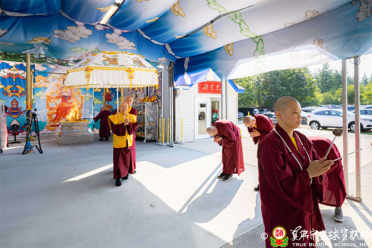 Pada tanggal 31 Agustus 2025, Rainbow Temple (Caihong Leizangsi/彩虹雷藏寺) di Seattle menyelenggarakan Upacara Homa Mahadewi Yaochi (Yaochijinmu/瑤池金母), dengan tulus mengundang Dharmaraja Lian Sheng untuk hadir secara langsung sebagai upacarika. Pujabakti dihadiri oleh para umat dan simpatisan. Segenap siswa dari seluruh penjuru dunia turut berpartisipasi dalam siaran langsung daring. Usai upacara, Dharmaraja mengumumkan bahwa pada hari Minggu, 7 September, pukul 15.00, adalah Upacara Homa Bodhisatwa Ksitigarbha (Dizangwangpusa/地藏王菩薩).