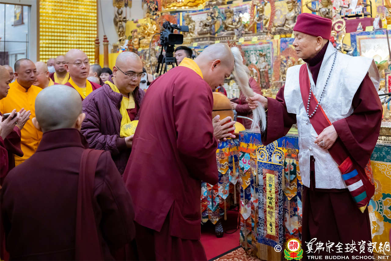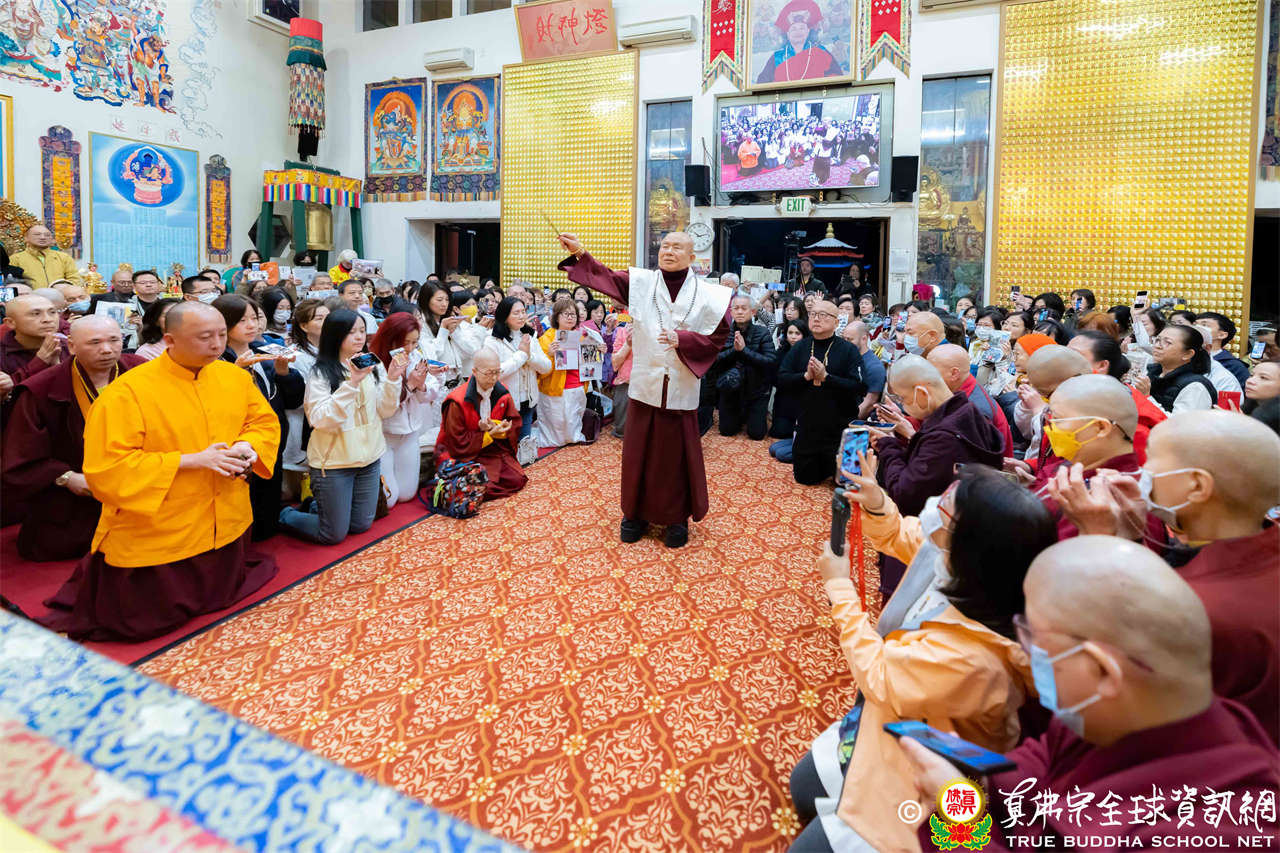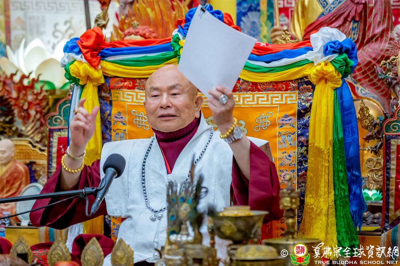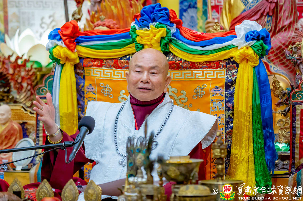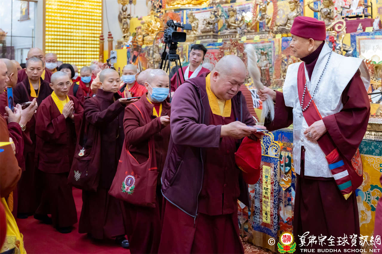 Usai Dharmadesana yang sarat akan makna Dharma, Dharmaraja Lian Sheng berwelas asih mengadhisthana Air Maha Karuna Dharani, mengabhiseka pratima Buddha, dan menganugerahkan Abhiseka Sarana bagi siswa baru, kemudian menggunakan vyajanacamara untuk mengadhisthana tiap siswa yang hadir langsung di arena.