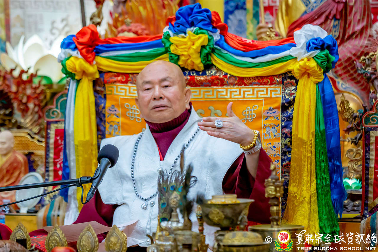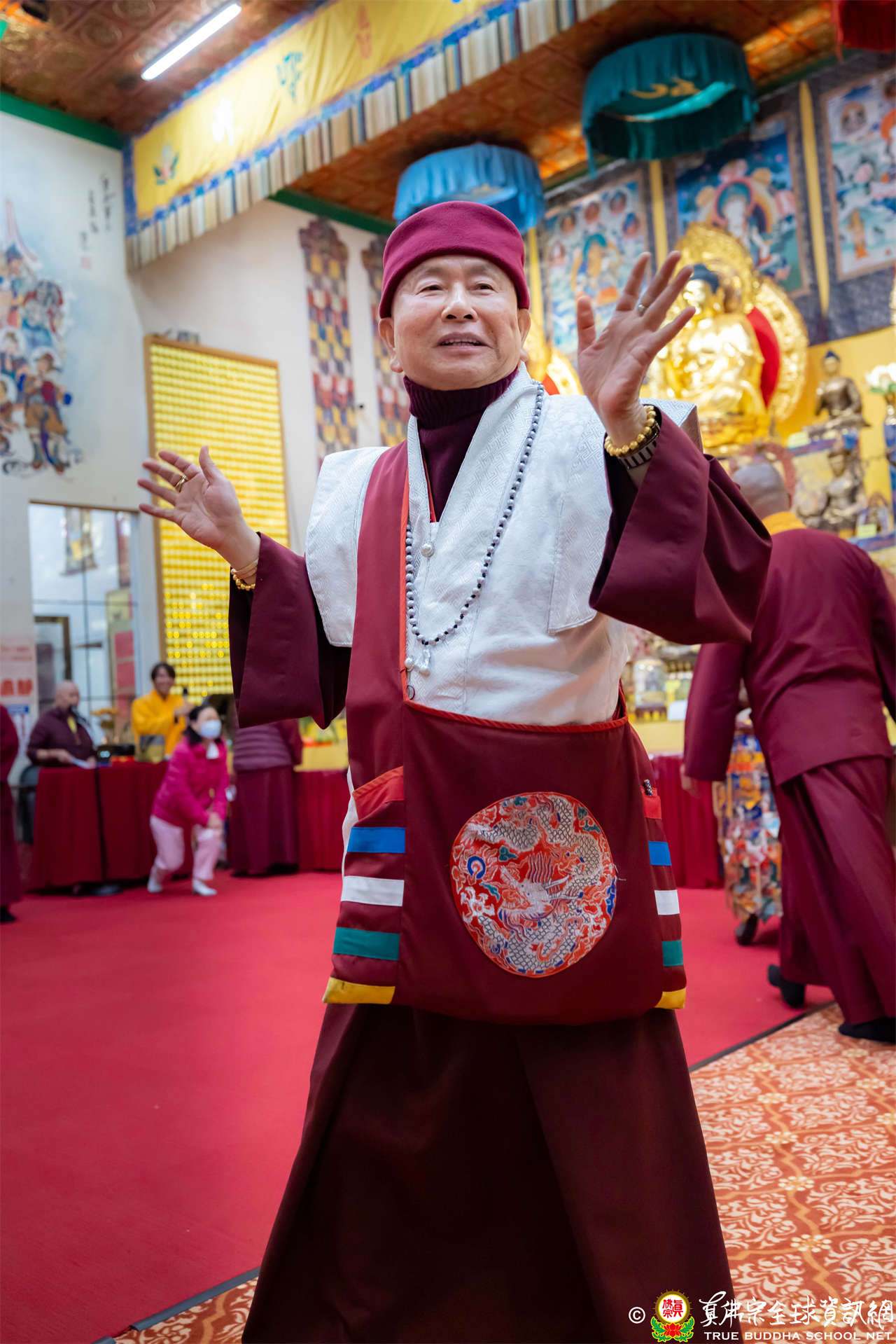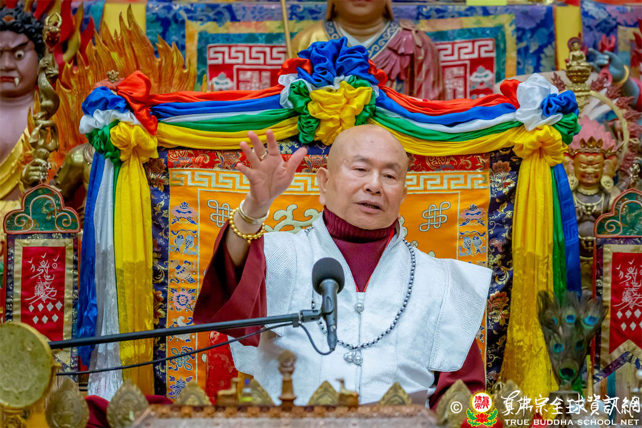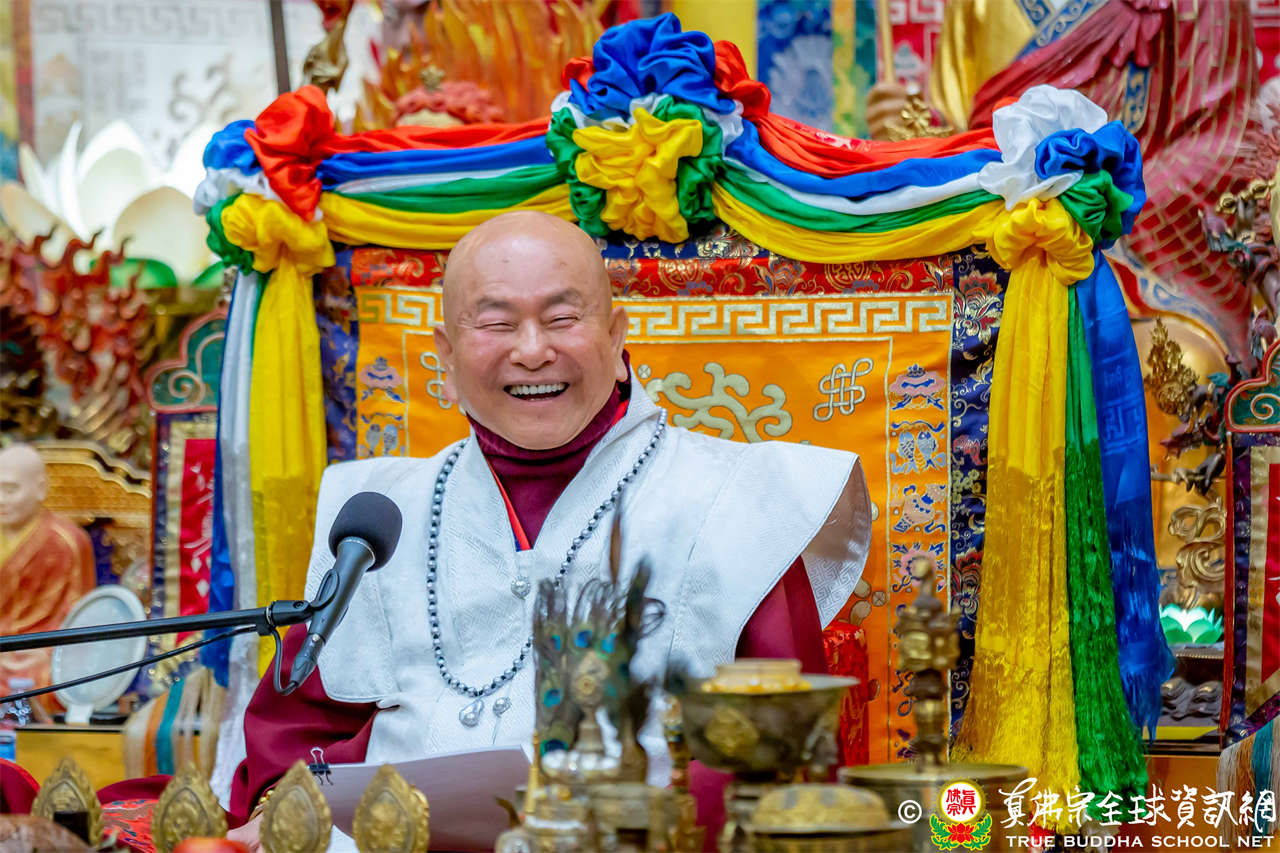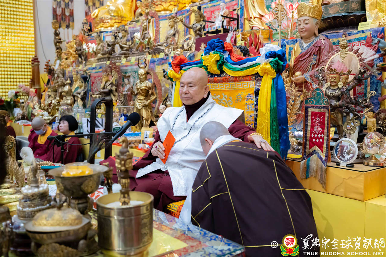 Usai Dharmadesana yang sarat akan makna Dharma, Dharmaraja Lian Sheng berwelas asih mengadhisthana Air Maha Karuna Dharani, mengabhiseka pratima Buddha, dan menganugerahkan Abhiseka Sarana bagi siswa baru, kemudian menggunakan vyajanacamara untuk mengadhisthana tiap siswa yang hadir langsung di arena.