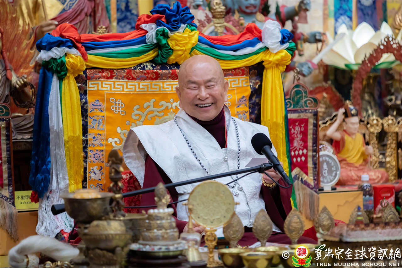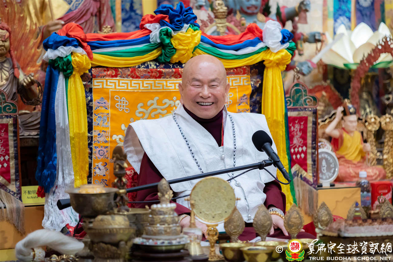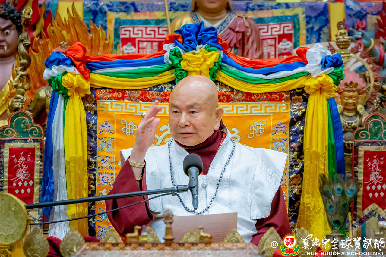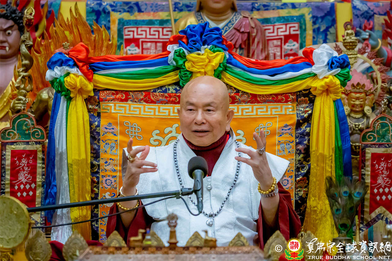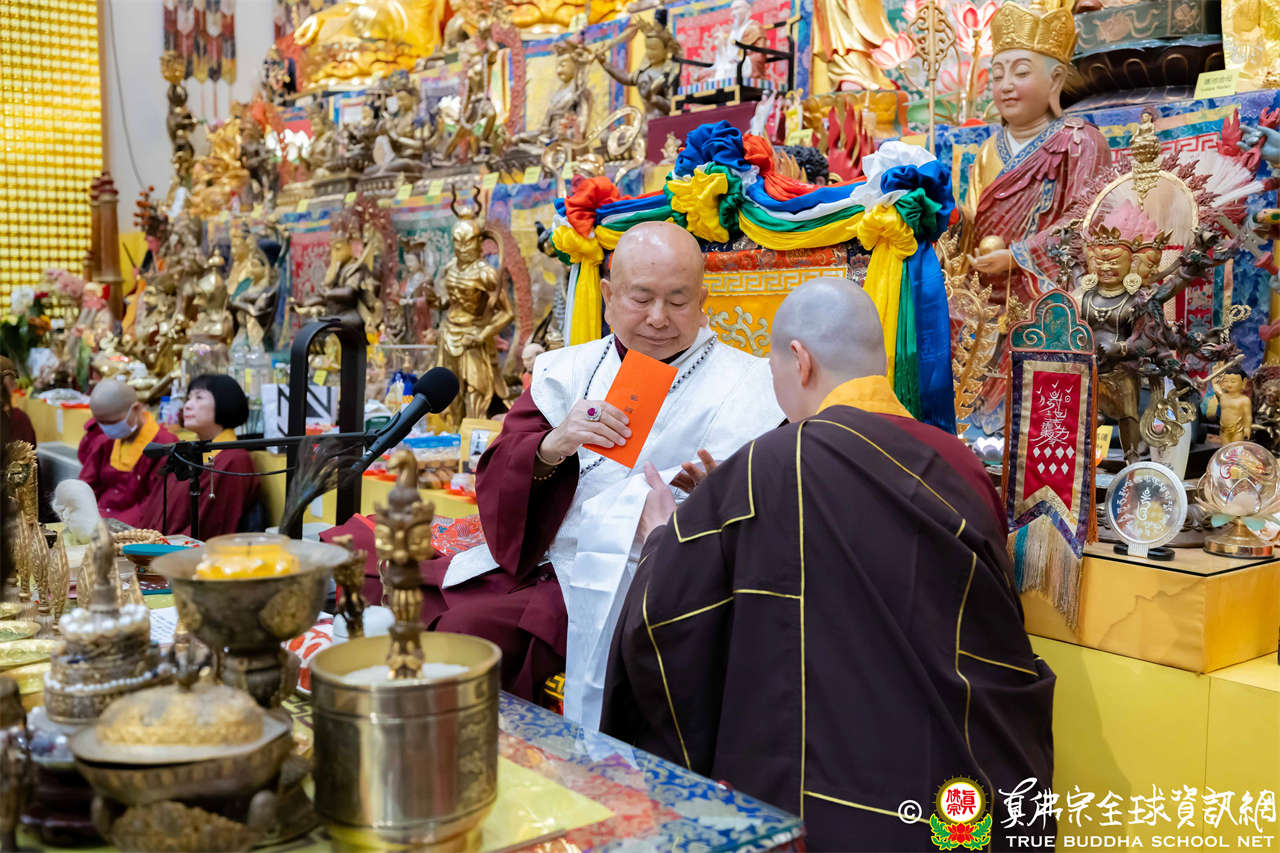 Usai Dharmadesana yang sarat akan makna Dharma, Dharmaraja Lian Sheng berwelas asih mengadhisthana Air Maha Karuna Dharani, mengabhiseka pratima Buddha, dan menganugerahkan Abhiseka Sarana bagi siswa baru, kemudian menggunakan vyajanacamara untuk mengadhisthana tiap siswa yang hadir langsung di arena.