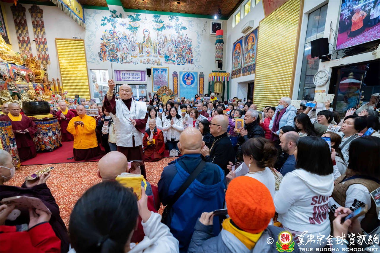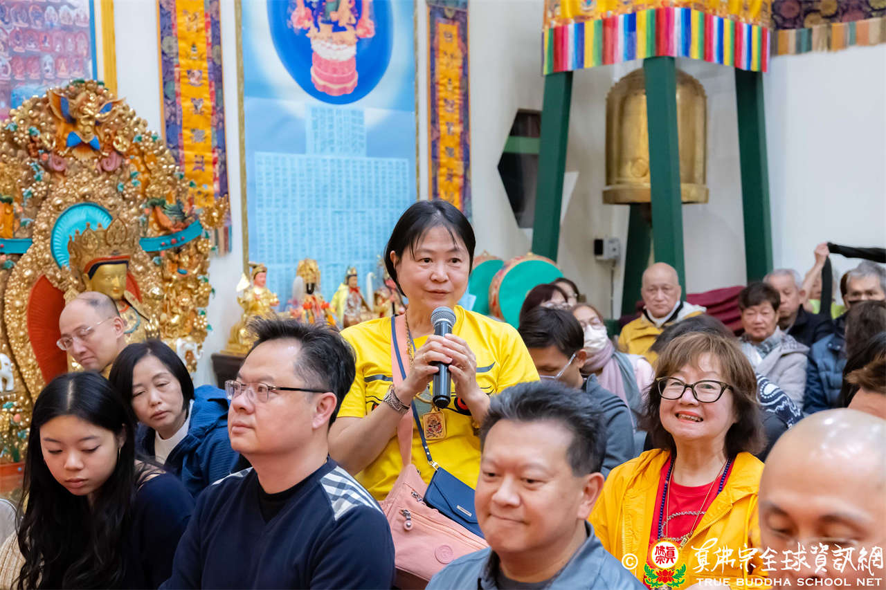 Usai pujabakti, terlebih dahulu Dharmaraja Lian Sheng menyegarkan semua dengan cerita humor, mengundang tawa seluruh hadirin, dan menyerukan: “Mendadak sejahtera! Mendadak sejahtera! Mendadak sejahtera!” dan yang paling membangkitkan sukacita adalah, di lokasi ada umat Sedharma yang memenangkan lotre utama berkat anugerah dari Darshi Lhamo, sehingga dia khusus datang ke Seattle demi secara langsung mengungkapkan rasa terima kasihnya atas welas asih Dharmaraja Lian Sheng yang telah mengadhisthana.
