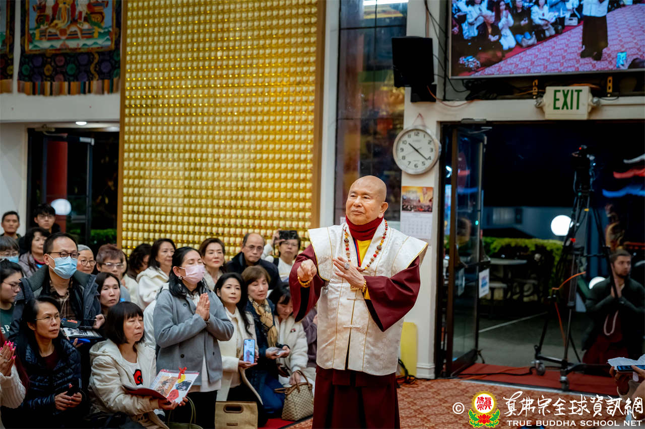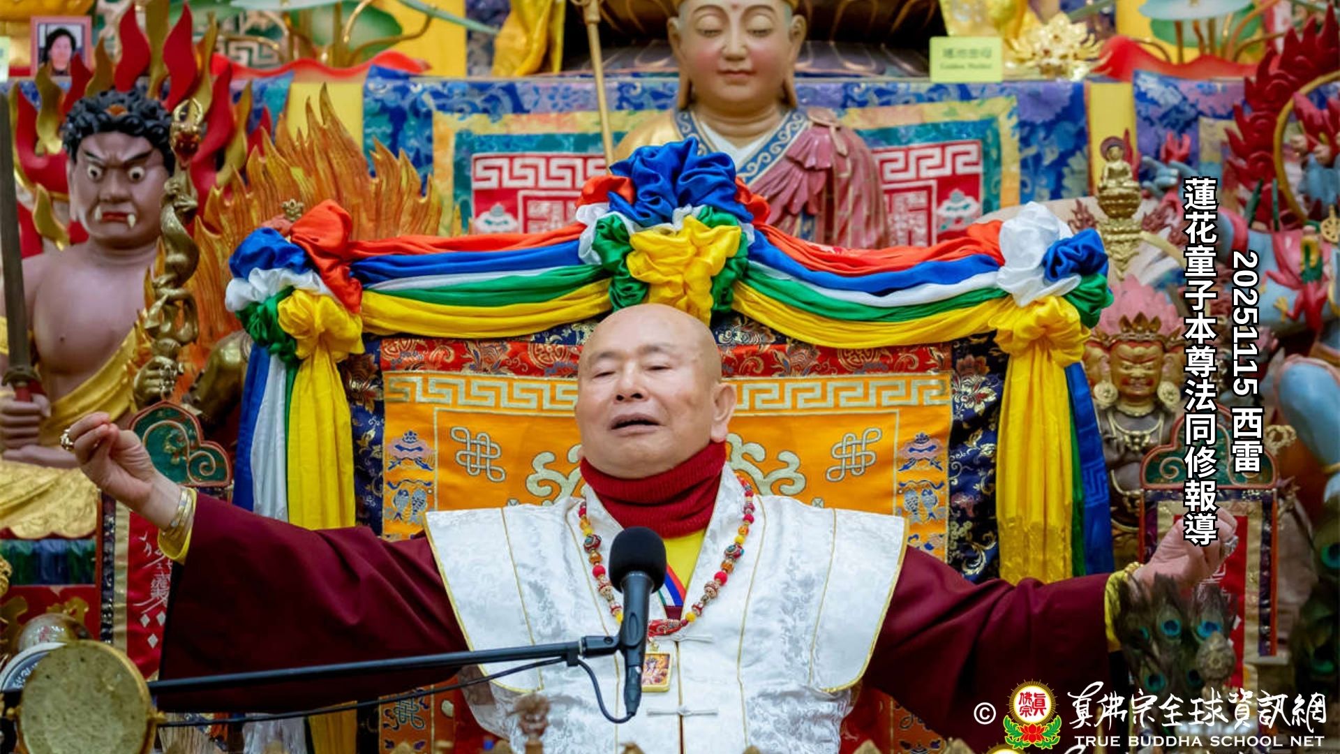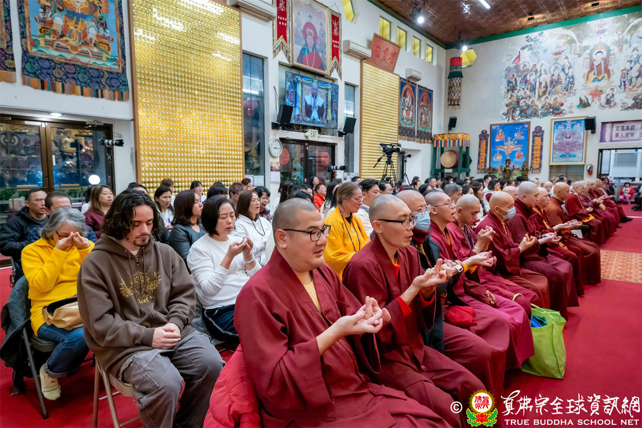 Malam musim gugur berhiaskan dedaunan kuning, pada hari Sabtu, tanggal 15 November 2025, pukul 8 malam, di dalam baktisala Seattle Ling Shen Ching Tze Temple, Amerika Serikat, Dharmaraja Lian Sheng memandu keempat golongan siswa dari berbagai penjuru dunia untuk bersama melakukan pujabakti Sadhana Istadewata Maha Padmakumara Putih, serta melanjutkan pengulasan Sutra Surangama.