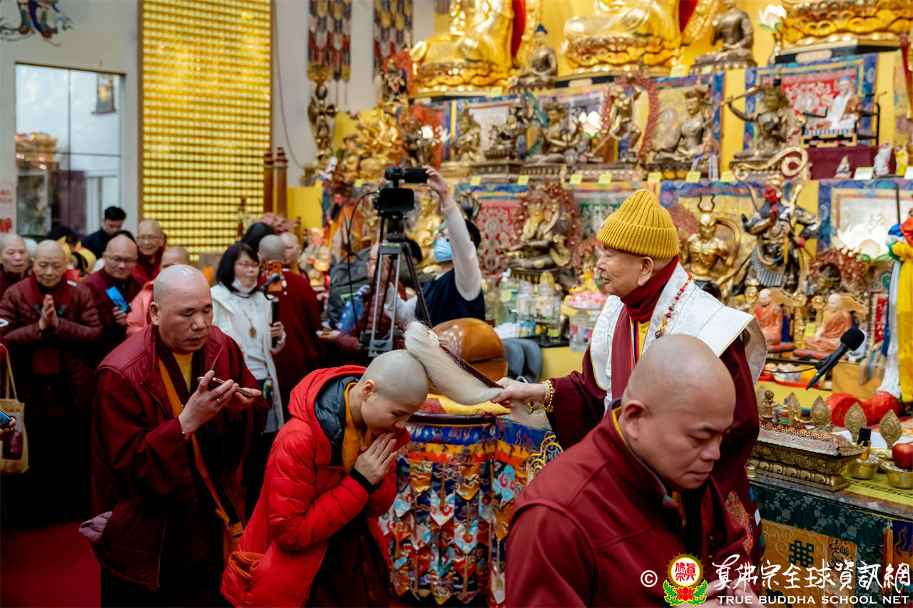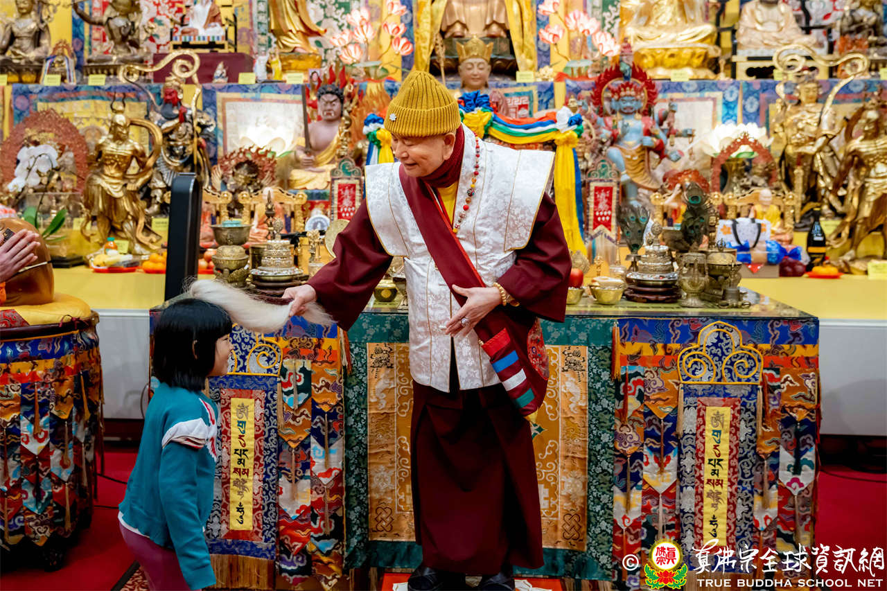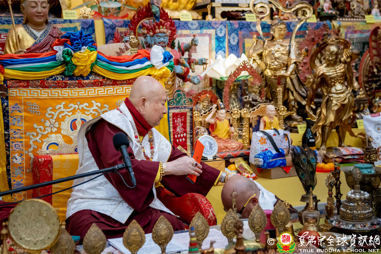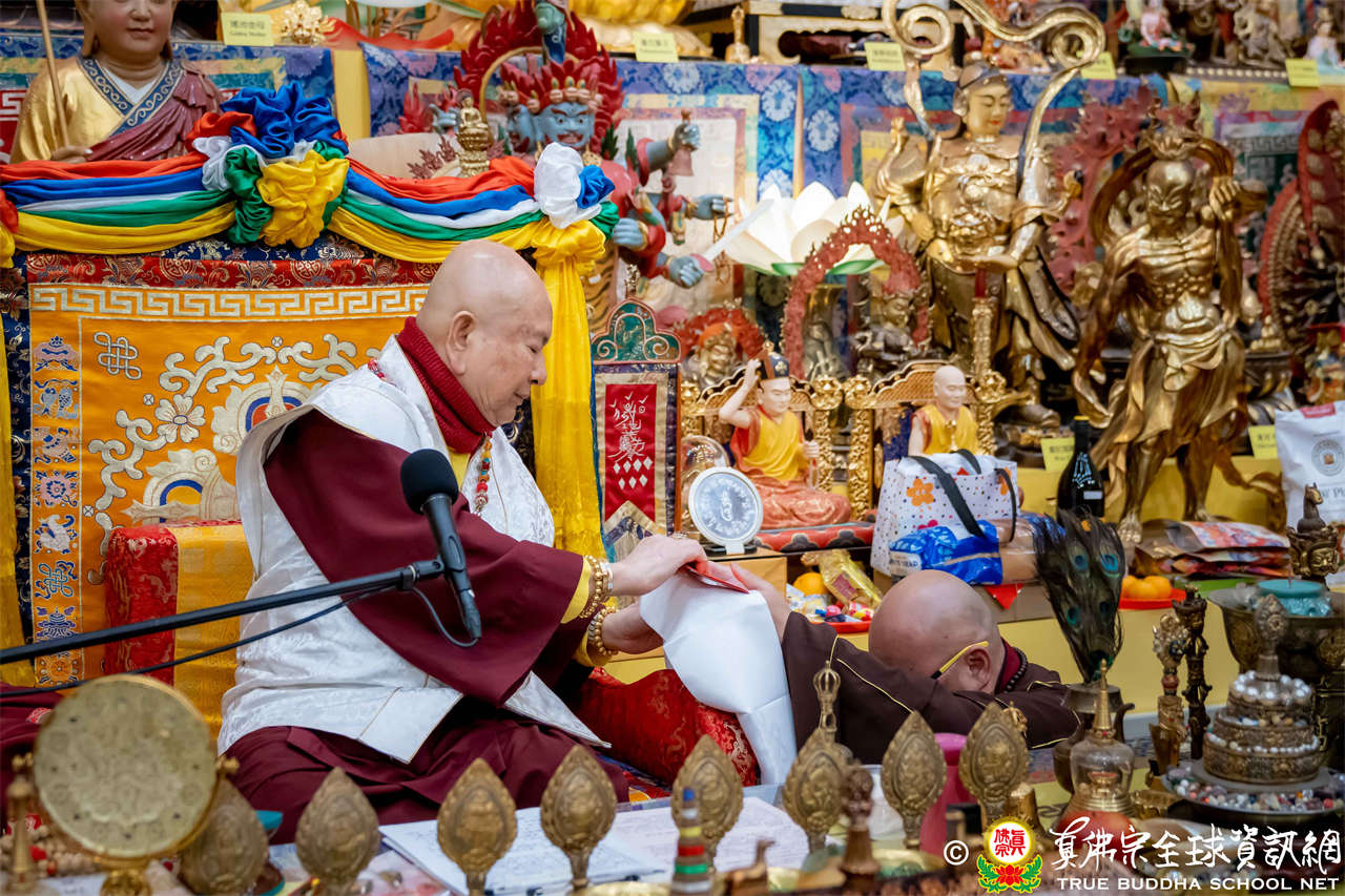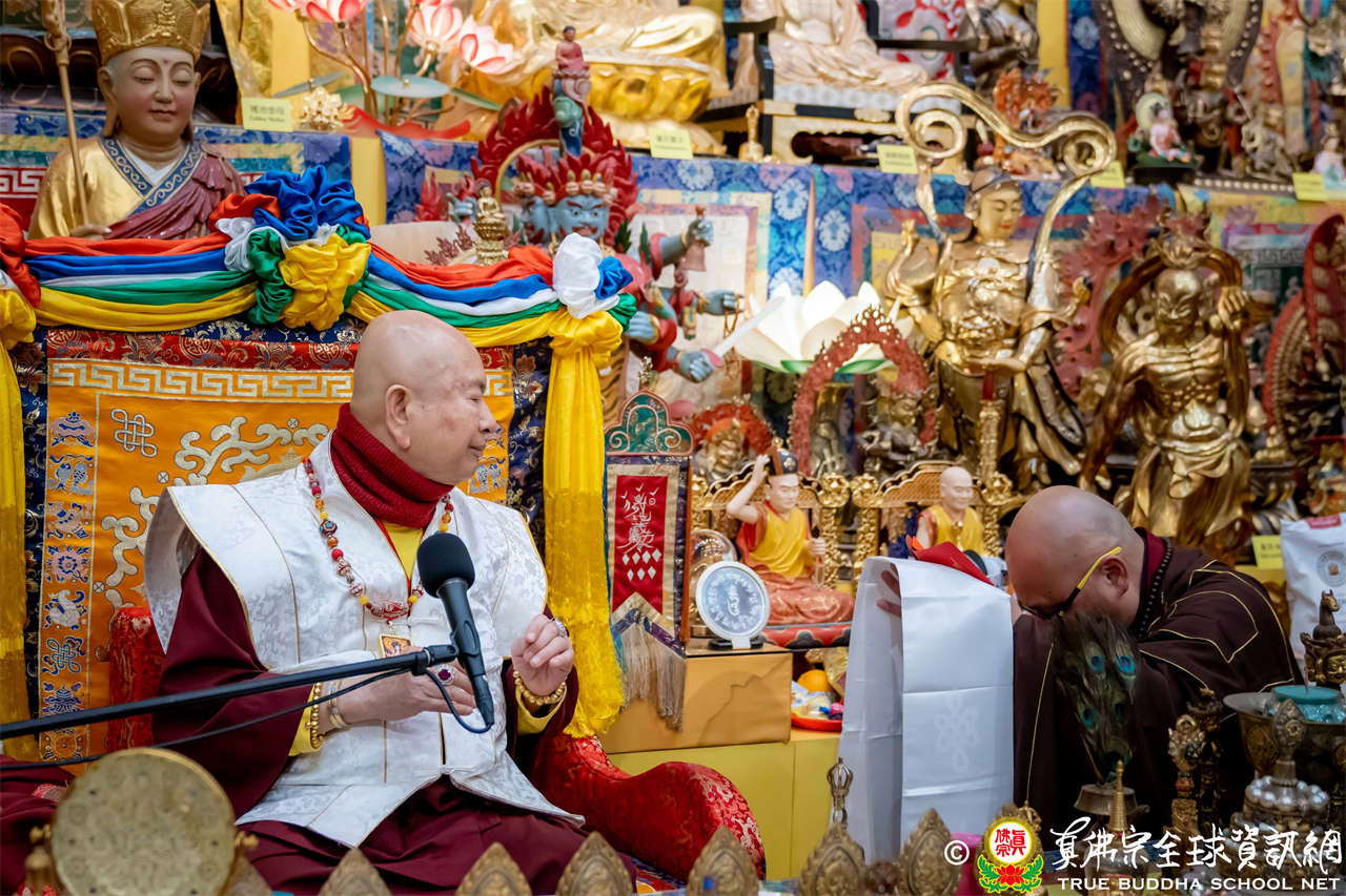 Usai Dharmadesana yang sangat berharga dan sarat makna, Mahaguru Lu berwelas asih menganugerahkan Abhiseka Sarana kepada siswa baru, kemudian mengadhisthana Air Maha Karuna Dharani, dan mengabhiseka pratima Buddha, dan di akhir, menggunakan vyajanacamara untuk mengadhisthana segenap siswa.