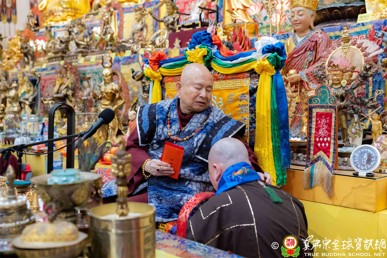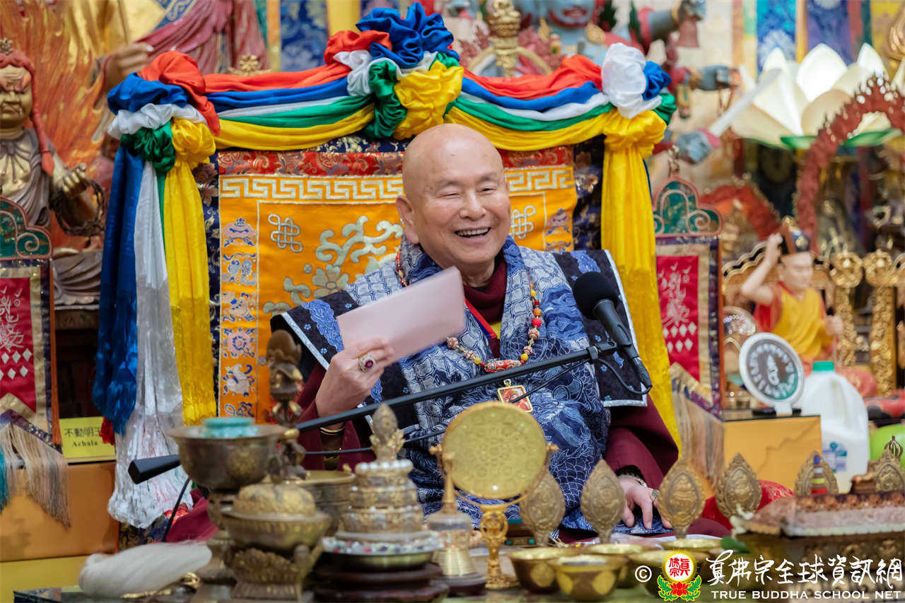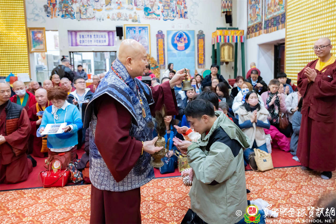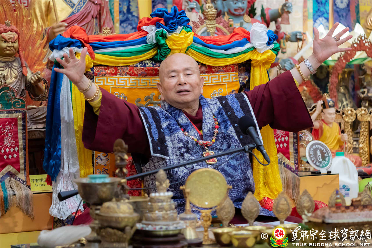Usai Dharmadesana, Dharmaraja menganugerahkan Abhiseka Sarana kepada umat yang baru, kemudian mengadhisthana Air Maha Karuna Dharani dan mengabhiseka pratima Buddha. Suara Mantra Buddha Bhaisajyaguru berkumandang dari baktisala, segenap siswa menerima adhisthana vyajana camara dari Mulacarya Lian Sheng, memurnikan batin dan jasmani, semua penuh sukacita.