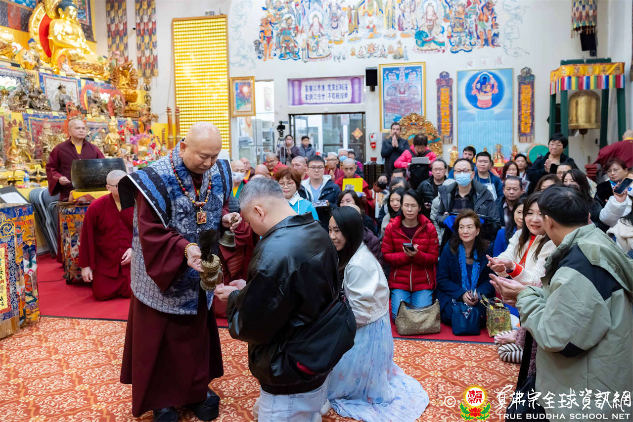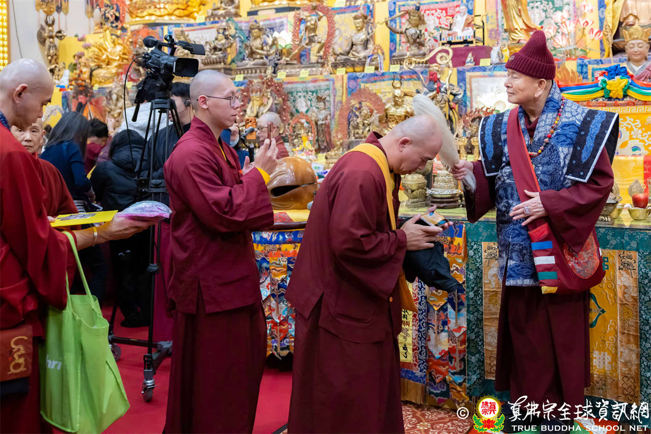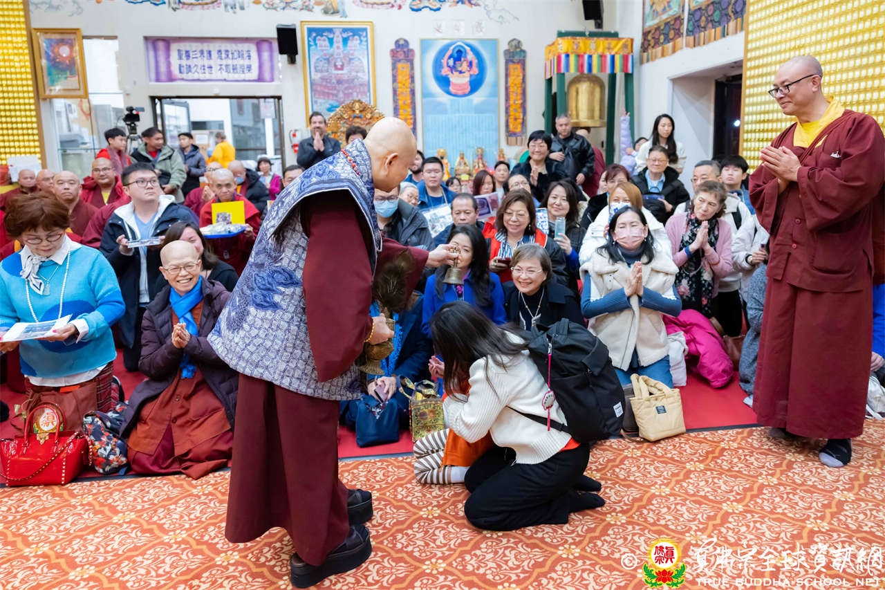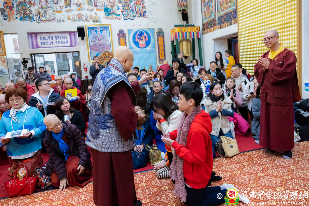 Usai Dharmadesana, Dharmaraja menganugerahkan Abhiseka Sarana kepada umat yang baru, kemudian mengadhisthana Air Maha Karuna Dharani dan mengabhiseka pratima Buddha. Suara Mantra Buddha Bhaisajyaguru berkumandang dari baktisala, segenap siswa menerima adhisthana vyajana camara dari Mulacarya Lian Sheng, memurnikan batin dan jasmani, semua penuh sukacita.