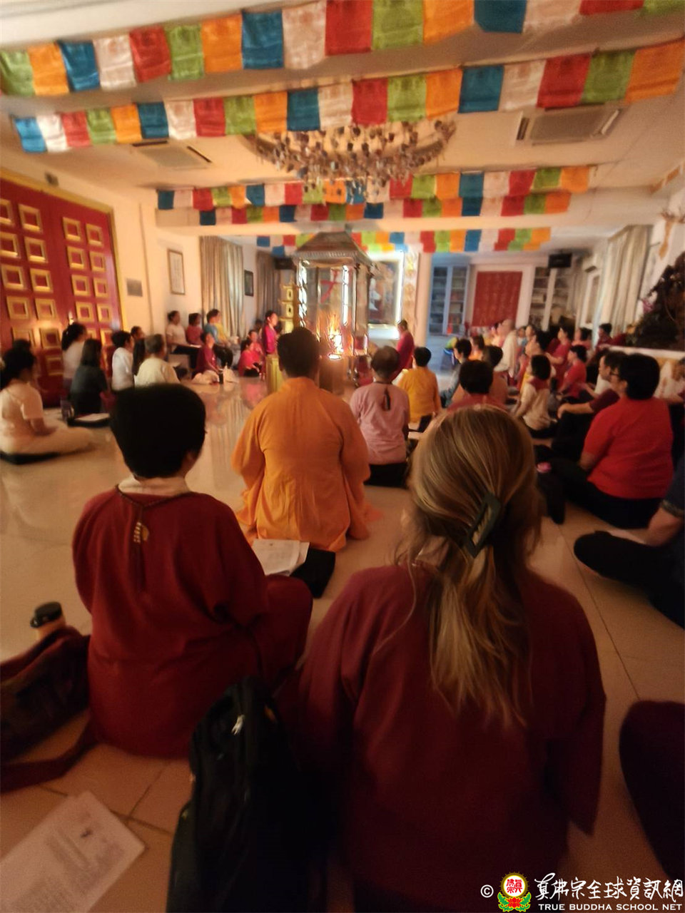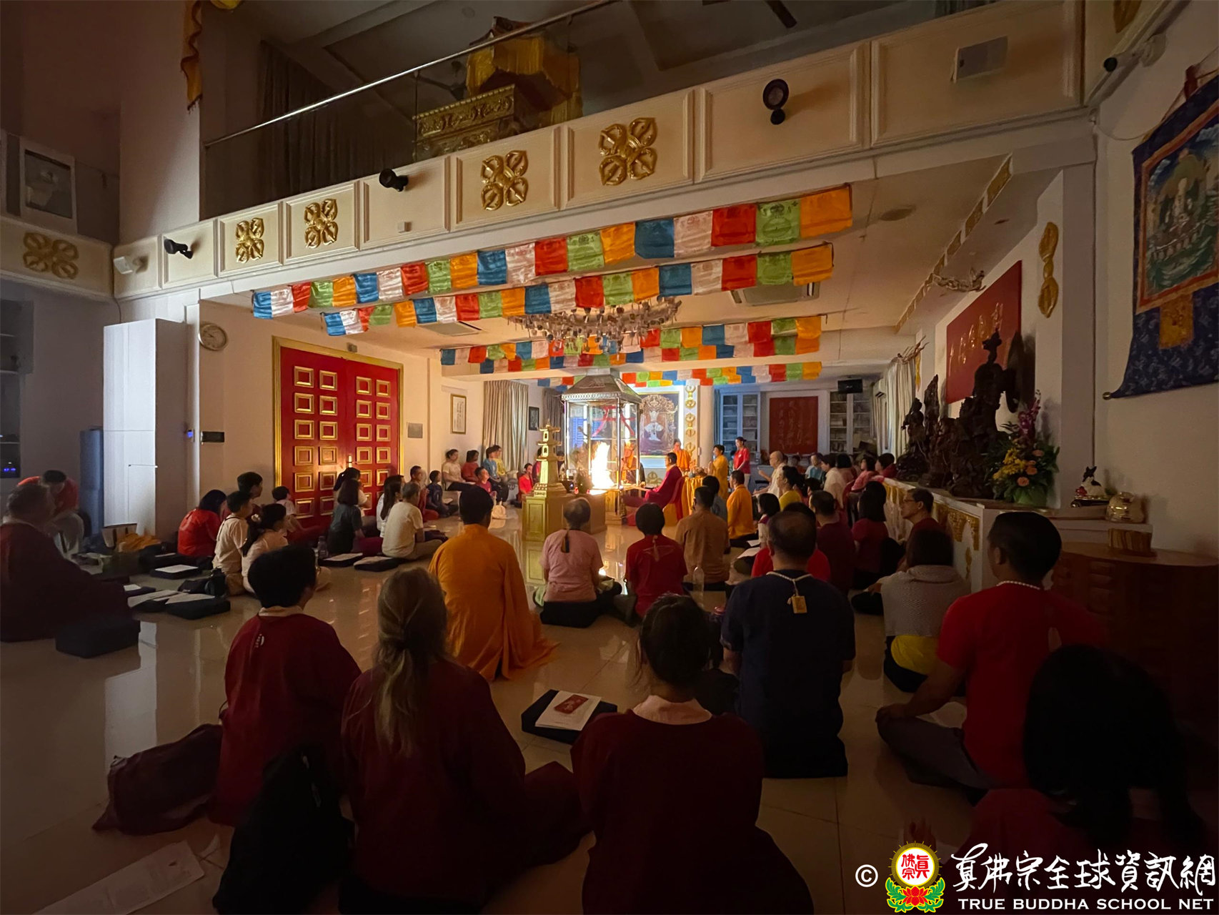 True Buddha Foundation (TBF) menggelar kegiatan Mohon Buddha Menetap di Dunia, segenap siswa di seluruh dunia merapal Mantra Hati Buddha Amitayus.