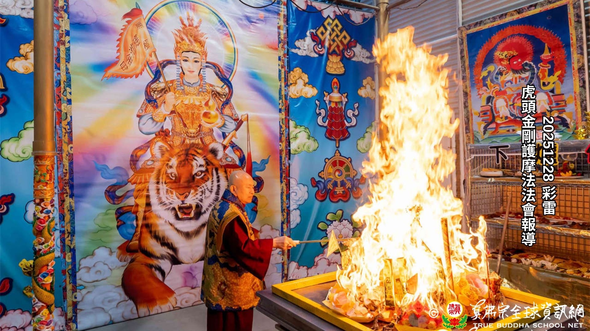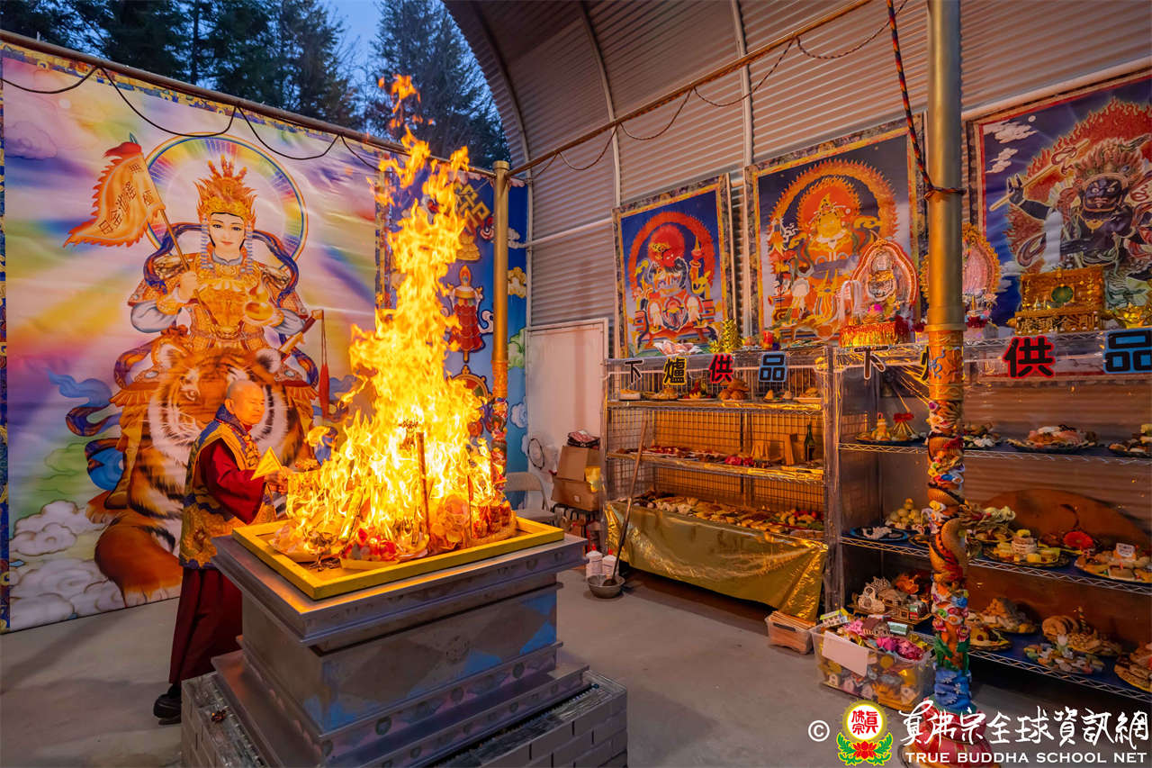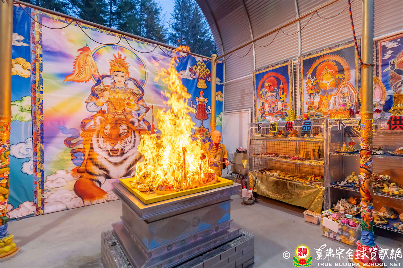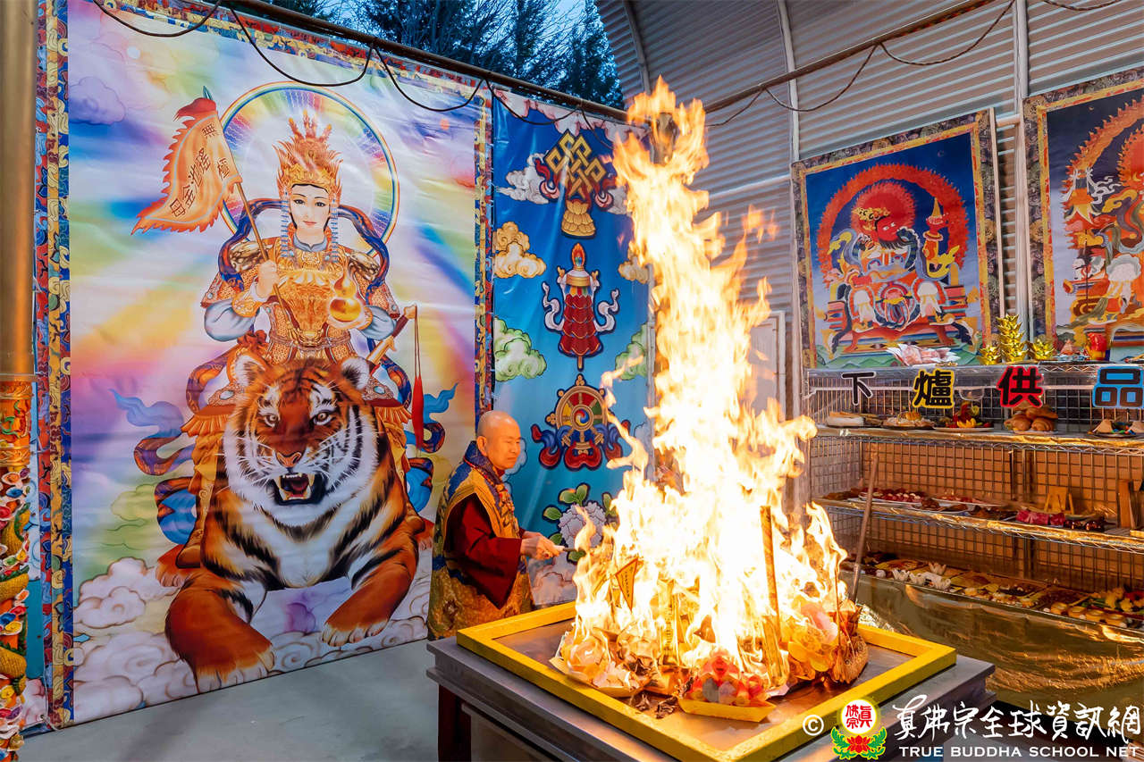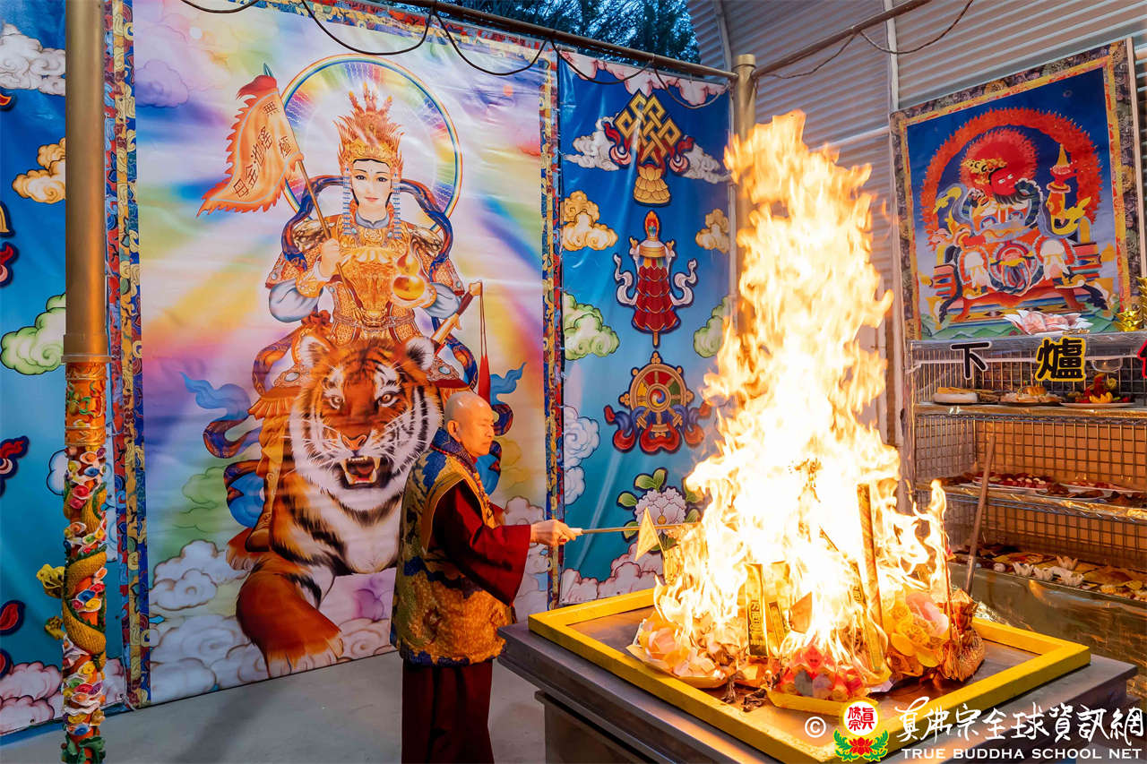 Pada tanggal 28 Desember 2025, Rainbow Temple dengan tulus mengundang Dharmaraja Lian Sheng, untuk memimpin Upacara Homa Vajra Vyaghravaktra. Setelah Homa selesai, Dharmaraja menyampaikan pengumuman bahwa Istadewata Upacara minggu berikutnya adalah Buddha Amitabha. Dharmaraja Lian Sheng melafalkan Mantra Hati dan membentuk mudra Buddha Amitabha.