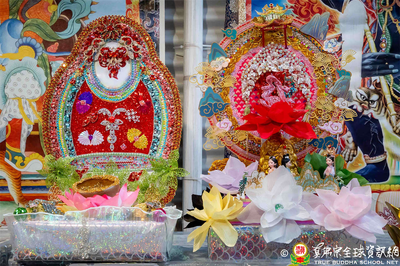 Buddha Guru pernah melukis gambar Dua Belas Dewi Mahasri yang agung dan indah, serta mentransmisikan banyak metode sadhana Dewi Mahasri. Dewi Mahasri juga merupakan Pelindung Dharma yang mulia dalam silsilah. Para siswa dengan hormat memohon Buddha Guru berwelas asih menganugerahkan “Gatha Pujian Dewi Mahasri”, karena saat ini belum terdapat tata ritual dan pujian resmi Dewi Mahasri.