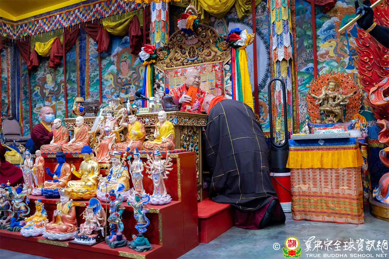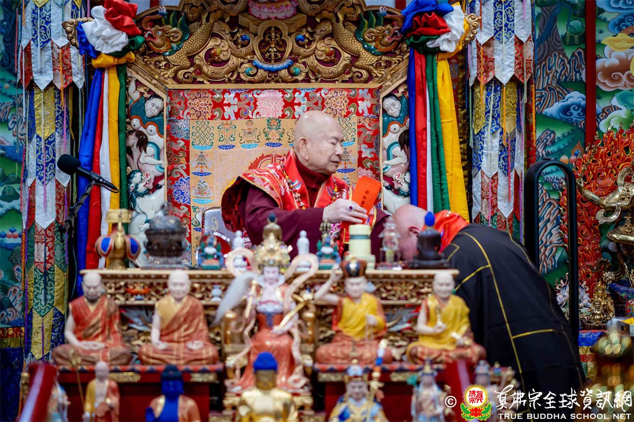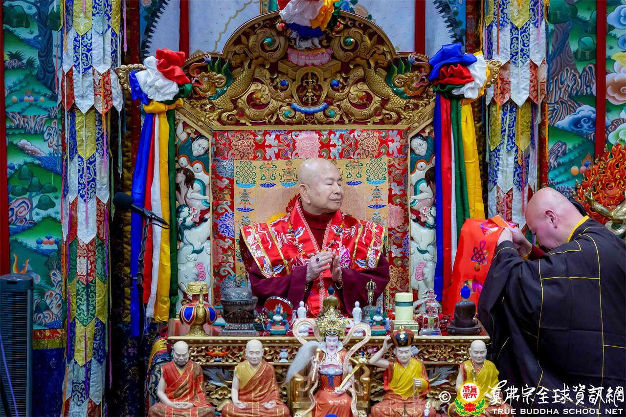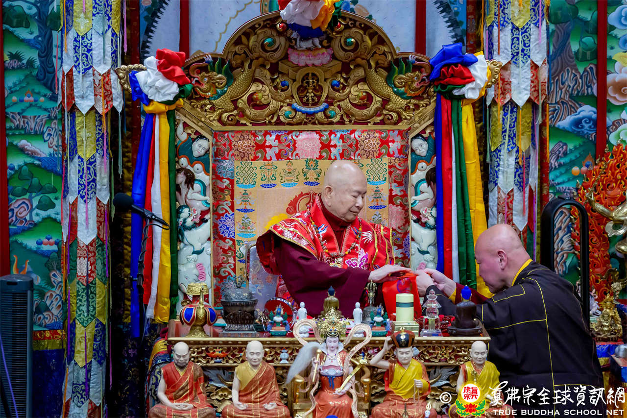 Usai Dharmadesana yang sangat mendalam, Dharmaraja dengan welas asih menganugerahkan Abhiseka Sadhana Buddha Amitabha kepada seluruh hadirin, dan Upacara Dharma pun berakhir dengan sempurna.