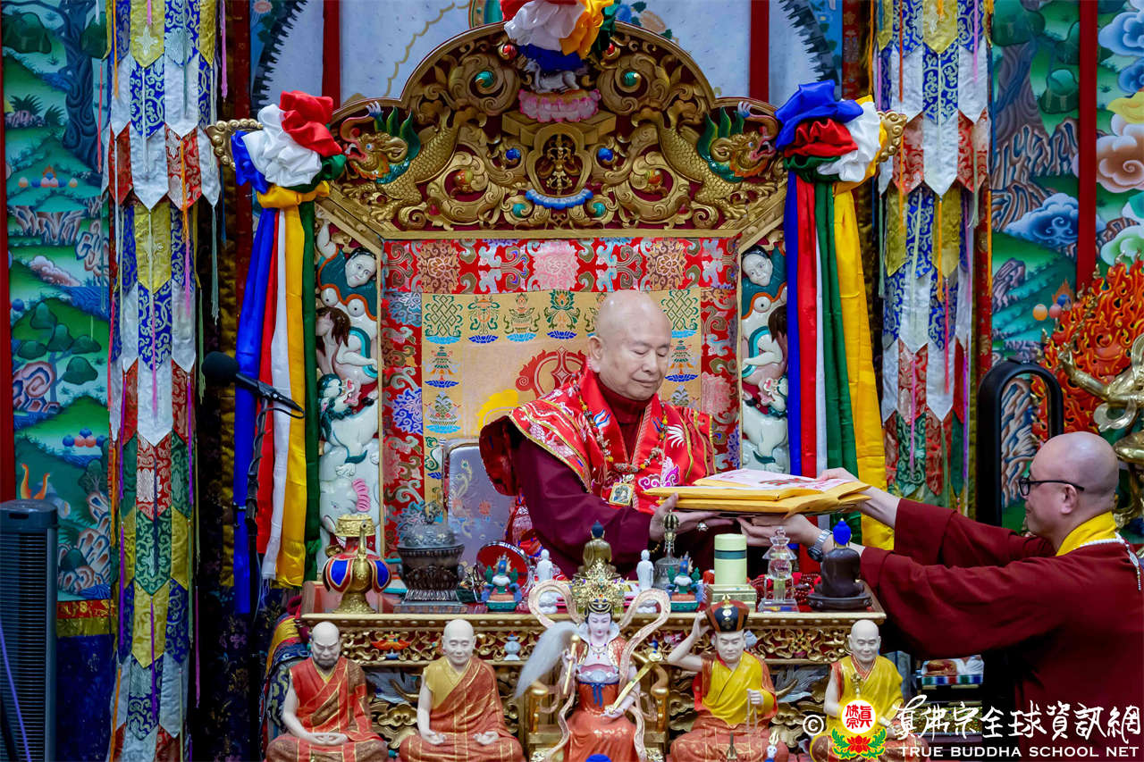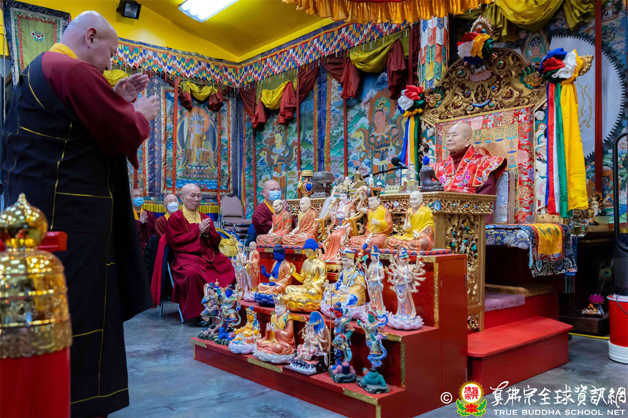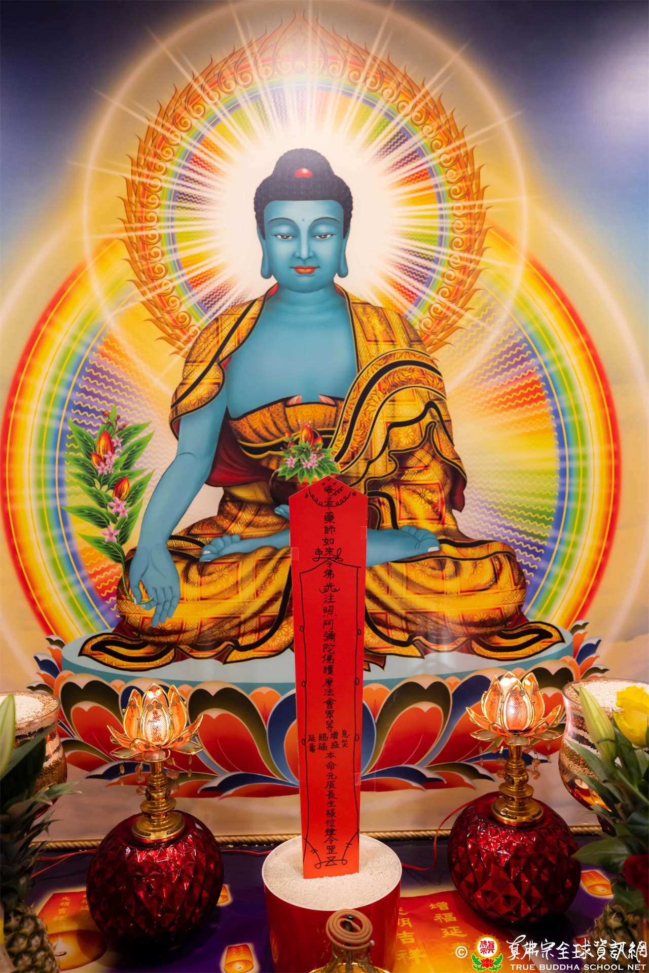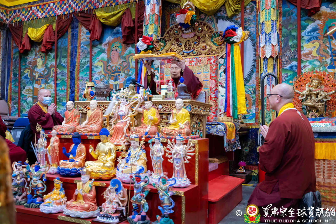 Usai Dharmadesana yang sangat mendalam, Dharmaraja dengan welas asih menganugerahkan Abhiseka Sadhana Buddha Amitabha kepada seluruh hadirin, dan Upacara Dharma pun berakhir dengan sempurna.