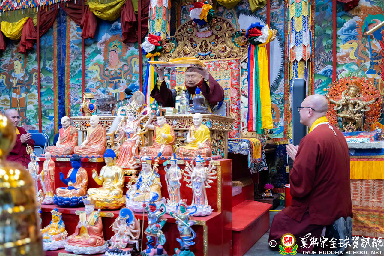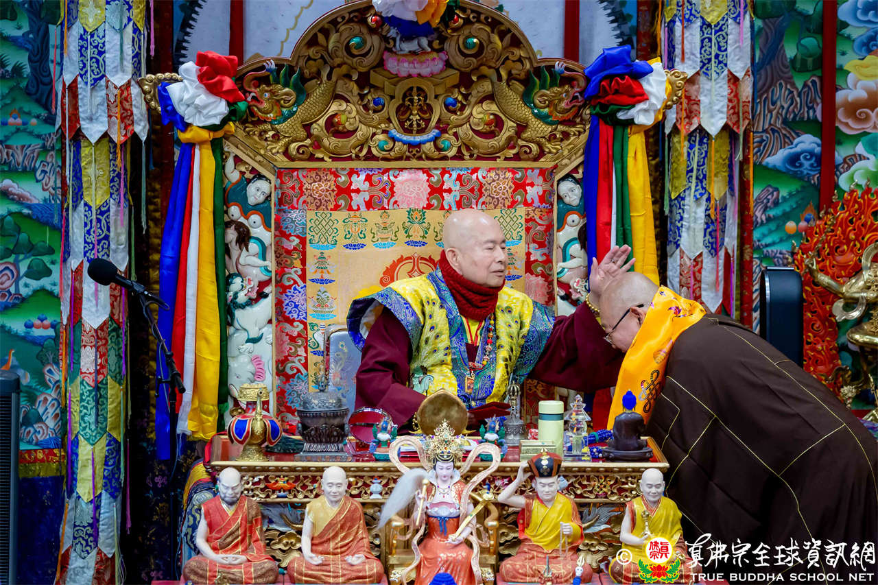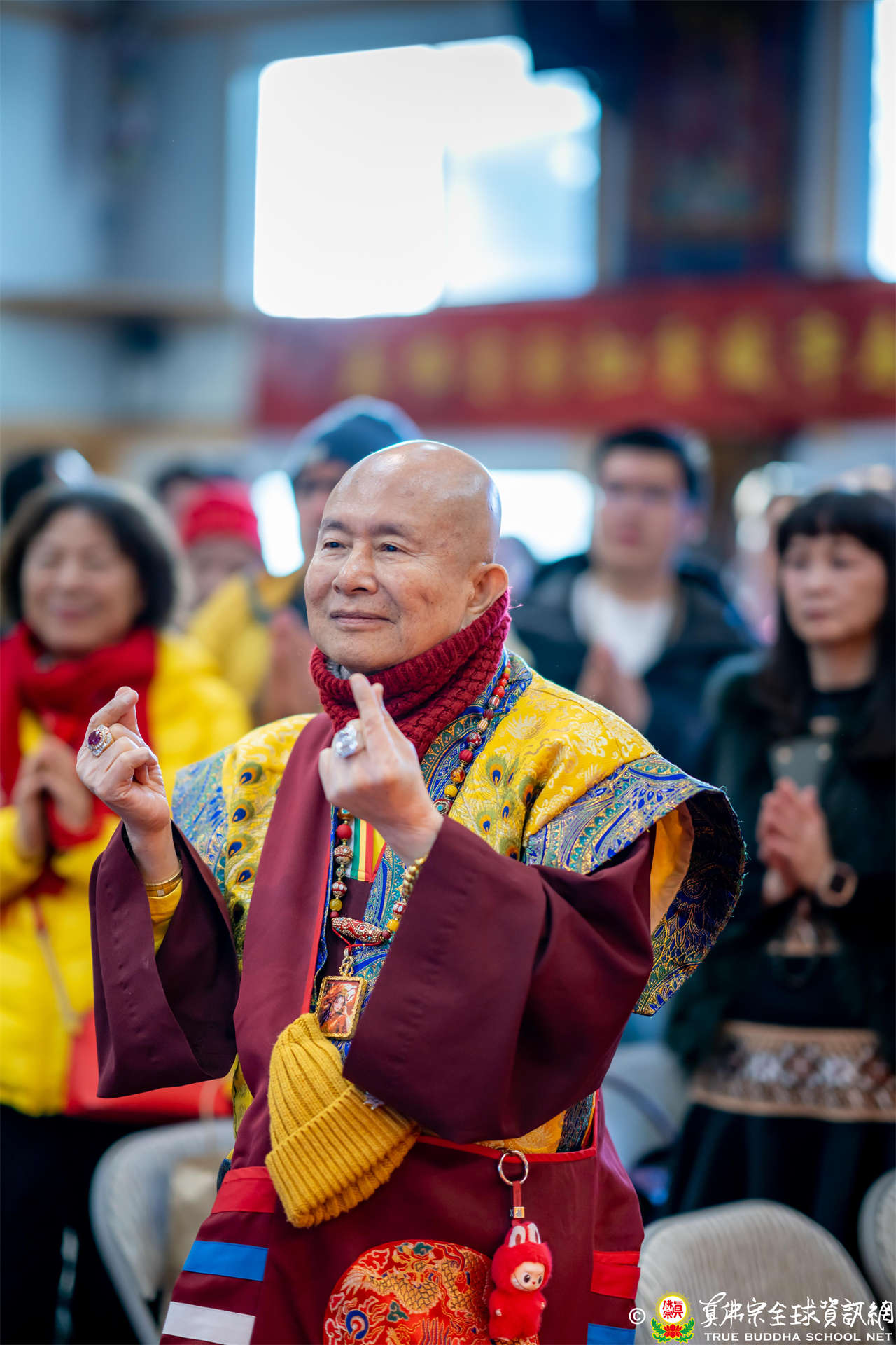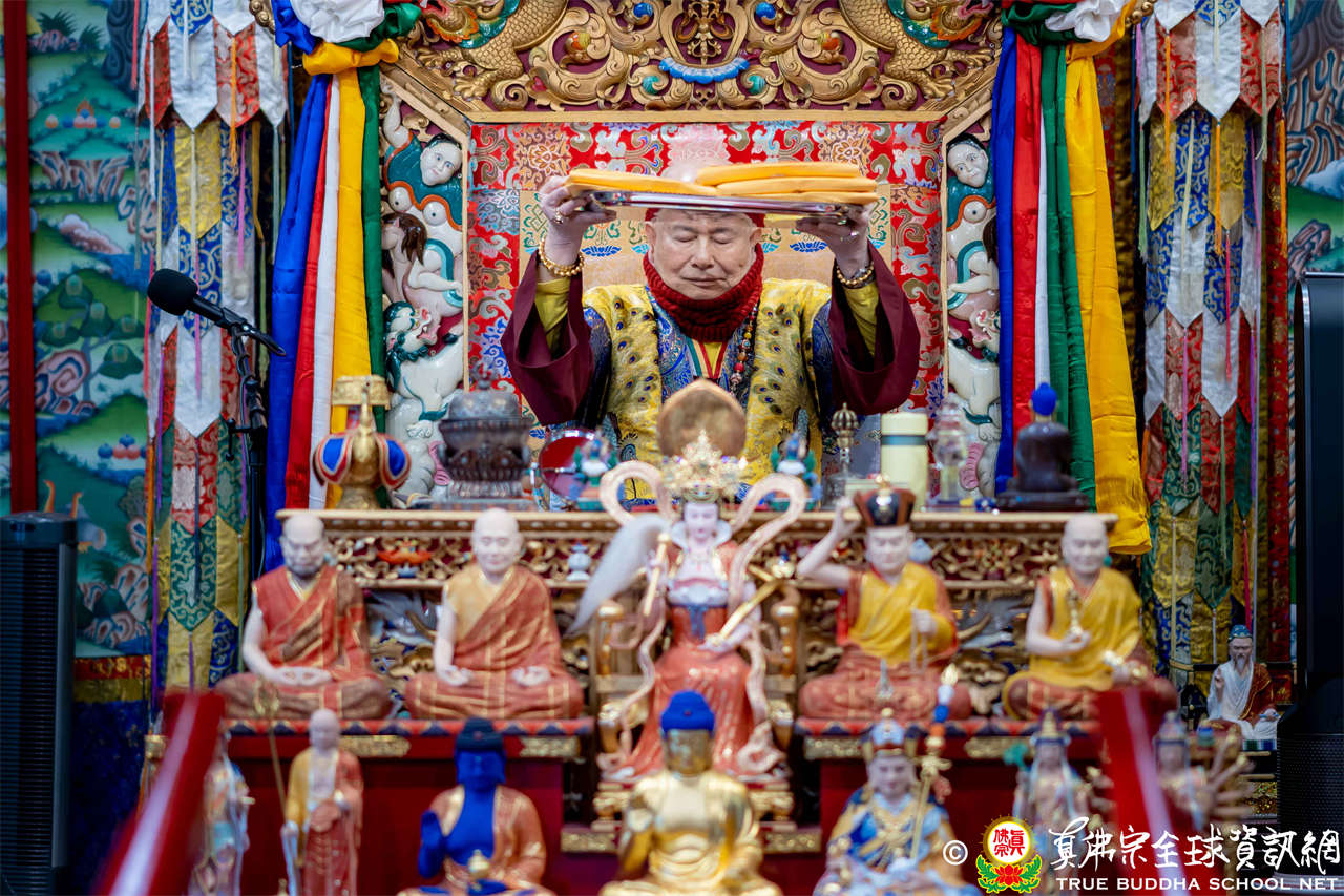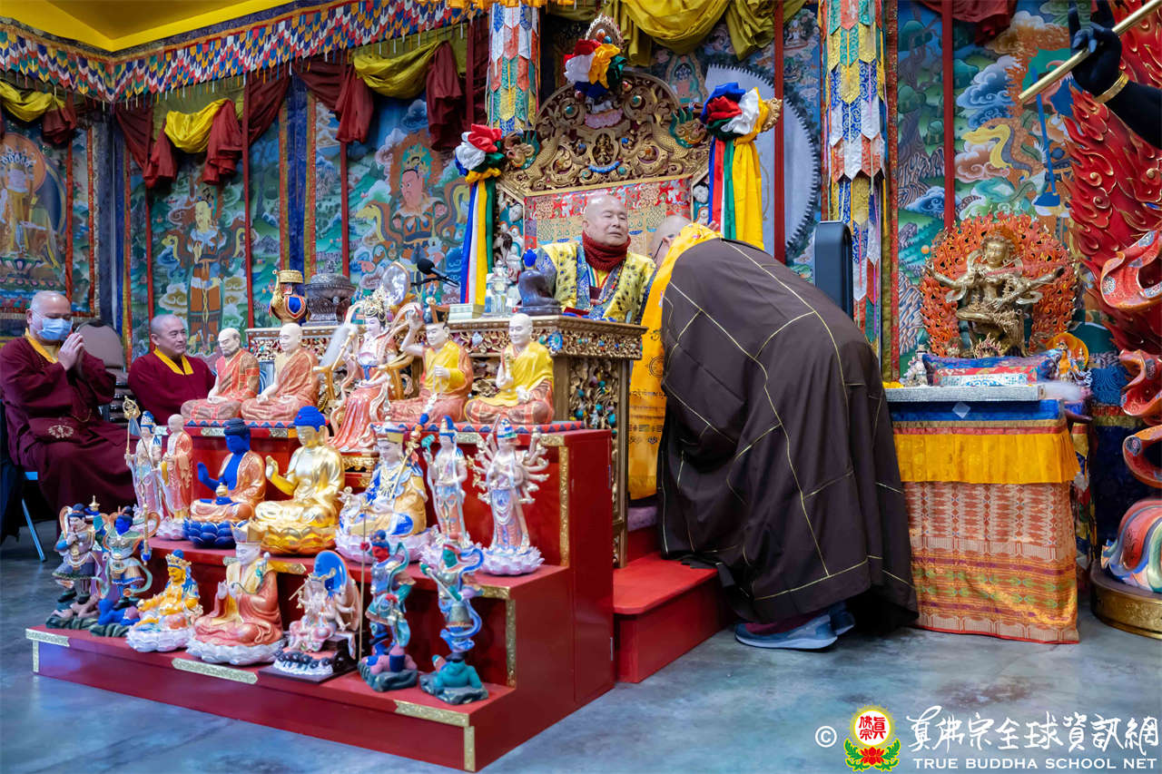 Pada awal upacara, selaras tahapan silsilah, dengan penuh hormat Dharmaraja Lian Sheng bersembah puja kepada para Guru Sesepuh: Biksu Liao Ming, Guru Sakya Zhengkong, Gyalwa Karmapa ke-16, Guru Thubten Dhargye, serta Triratna Mandala. Secara khusus, Beliau juga memberi penghormatan kepada Istadewata Homa hari itu, Buddha Vidyarajni Mahamayuri. Dharmaraja juga menyapa umat dengan hangat dalam berbagai bahasa, suasana dipenuhi sejuknya keharmonisan Guru dan siswa.