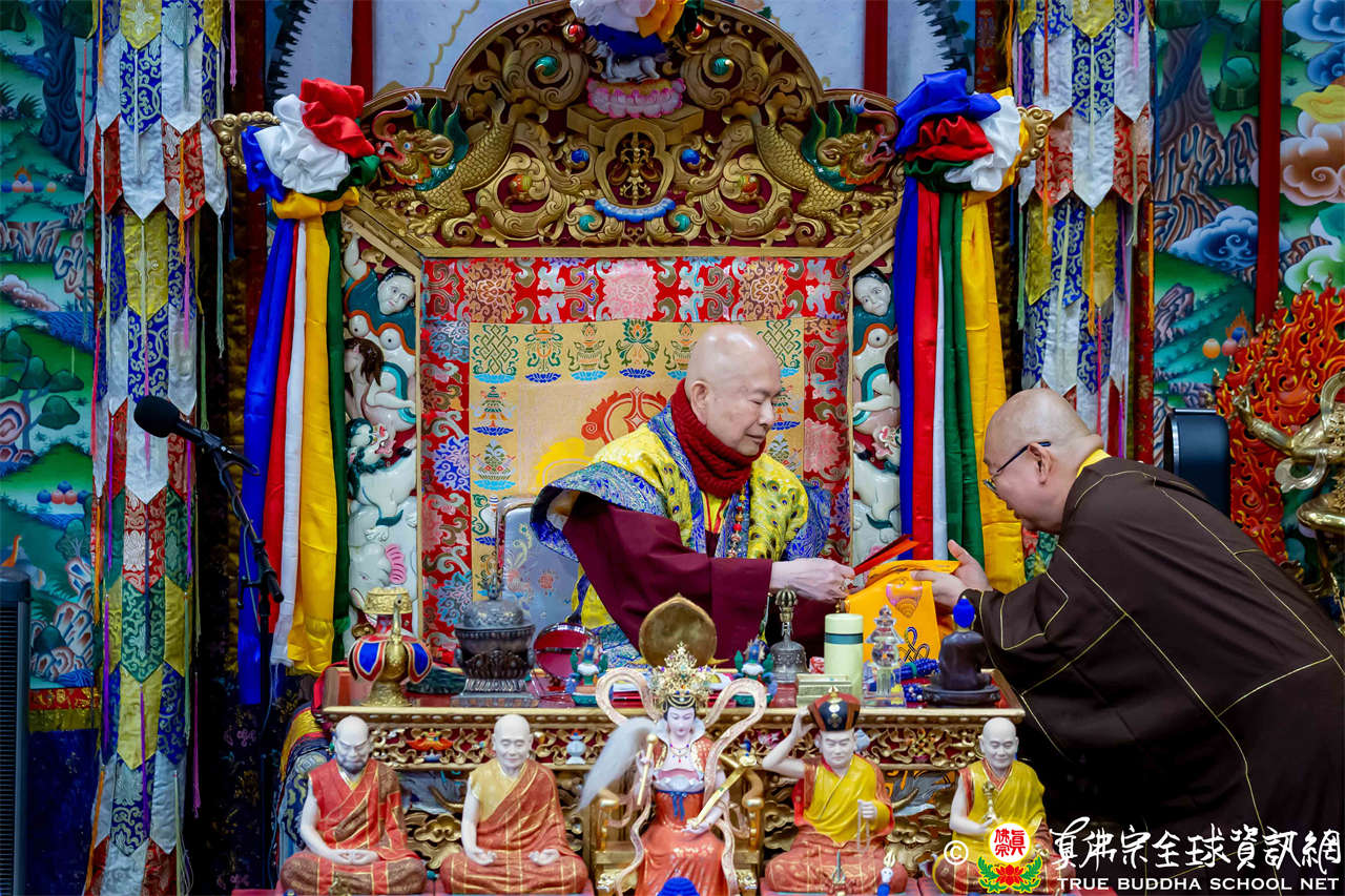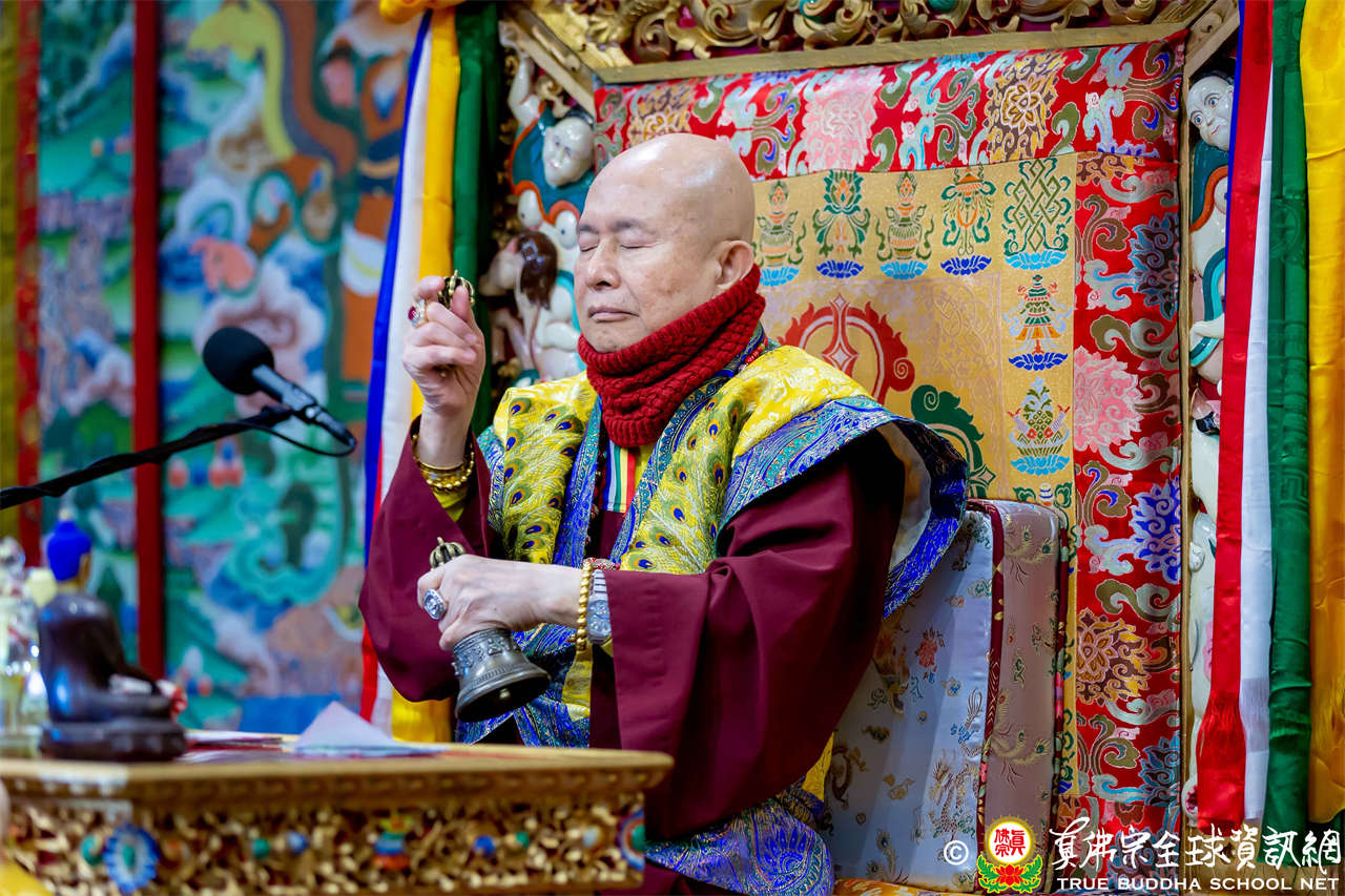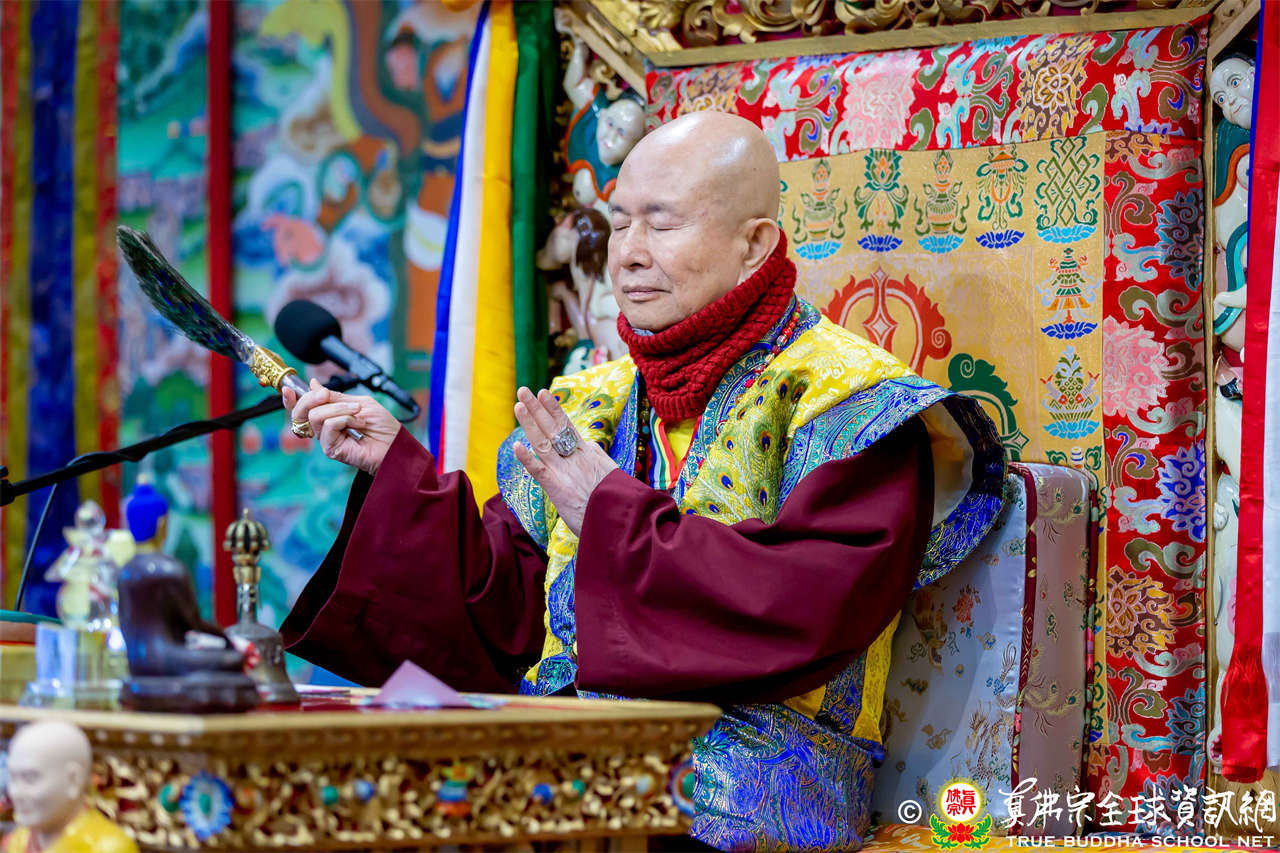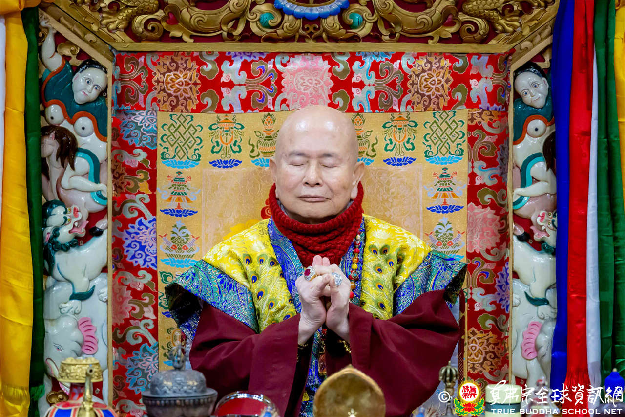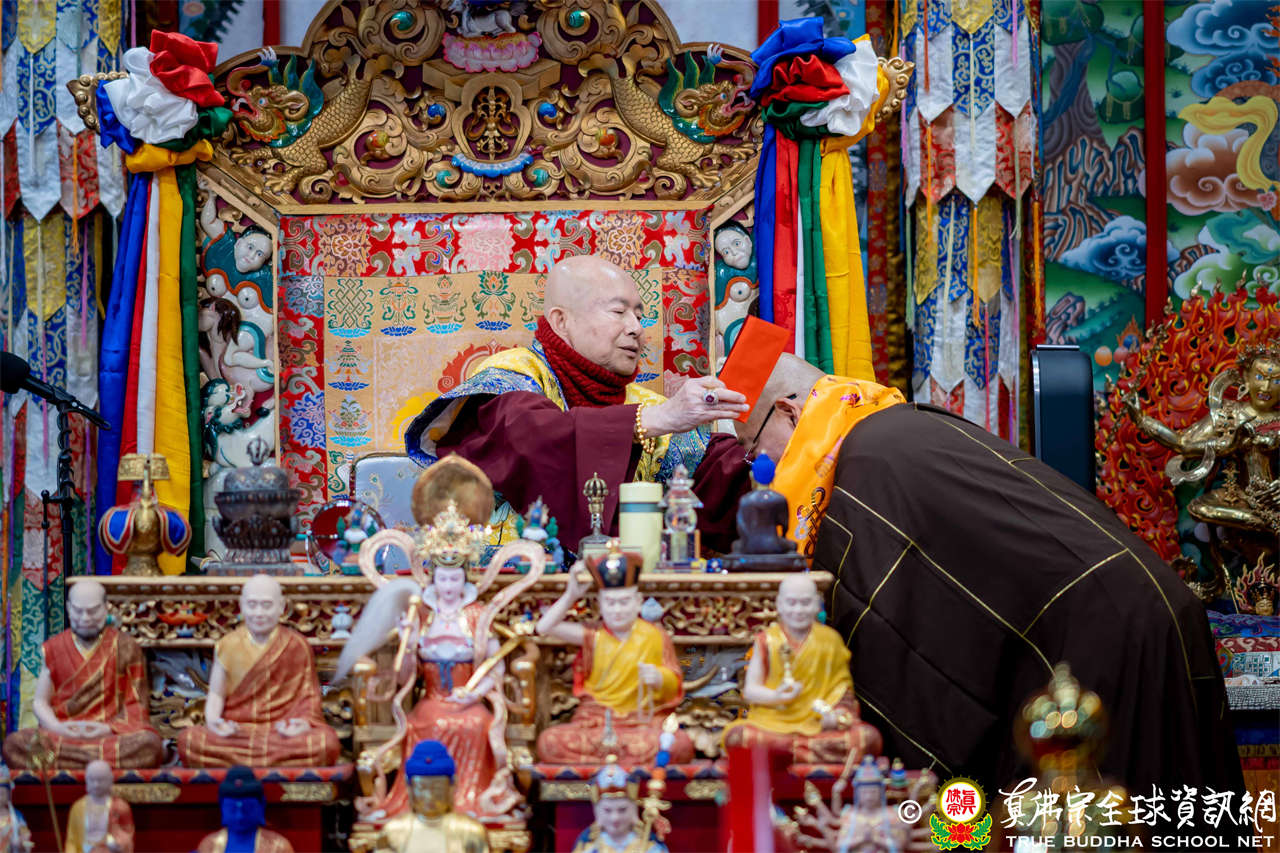 Pada awal upacara, selaras tahapan silsilah, dengan penuh hormat Dharmaraja Lian Sheng bersembah puja kepada para Guru Sesepuh: Biksu Liao Ming, Guru Sakya Zhengkong, Gyalwa Karmapa ke-16, Guru Thubten Dhargye, serta Triratna Mandala. Secara khusus, Beliau juga memberi penghormatan kepada Istadewata Homa hari itu, Buddha Vidyarajni Mahamayuri. Dharmaraja juga menyapa umat dengan hangat dalam berbagai bahasa, suasana dipenuhi sejuknya keharmonisan Guru dan siswa.