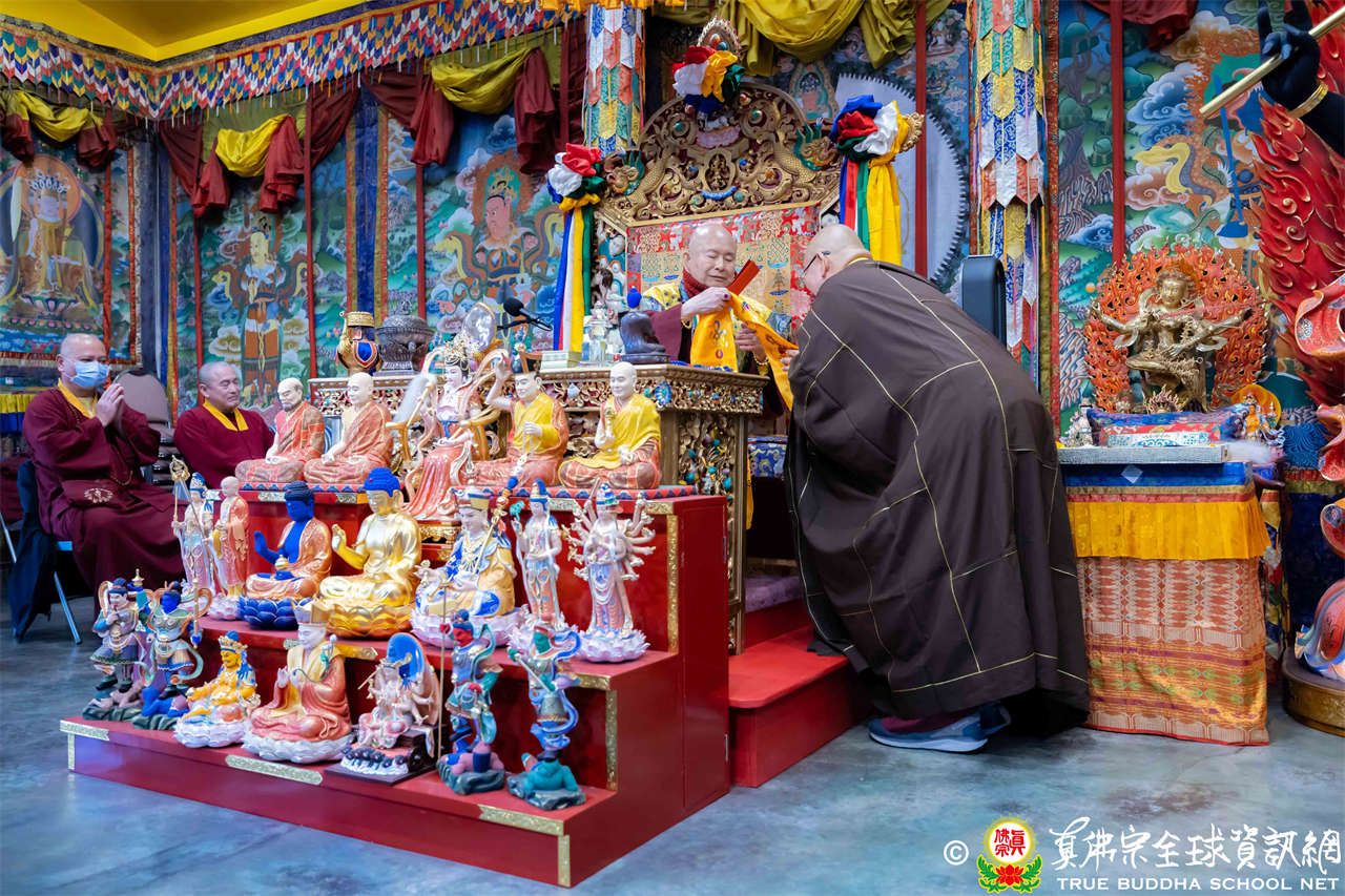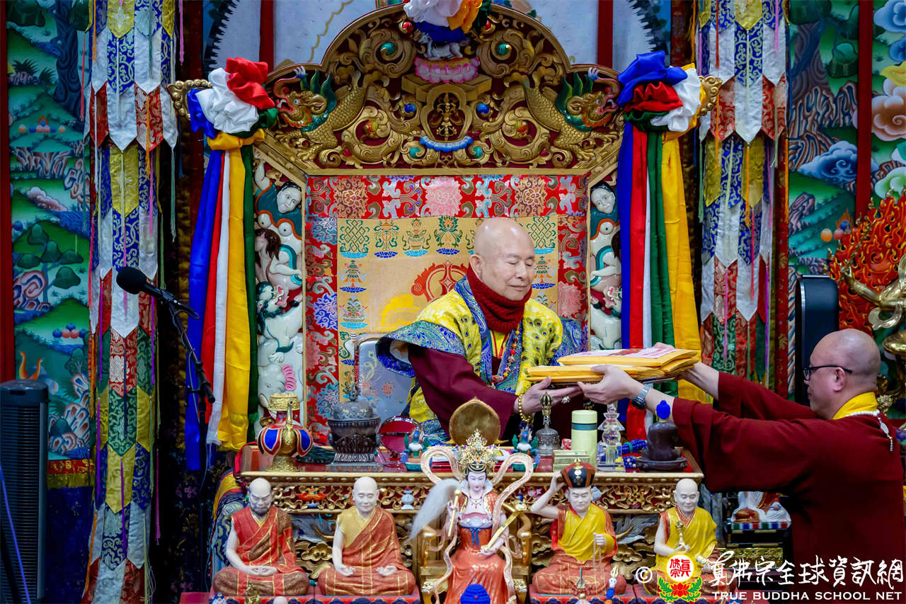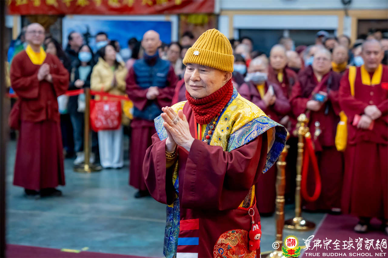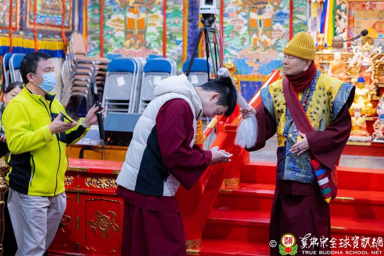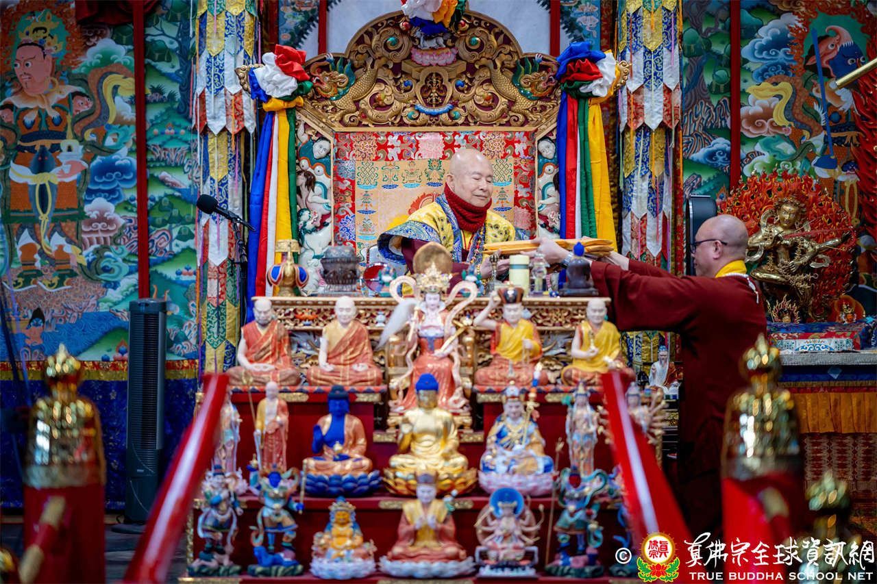 Pada awal upacara, selaras tahapan silsilah, dengan penuh hormat Dharmaraja Lian Sheng bersembah puja kepada para Guru Sesepuh: Biksu Liao Ming, Guru Sakya Zhengkong, Gyalwa Karmapa ke-16, Guru Thubten Dhargye, serta Triratna Mandala. Secara khusus, Beliau juga memberi penghormatan kepada Istadewata Homa hari itu, Buddha Vidyarajni Mahamayuri. Dharmaraja juga menyapa umat dengan hangat dalam berbagai bahasa, suasana dipenuhi sejuknya keharmonisan Guru dan siswa.