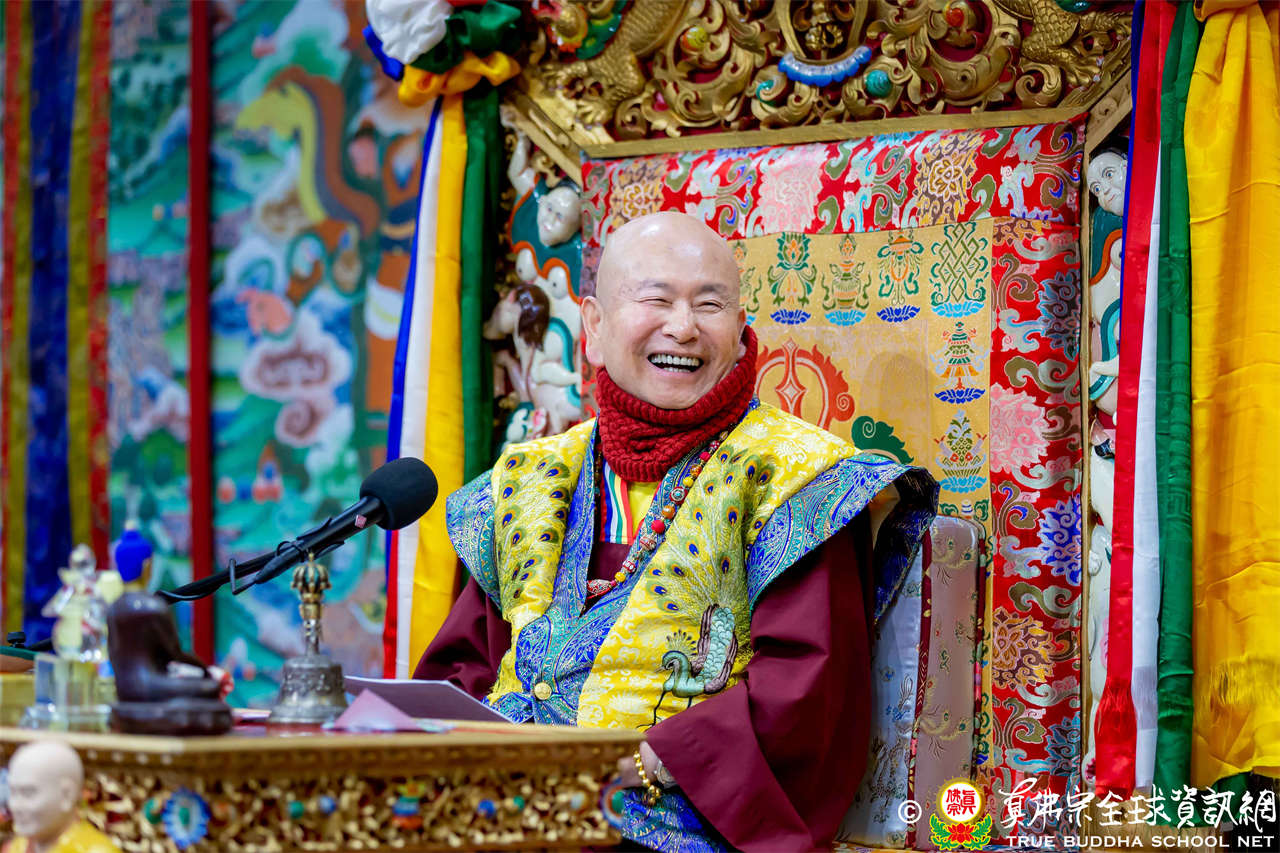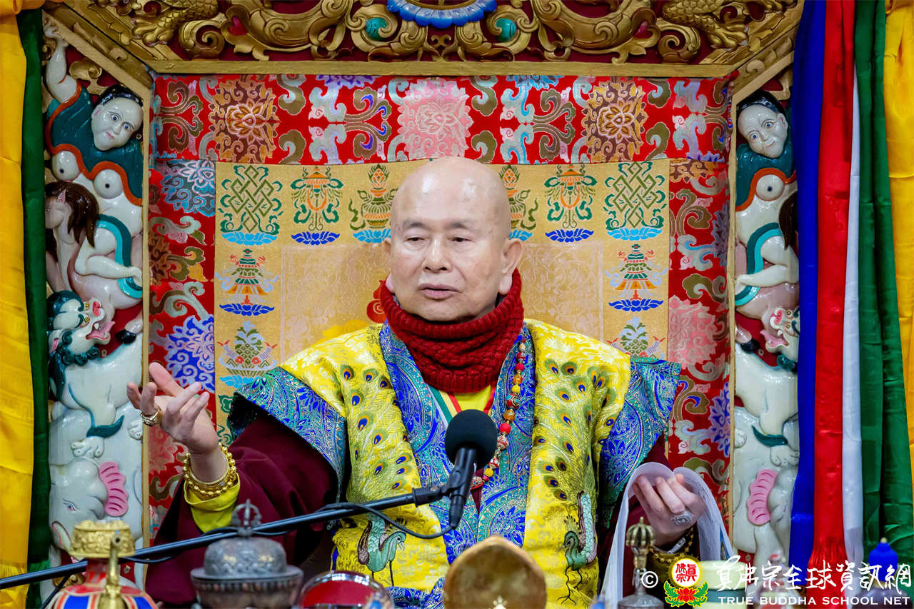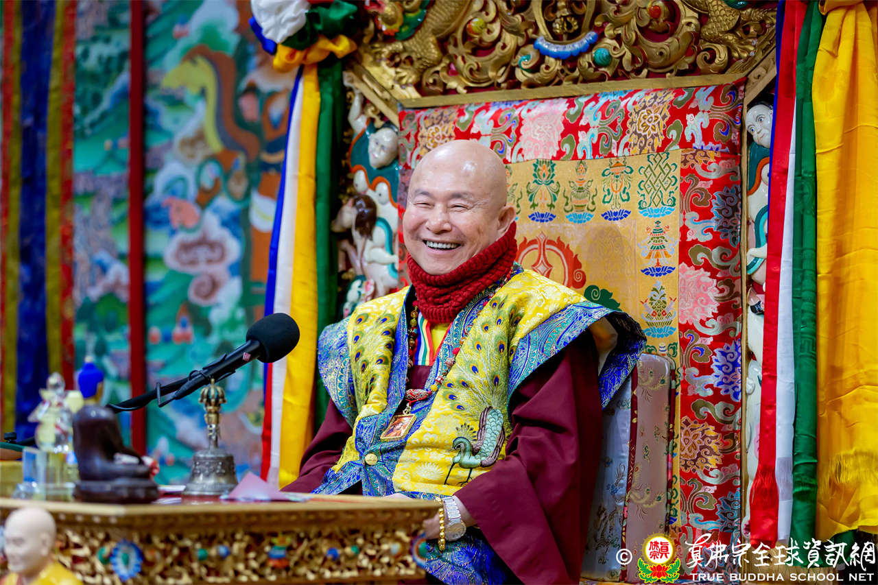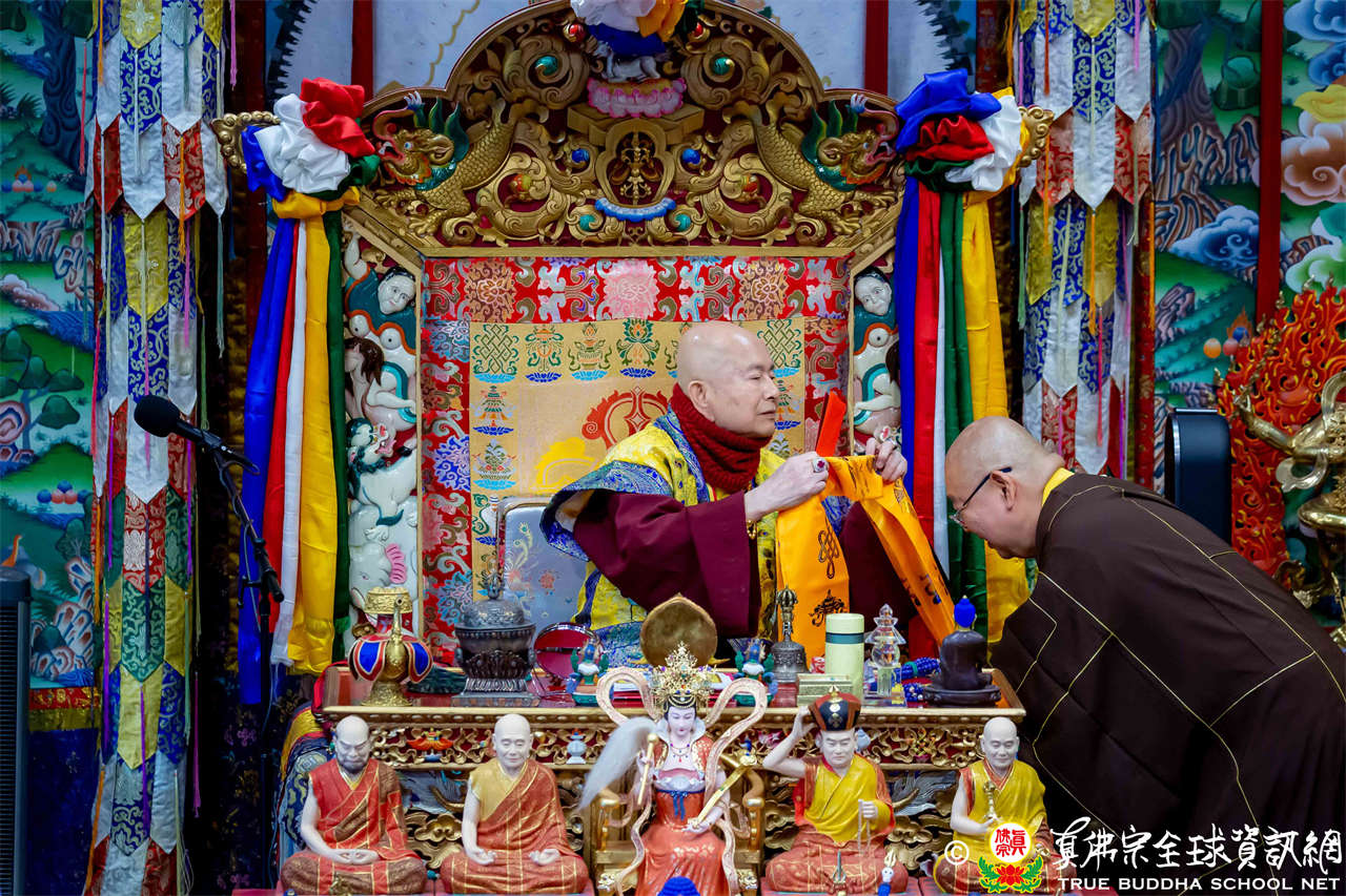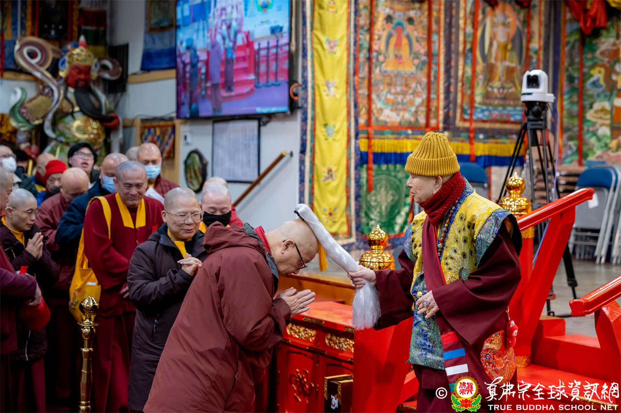 Pada awal upacara, selaras tahapan silsilah, dengan penuh hormat Dharmaraja Lian Sheng bersembah puja kepada para Guru Sesepuh: Biksu Liao Ming, Guru Sakya Zhengkong, Gyalwa Karmapa ke-16, Guru Thubten Dhargye, serta Triratna Mandala. Secara khusus, Beliau juga memberi penghormatan kepada Istadewata Homa hari itu, Buddha Vidyarajni Mahamayuri. Dharmaraja juga menyapa umat dengan hangat dalam berbagai bahasa, suasana dipenuhi sejuknya keharmonisan Guru dan siswa.