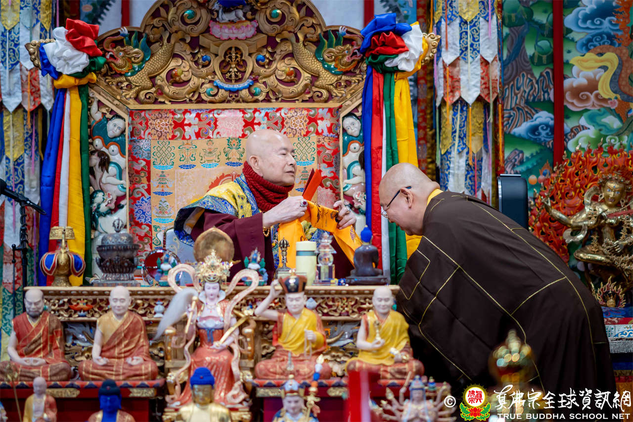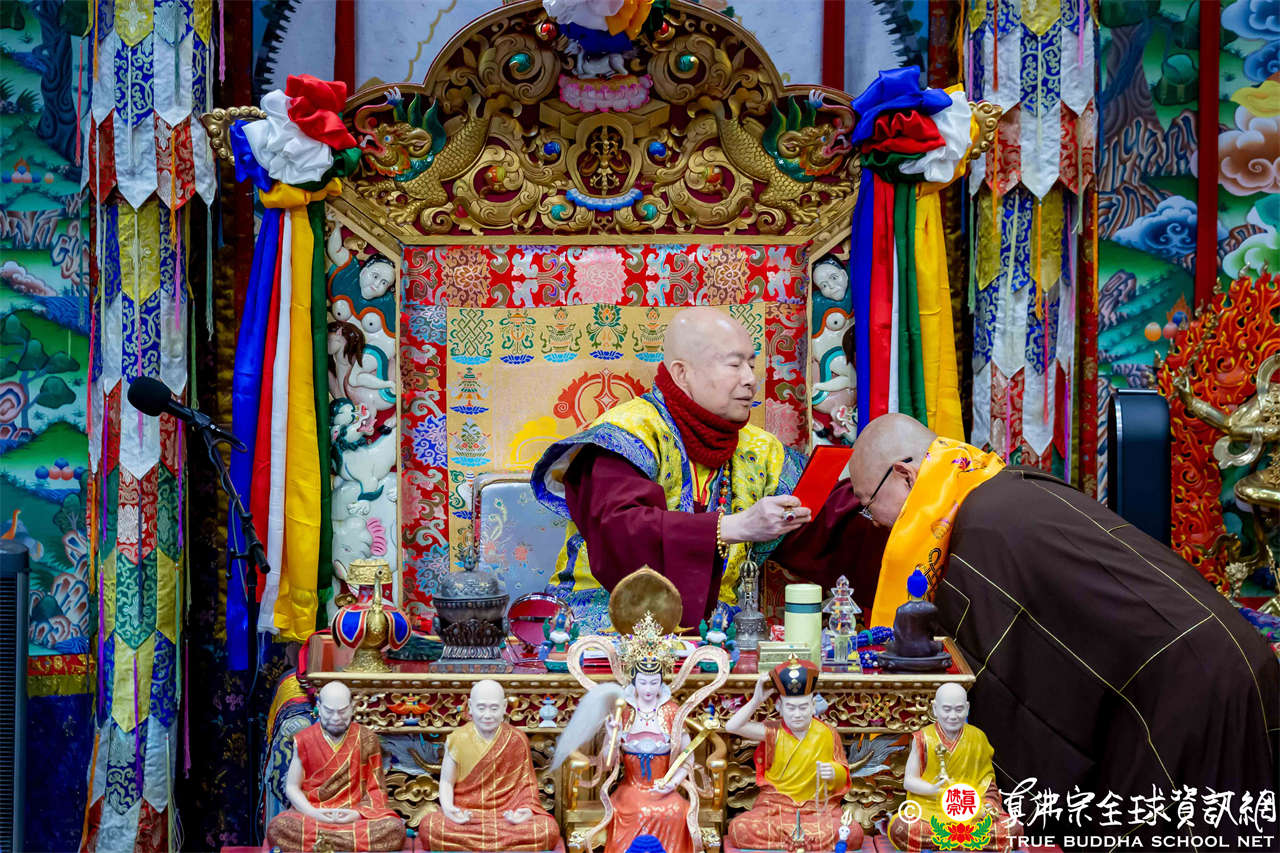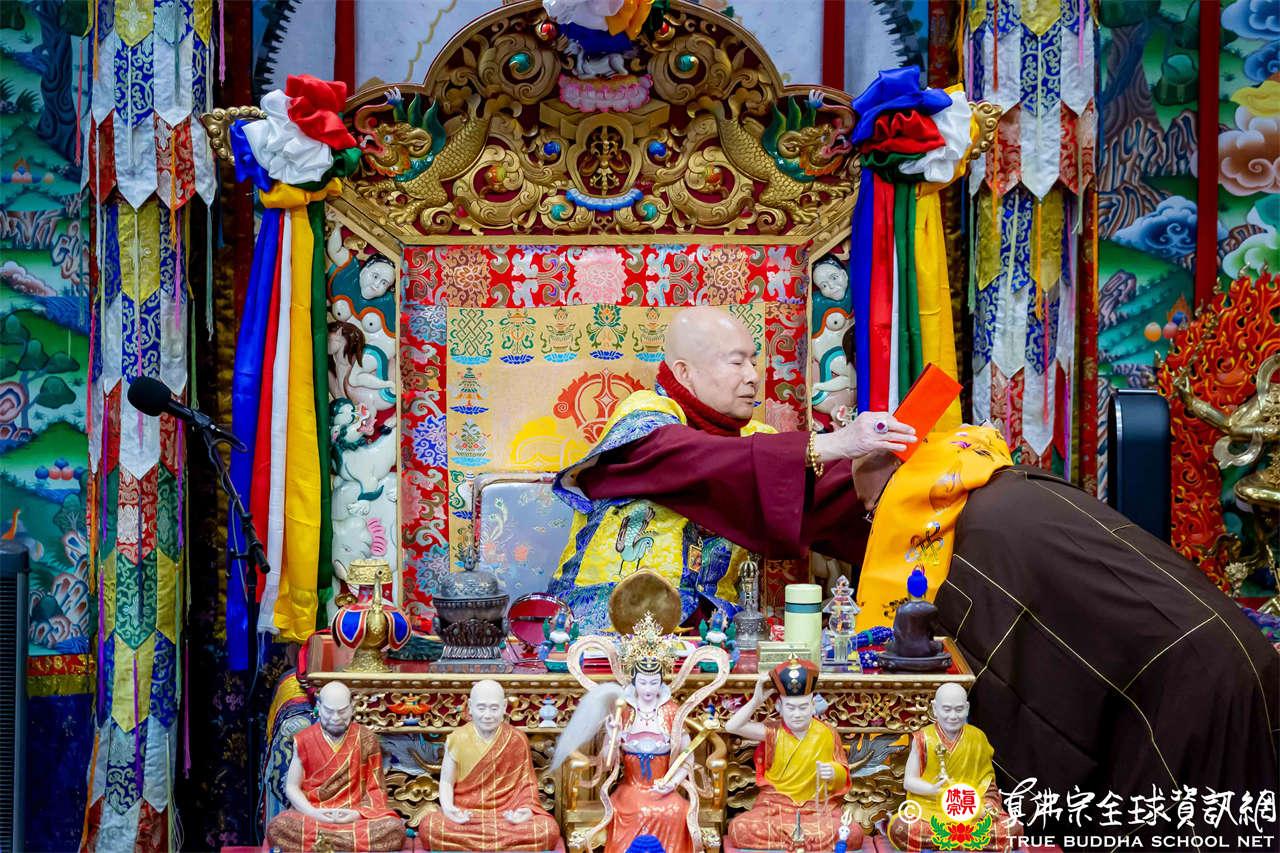Setelah menyelesaikan pengulasan Dharma yang mendalam, Dharmaraja Lian Sheng menganugerahkan Abhiseka Sadhana Vidyarajni Mahamayuri kepada seluruh hadirin. Upacara pun berakhir dengan sempurna dan manggala.