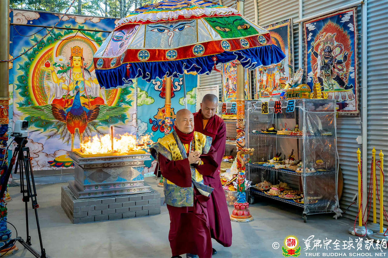 Pada tanggal 18 Januari 2026, Mahaguru Lu, Dharmaraja Lian Sheng, memimpin Upacara Homa Vidyarajni Mahamayuri di Rainbow Temple, Seattle, Amerika Serikat. Pada hari itu, mandala disusun dengan agung, arus Dharma mengalir memurnikan, segenap siswa baik yang hadir langsung maupun melalui jaringan daring berkumpul untuk bersama menerima manfaat Dharma.