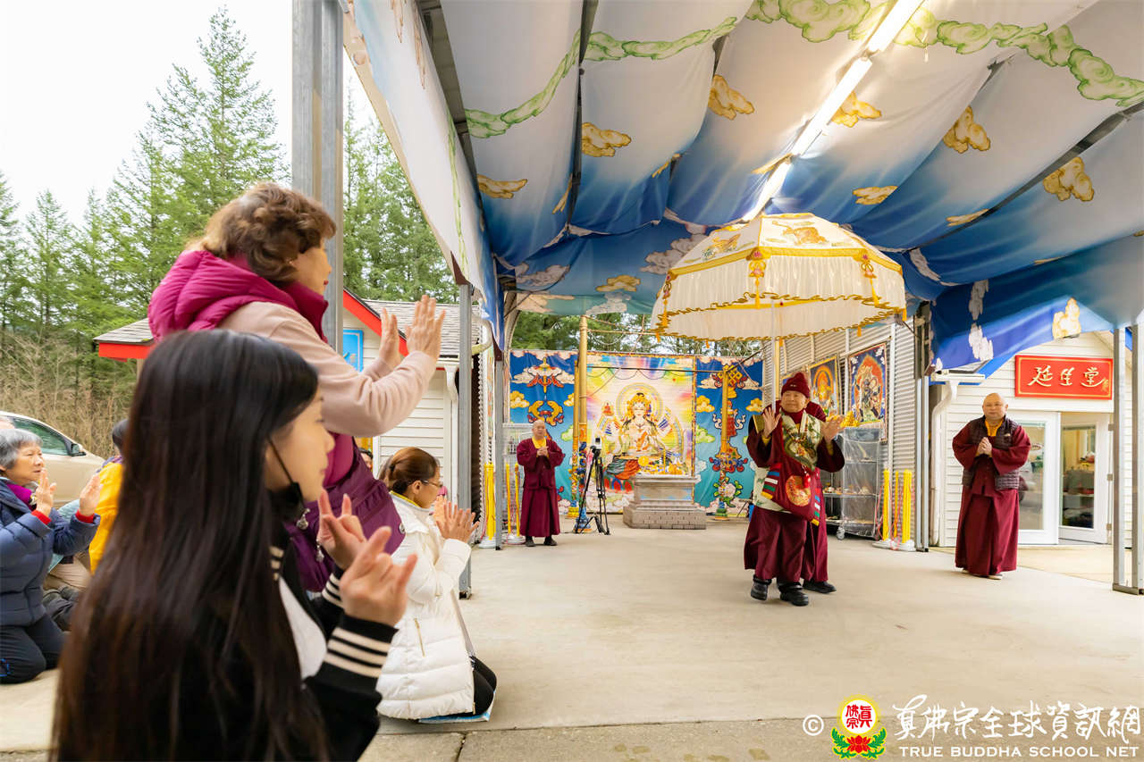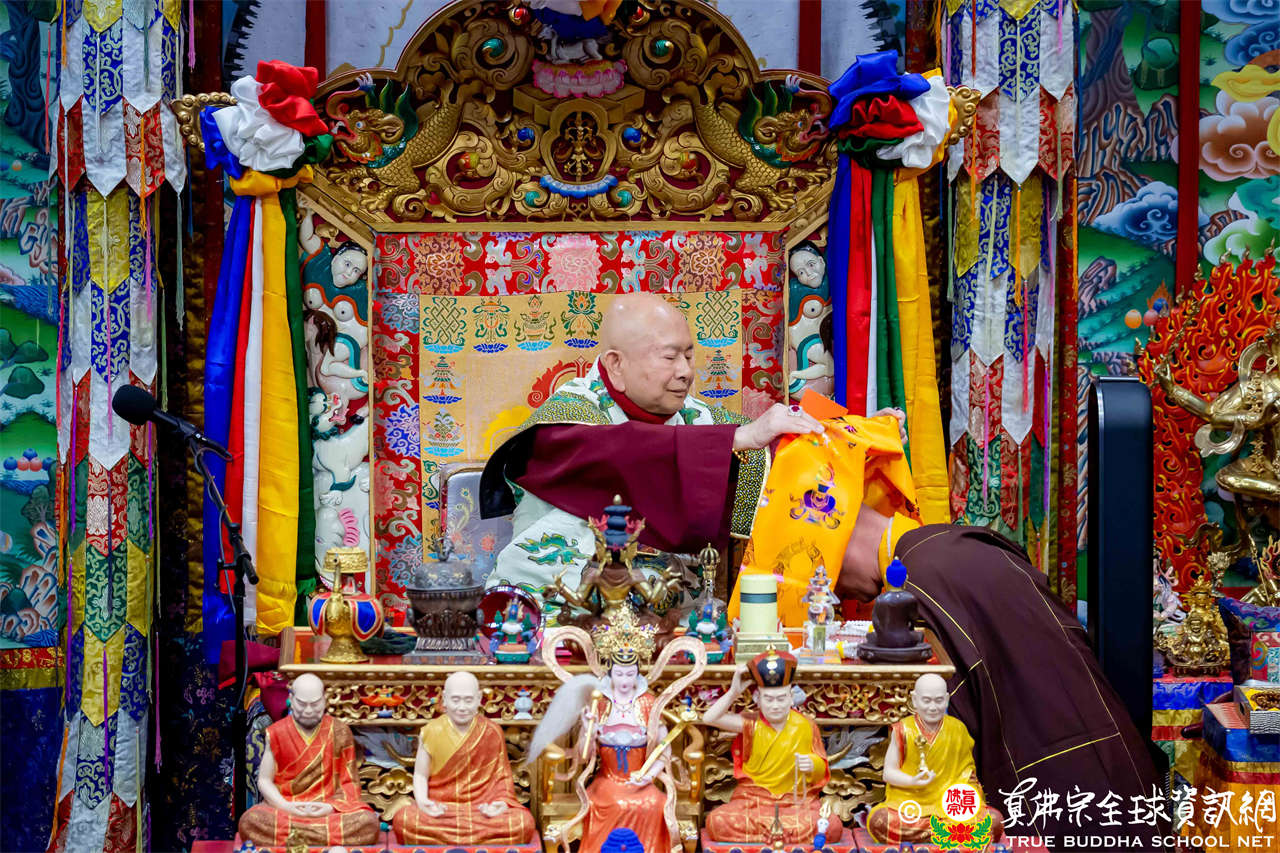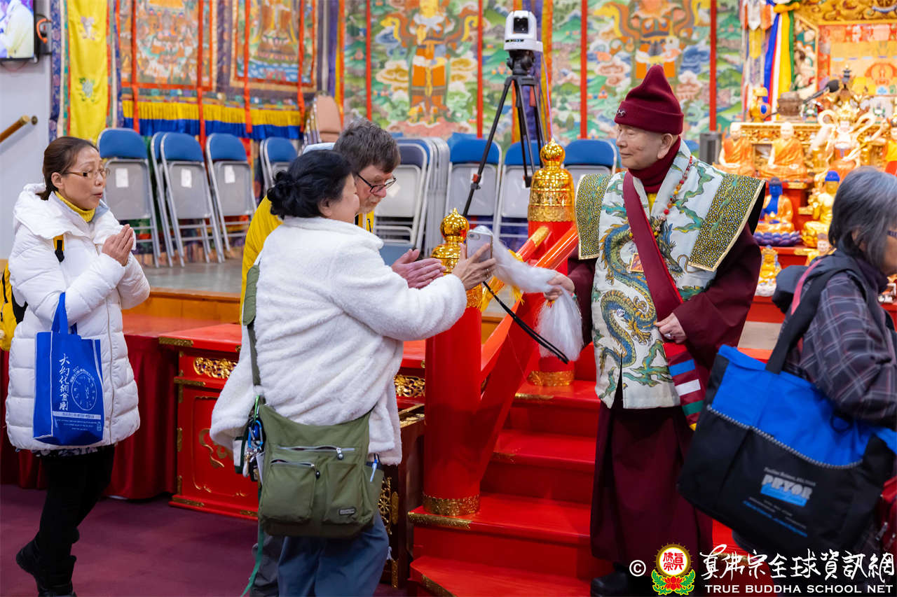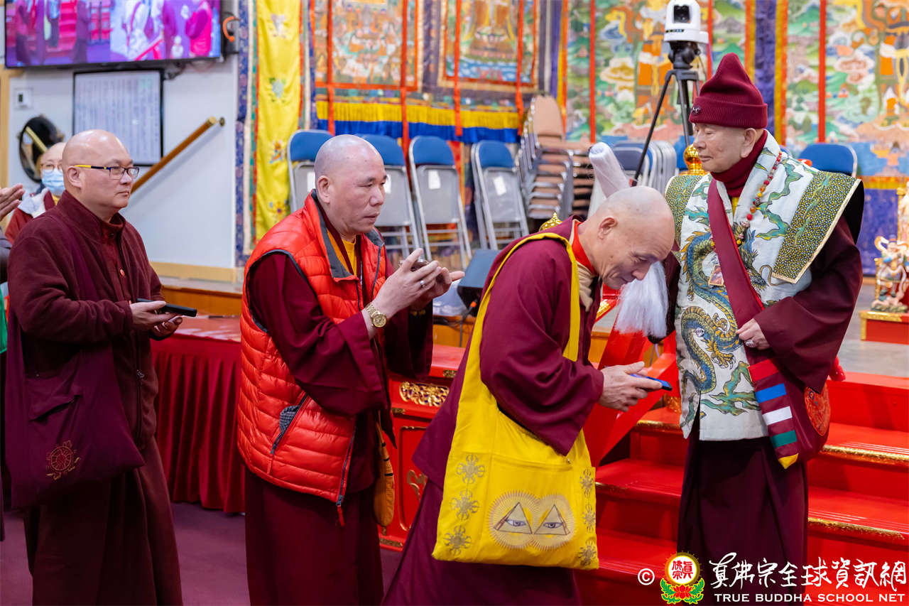 Setelah menyelesaikan Dharmadesana yang penuh makna, Dharmaraja Lian Sheng dengan welas asih menganugerahkan Abhiseka Bhagavati Usnisavijaya kepada seluruh hadirin, dan Upacara Dharma pun berakhir dengan sempurna.
