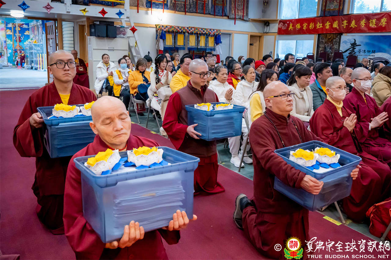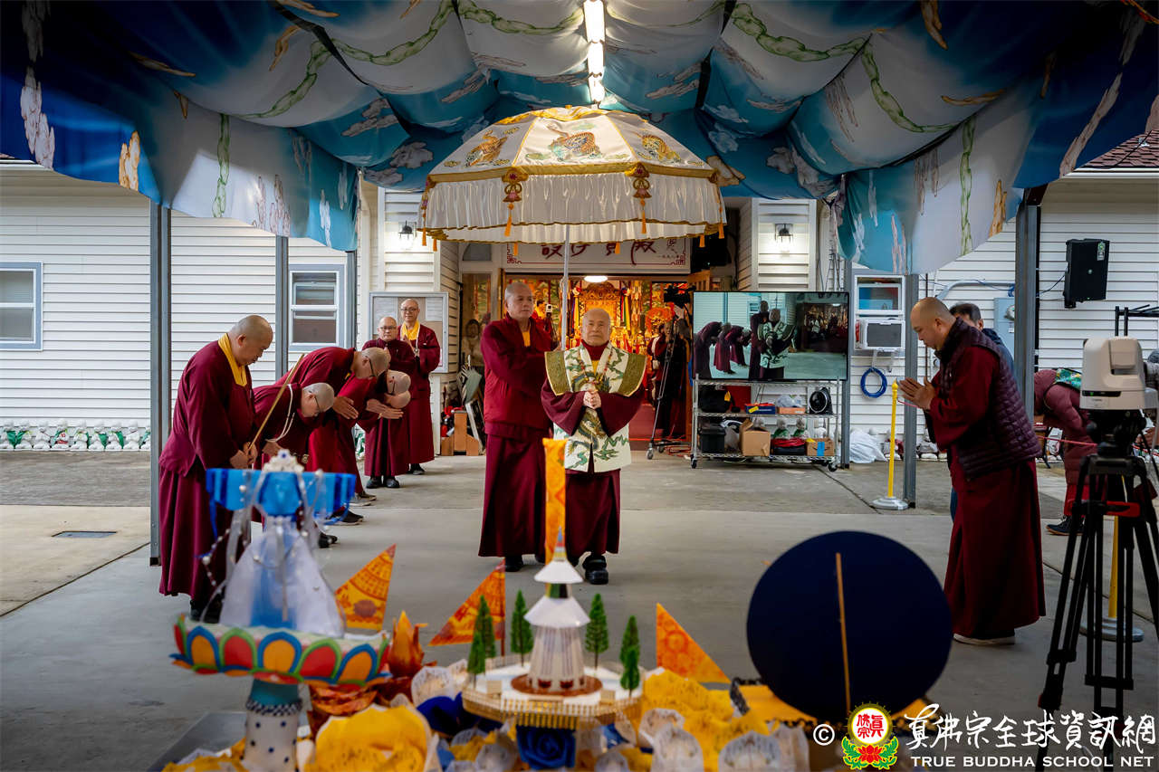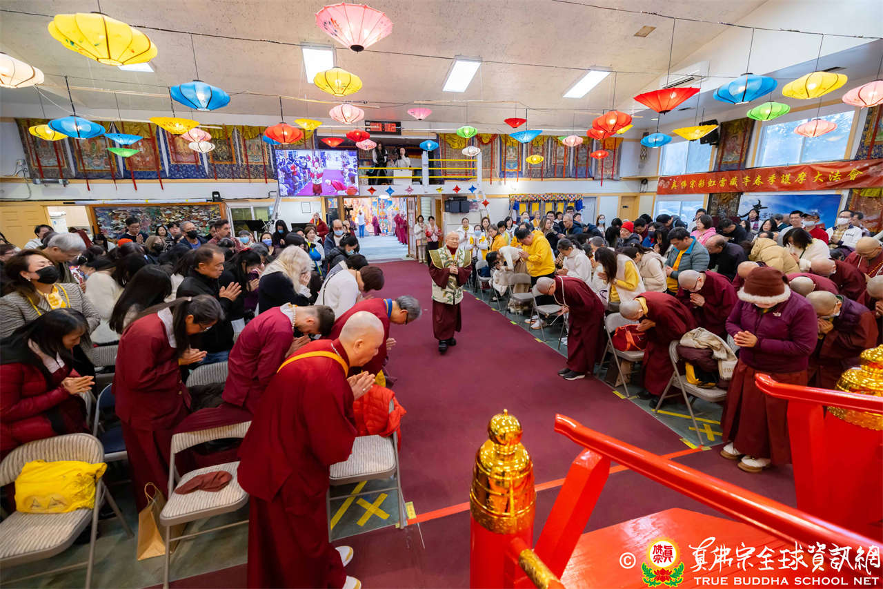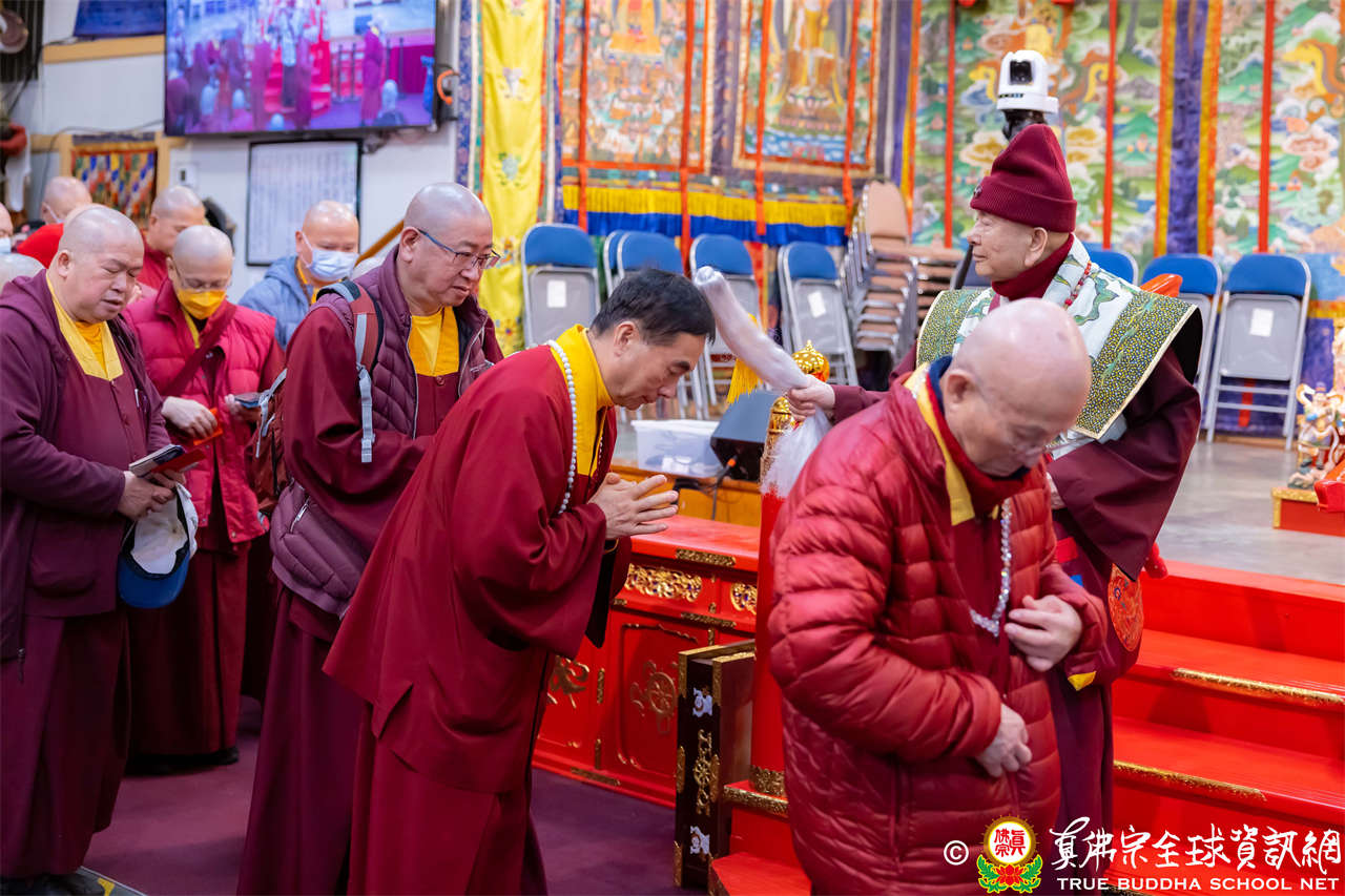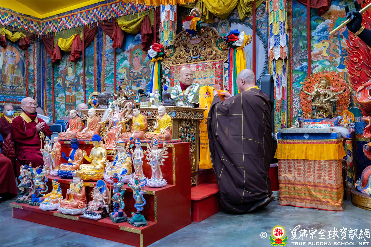 Setelah menyelesaikan Dharmadesana yang penuh makna, Dharmaraja Lian Sheng dengan welas asih menganugerahkan Abhiseka Bhagavati Usnisavijaya kepada seluruh hadirin, dan Upacara Dharma pun berakhir dengan sempurna.