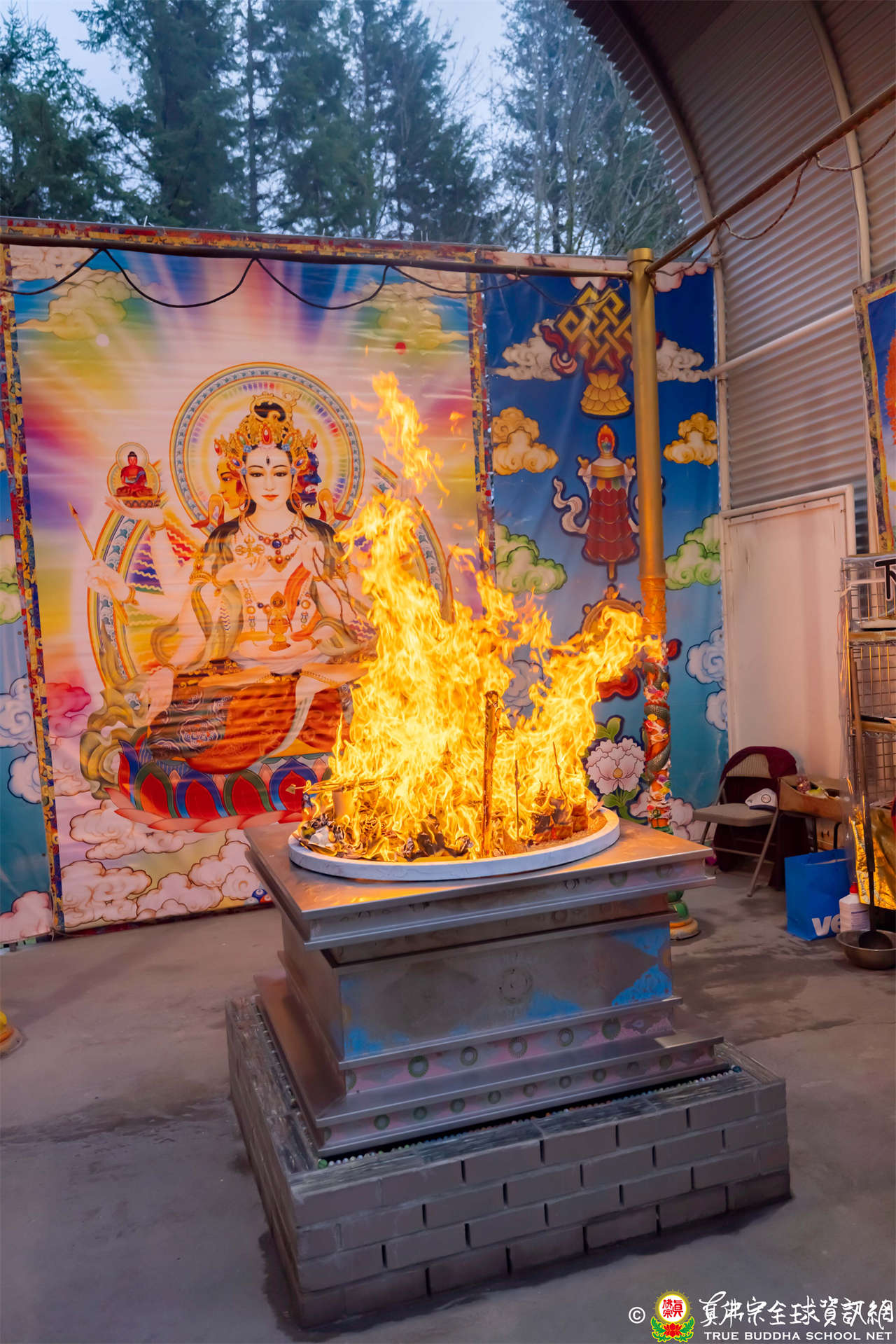 Siaran langsung upacara homa di Rainbow Temple, setiap hari Senin, pukul 05:00 WIB
