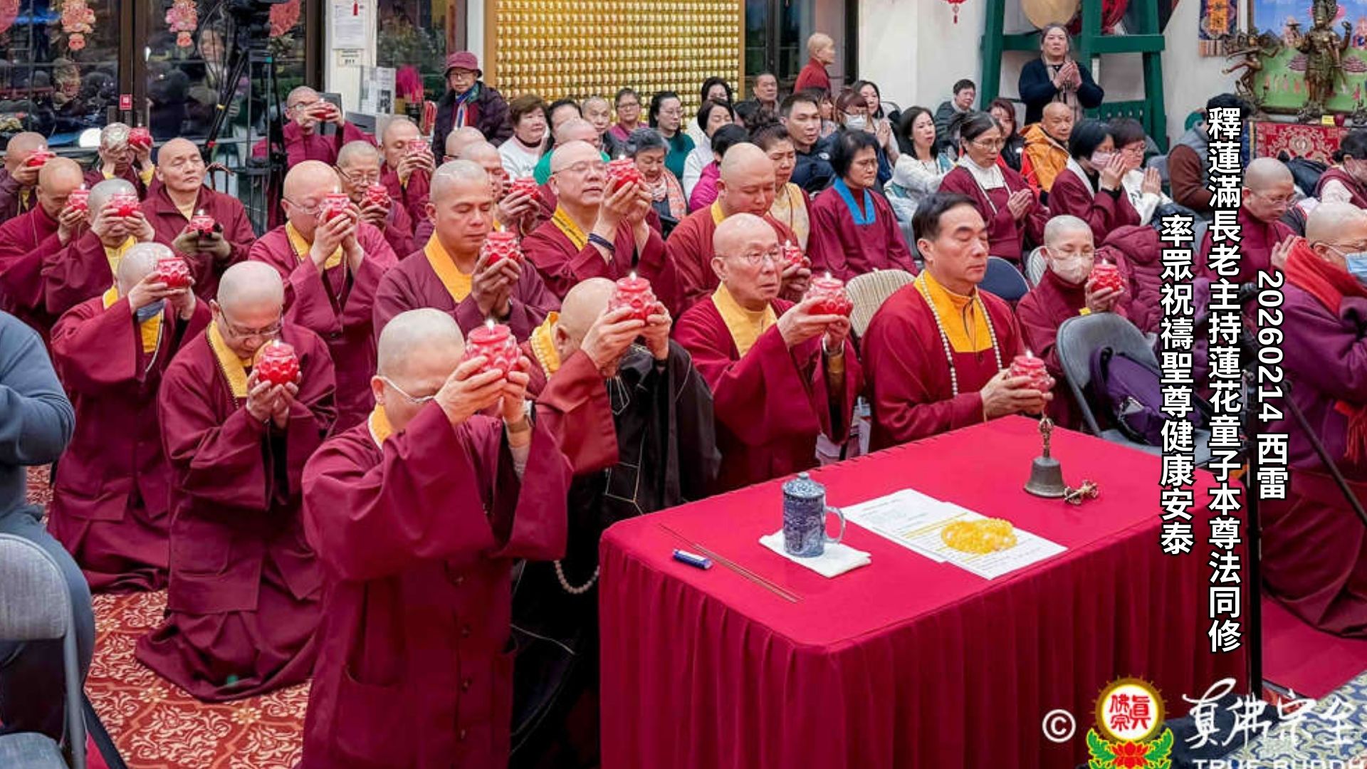 Pada hari Sabtu, 14 Februari 2026, Seattle Ling Shen Ching Tze Temple dengan tulus mengundang Ayushmat Acarya Shi Lianman (蓮滿長老) untuk memimpin pujabakti Istadewata Padmakumara, dan sebelum pujabakti, Acarya memimpin seluruh hadirin menyalakan cahaya lilin. Semua peserta pujabakti dan umat berdoa bersama memohon agar Mulacarya Dharmaraja Lian Sheng senantiasa sehat dan tenteram, serta segala sesuatu manggala dan sempurna.