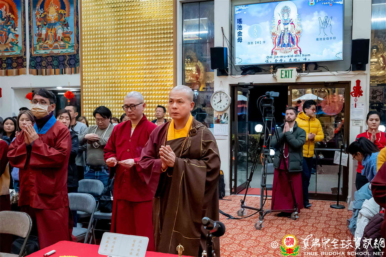 Walaupun cuaca sangat dingin membekukan, umat tetap dengan khidmat dan penuh semangat berpartisipasi, mengikuti Acarya Lian Yin melakukan namaskara, mempersembahkan pujana, melantunkan Sutra Buddha, merapal mantra, memasuki samadhi, dan melimpahkan jasa. Setiap orang sepenuh perhatian melaksanakan sadhana, memohon agar Mahadewi Yaochi, Buddha Amitabha, para Buddha dan Bodhisatwa serta Dharmapala Vajra memancarkan cahaya Buddha untuk memberkati dan menerangi, sehingga Mulacarya dan Gurudara dapat segera sehat sepenuhnya dan berkumpul kembali bersama para siswa di Seattle Ling Shen Ching Tze Temple.