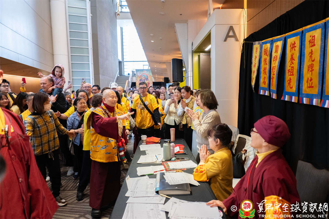 Pada hari itu, saat Dharmaraja Lian Sheng dan Gurudara Acarya Lian Xiang tiba di lokasi dengan kendaraan, para hadirin telah menunggu dengan hati penuh sukacita dan harapan. Ketika Dharmaraja Lian Sheng dan Gurudara turun dari kendaraan, tepuk tangan meriah langsung bergema, sapaan demi sapaan mencerminkan kerinduan dan penghormatan para siswa kepada Mulacarya Silsilah. Dharmaraja Lian Sheng pun membalas dengan senyum ramah dan lambaian tangan, suasana hangat dan penuh keakraban.