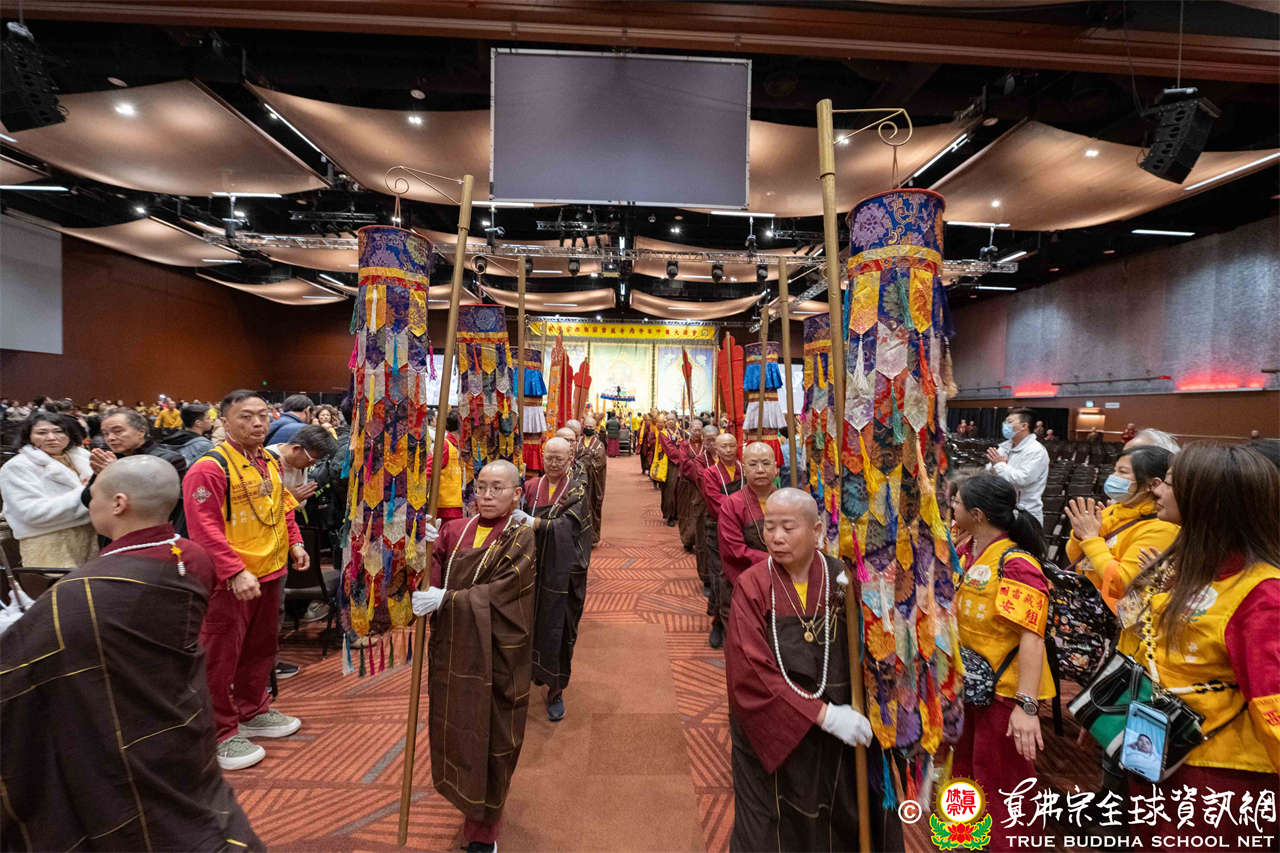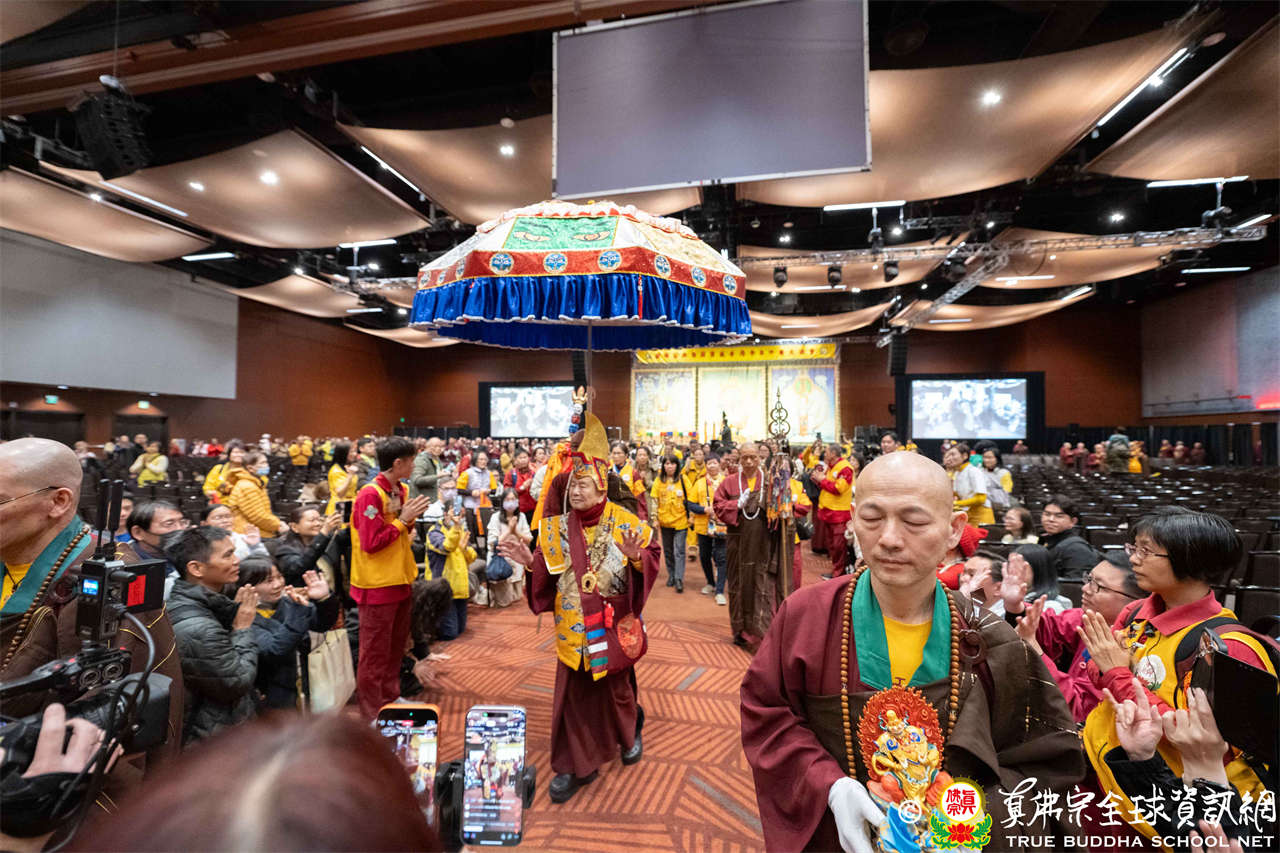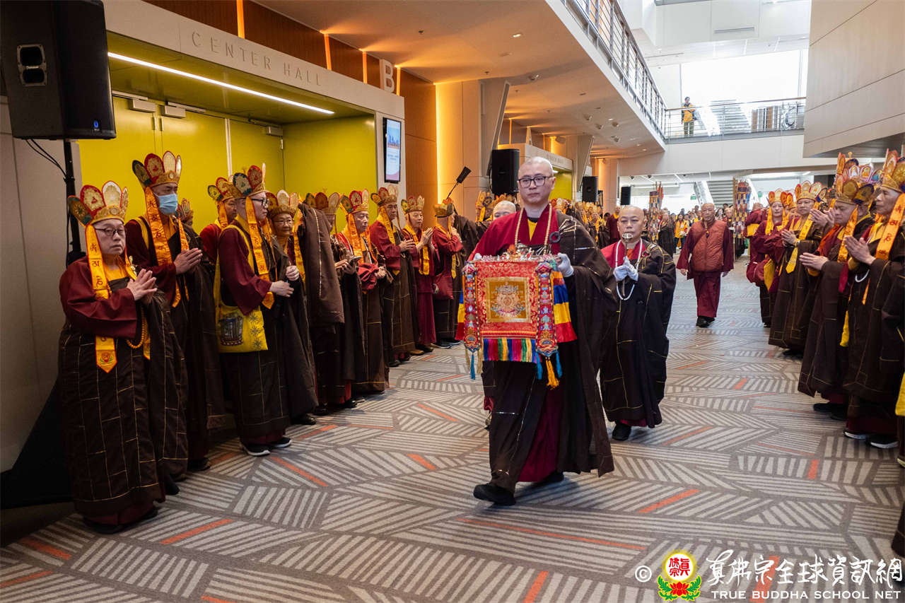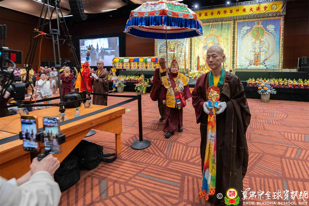 Tepat pukul dua siang, suara genta berbunyi, para siswa dari empat kelompok beranjali dengan khusyuk, bersama-sama melantunkan Mantra Hati Padmakumara, menyambut Mulacarya Silsilah Dharmaraja Lian Sheng memasuki mandala. Dharmaraja menggandeng cucunya Lu Yin berjalan memasuki lokasi, pemandangan yang hangat dan menyentuh. Mahaguru, para Ayushmat dan para Acarya memasuki altar, upacara resmi dimulai.