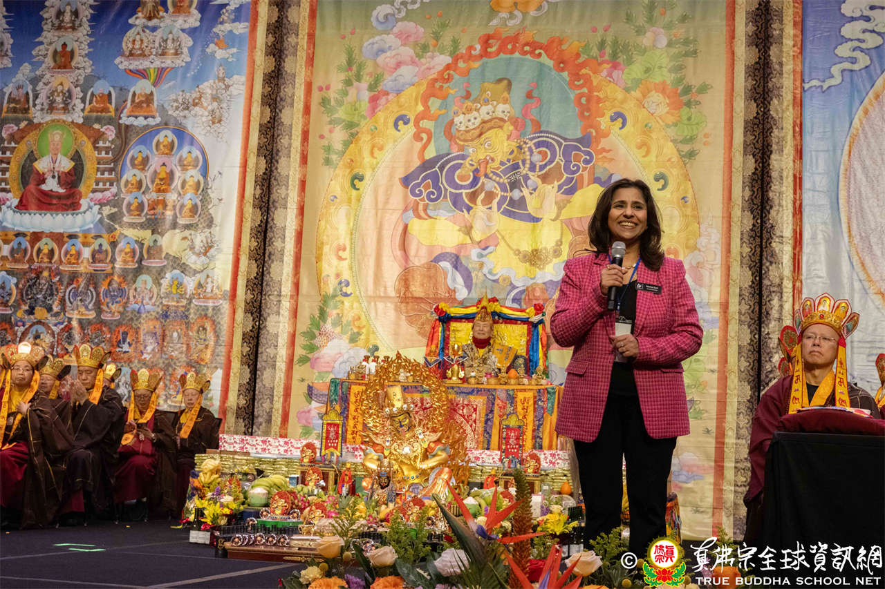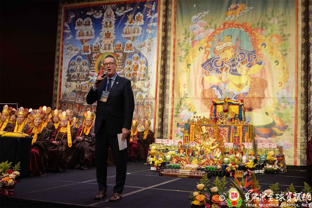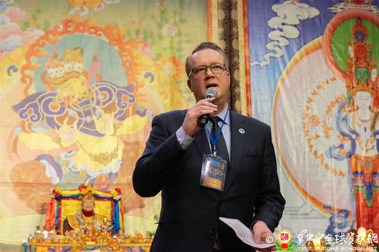 Selanjutnya, anggota dewan kota Bellevue Jared Nieuwenhuis menyampaikan sambutan, mengucapkan terima kasih atas kehadiran semua peserta, serta memperkenalkan Bellevue sebagai kota yang memadukan berbagai budaya, penuh welas asih dan semangat komunitas, berharap para peserta dapat merasakan kehangatan dan keramahan komunitas, serta mendoakan agar upacara ini membawa berkah bagi semua.