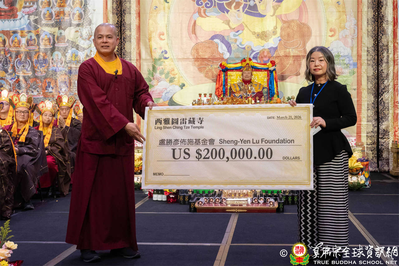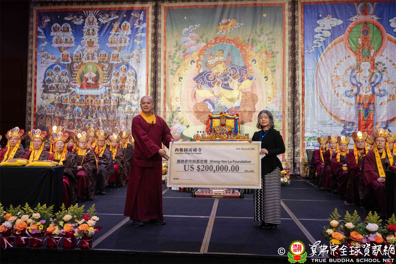 Setelah sambutan, kepala wihara Acarya Shi Lian Yin mewakili menyerahkan dana sebesar 200.000 dolar AS kepada Sheng-Yen Lu Foundation, sebagai teladan untuk mengajak semua orang turut serta dalam tindakan welas asih demi kesejahteraan masyarakat.
