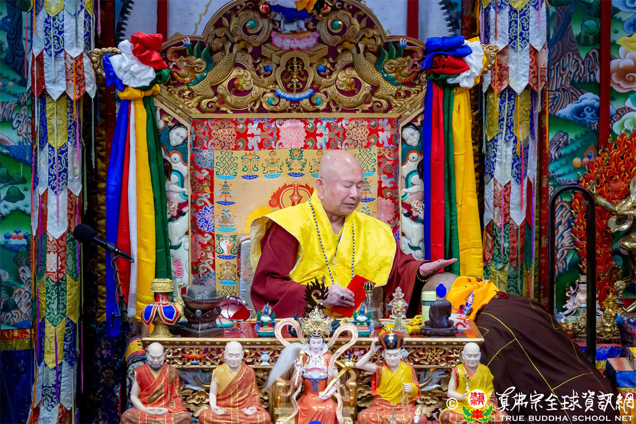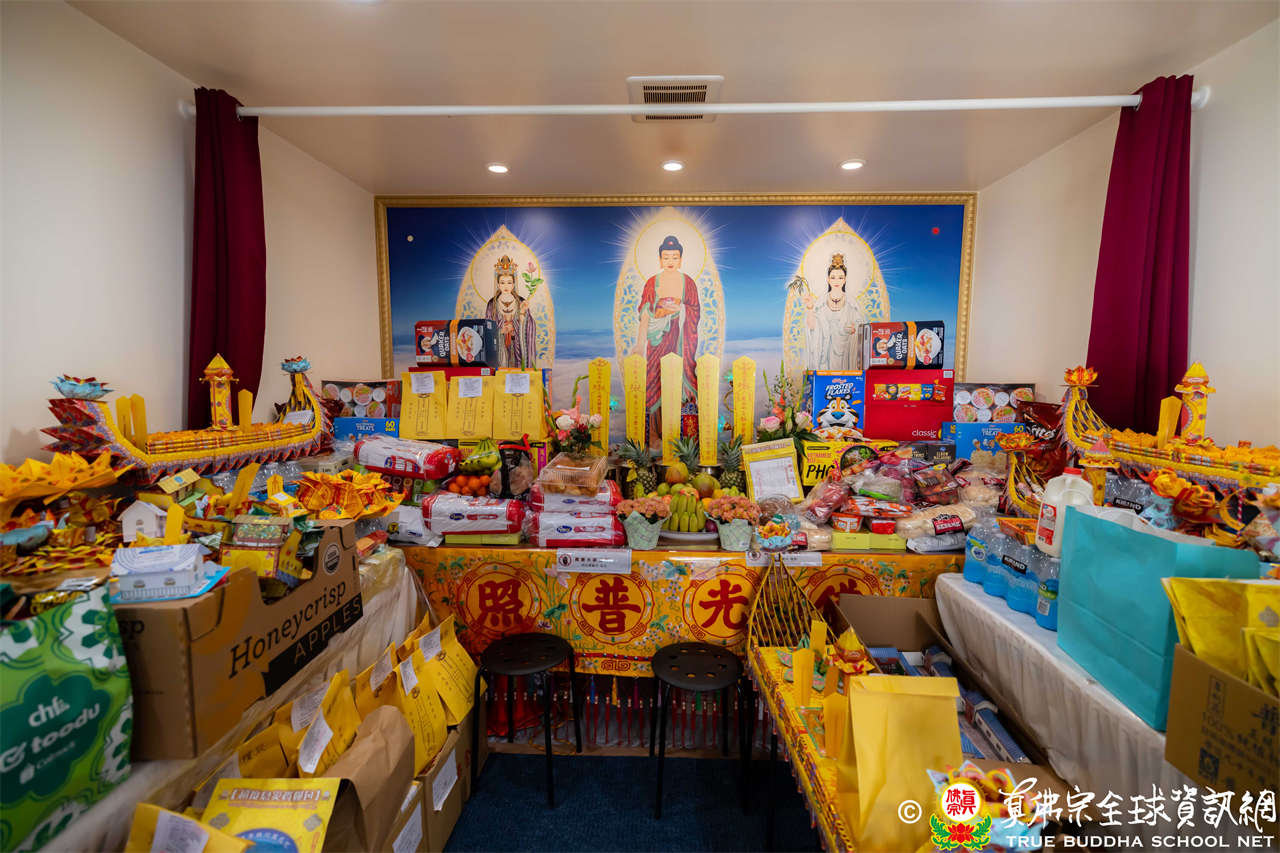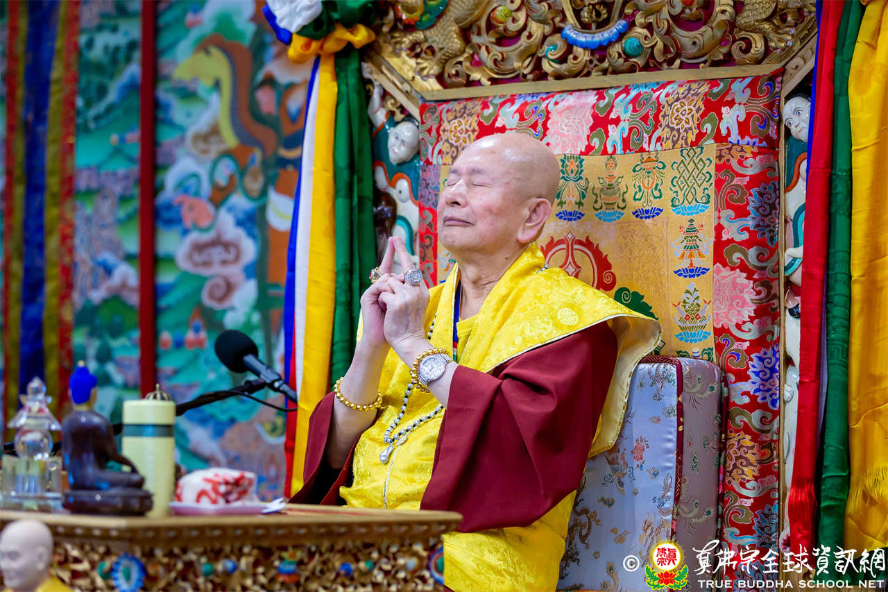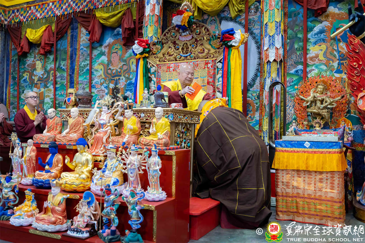 Dengan penuh welas asih, Mahaguru Lu memanjatkan doa kepada Bodhisatwa Ksitigarbha, para Buddha dan Bodhisatwa, serta para Dharmapala agar mengadhisthana segenap siswa Zhenfo Zong: