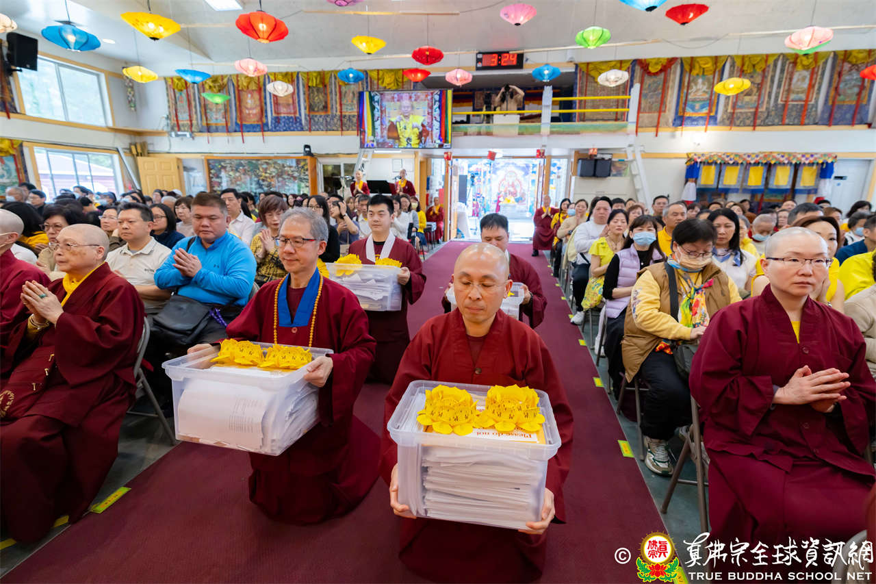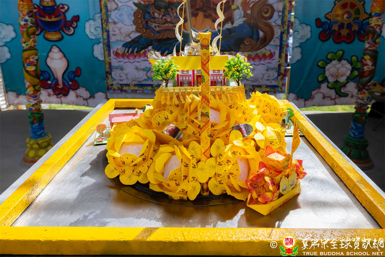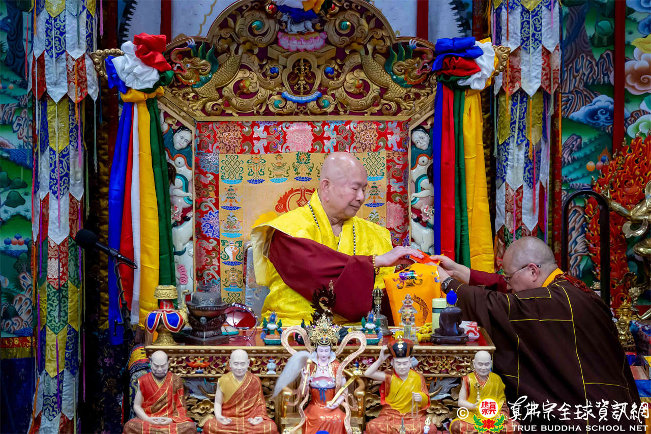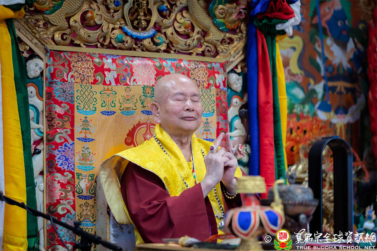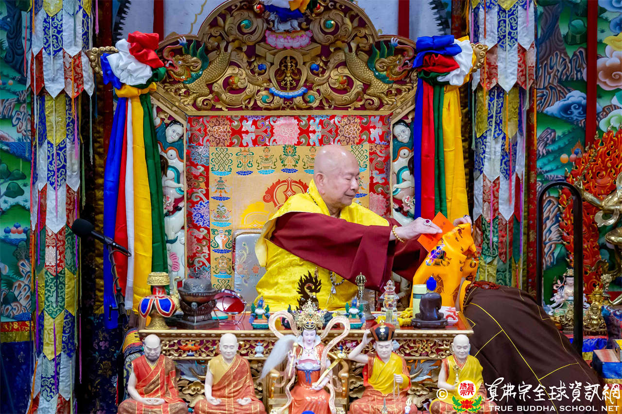 Dengan penuh welas asih, Mahaguru Lu memanjatkan doa kepada Bodhisatwa Ksitigarbha, para Buddha dan Bodhisatwa, serta para Dharmapala agar mengadhisthana segenap siswa Zhenfo Zong: