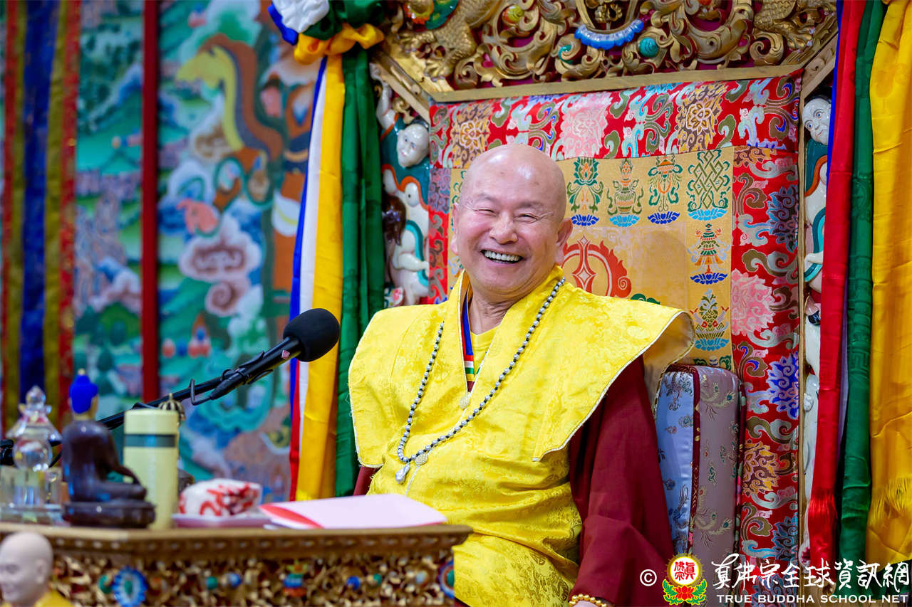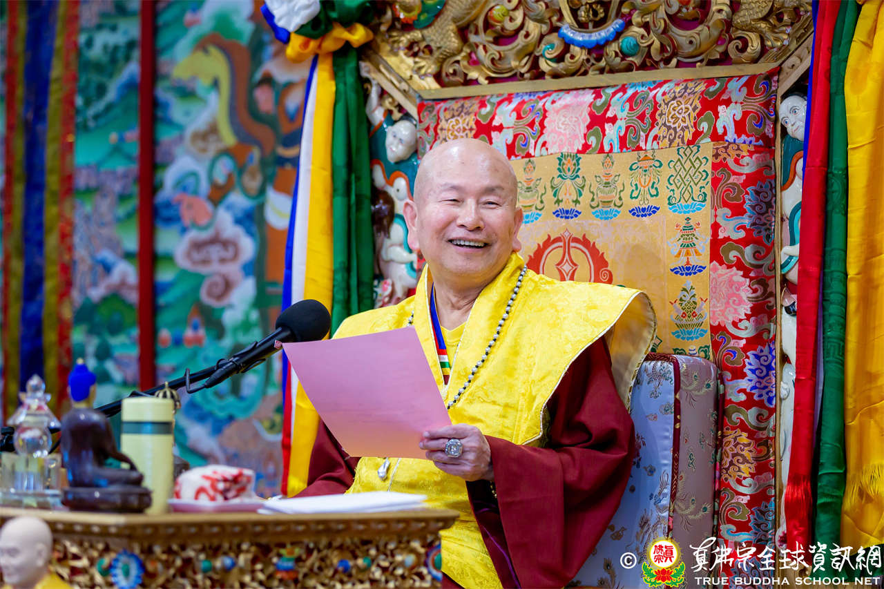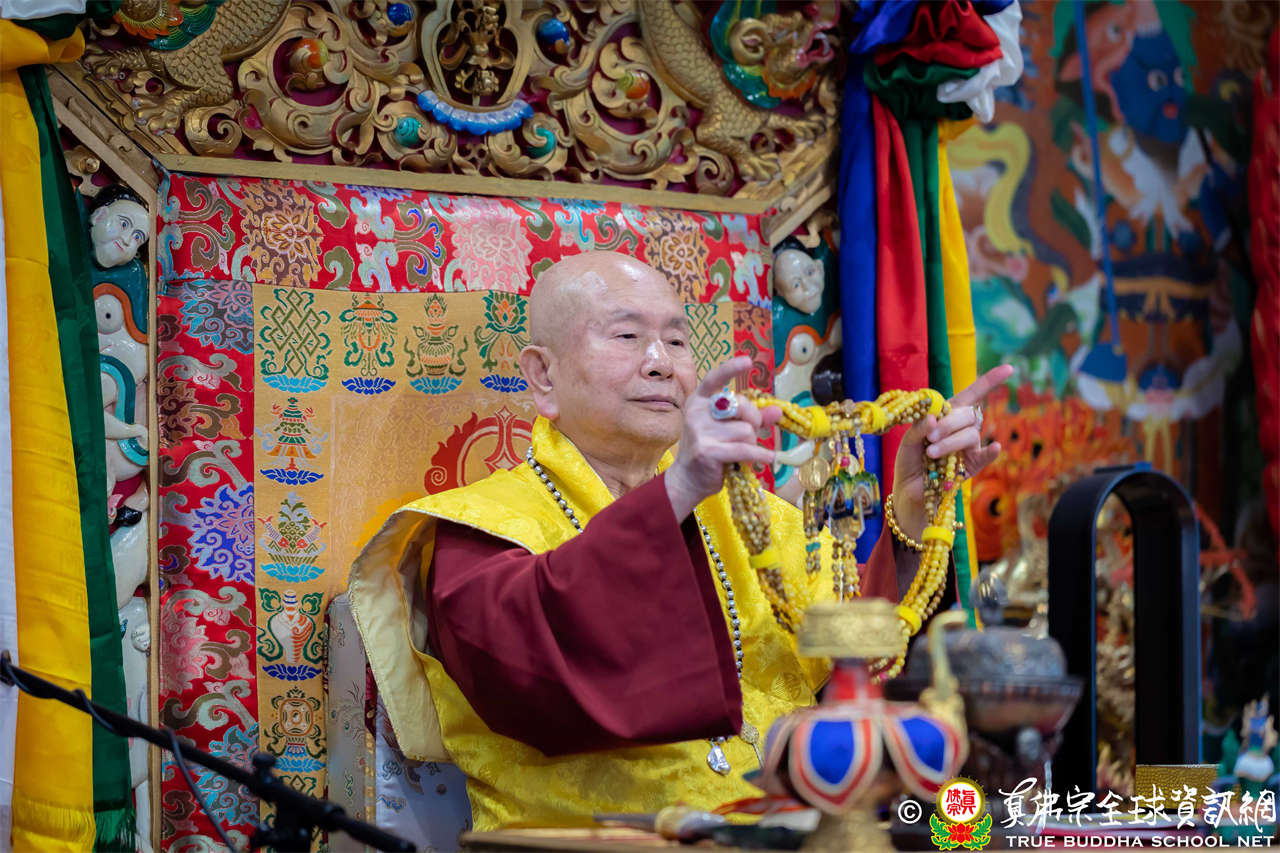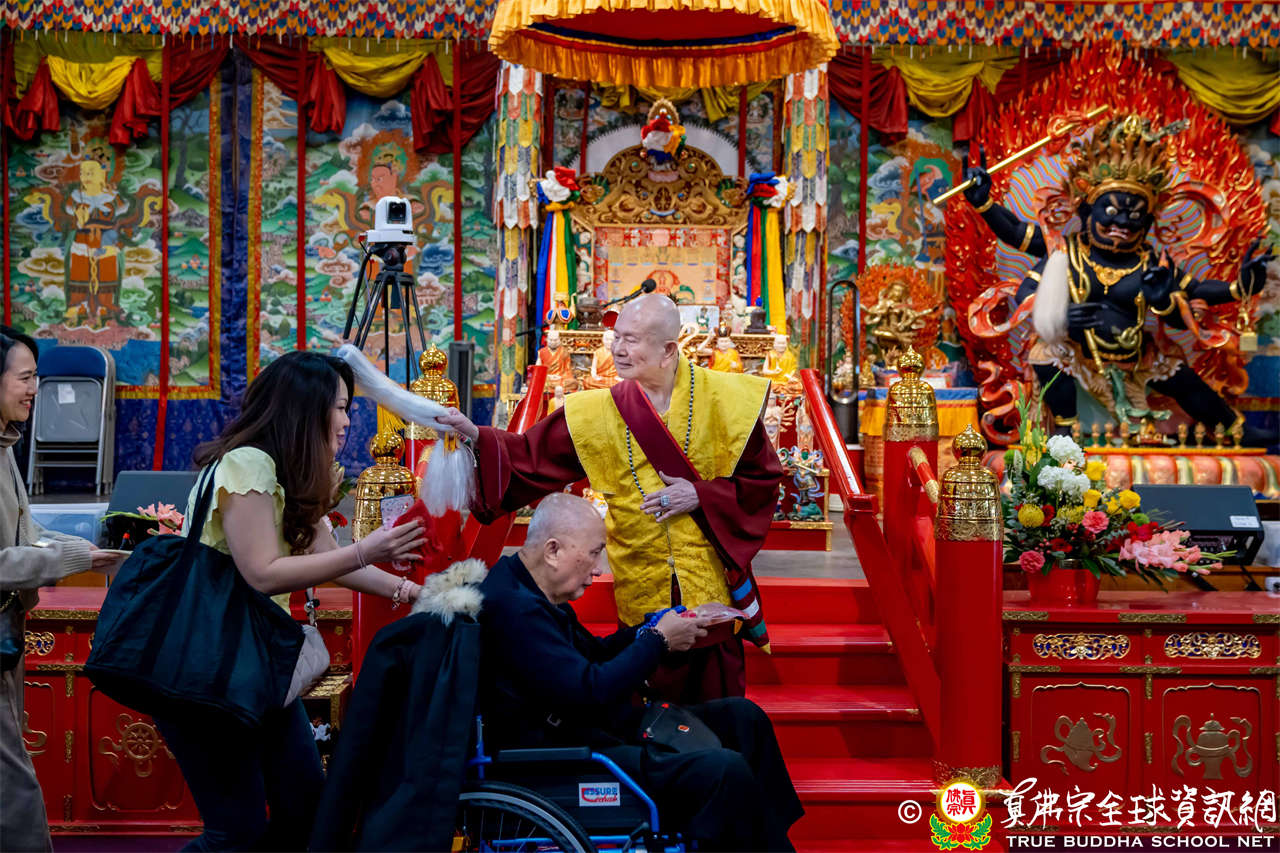 Dengan penuh welas asih, Mahaguru Lu memanjatkan doa kepada Bodhisatwa Ksitigarbha, para Buddha dan Bodhisatwa, serta para Dharmapala agar mengadhisthana segenap siswa Zhenfo Zong: