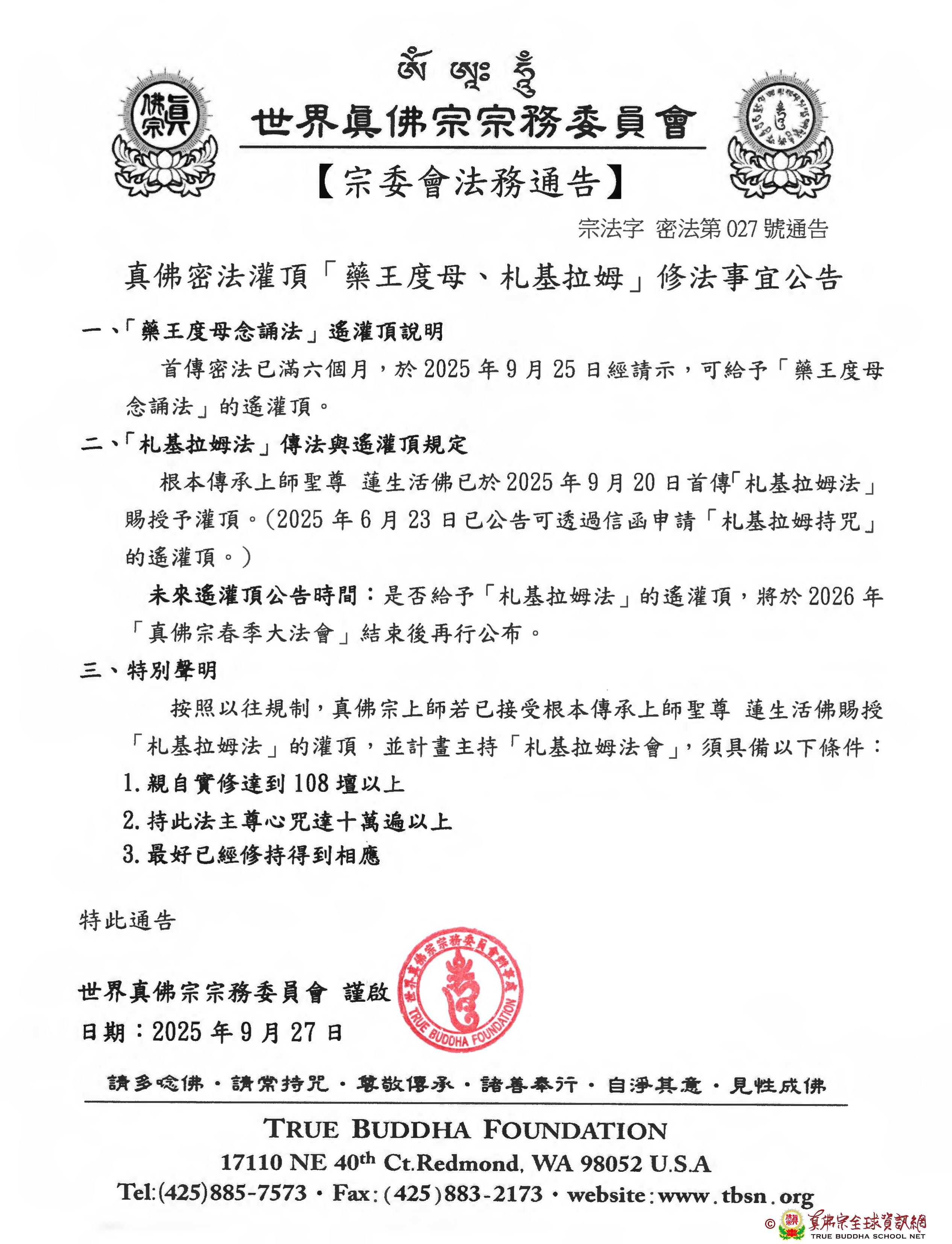 (Pada 23 Juni 2025, telah diberitahukan bahwa boleh mengirim surat memohon abhiseka jarak jauh untuk perapalan Mantra Drashi Lhamo)