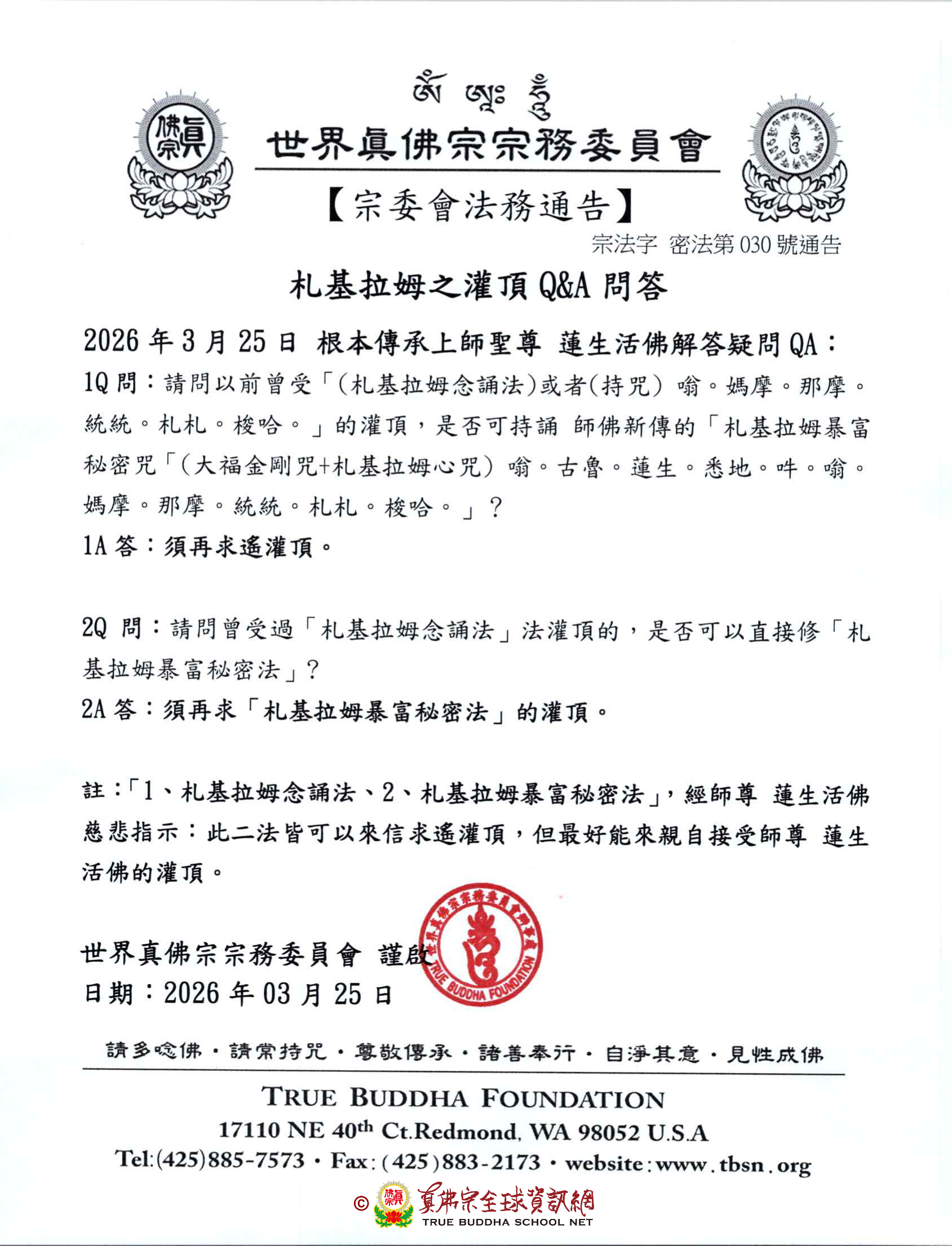 【Pemberitahuan Dharmabakti TBF】Tanya Jawab Abhiseka Drashi Lhamo